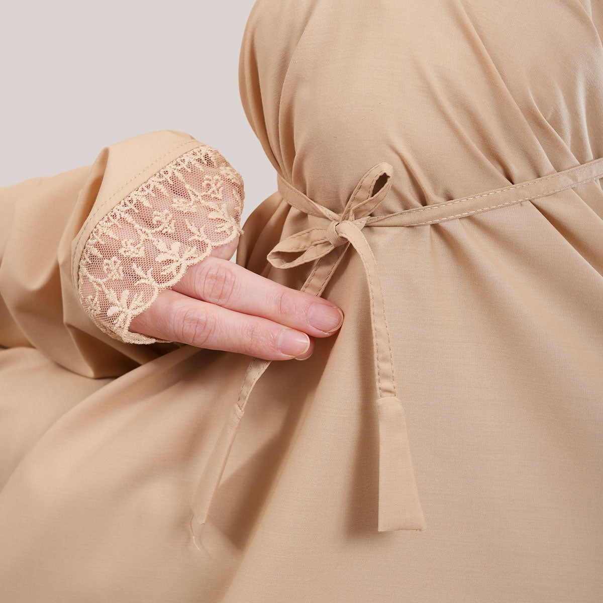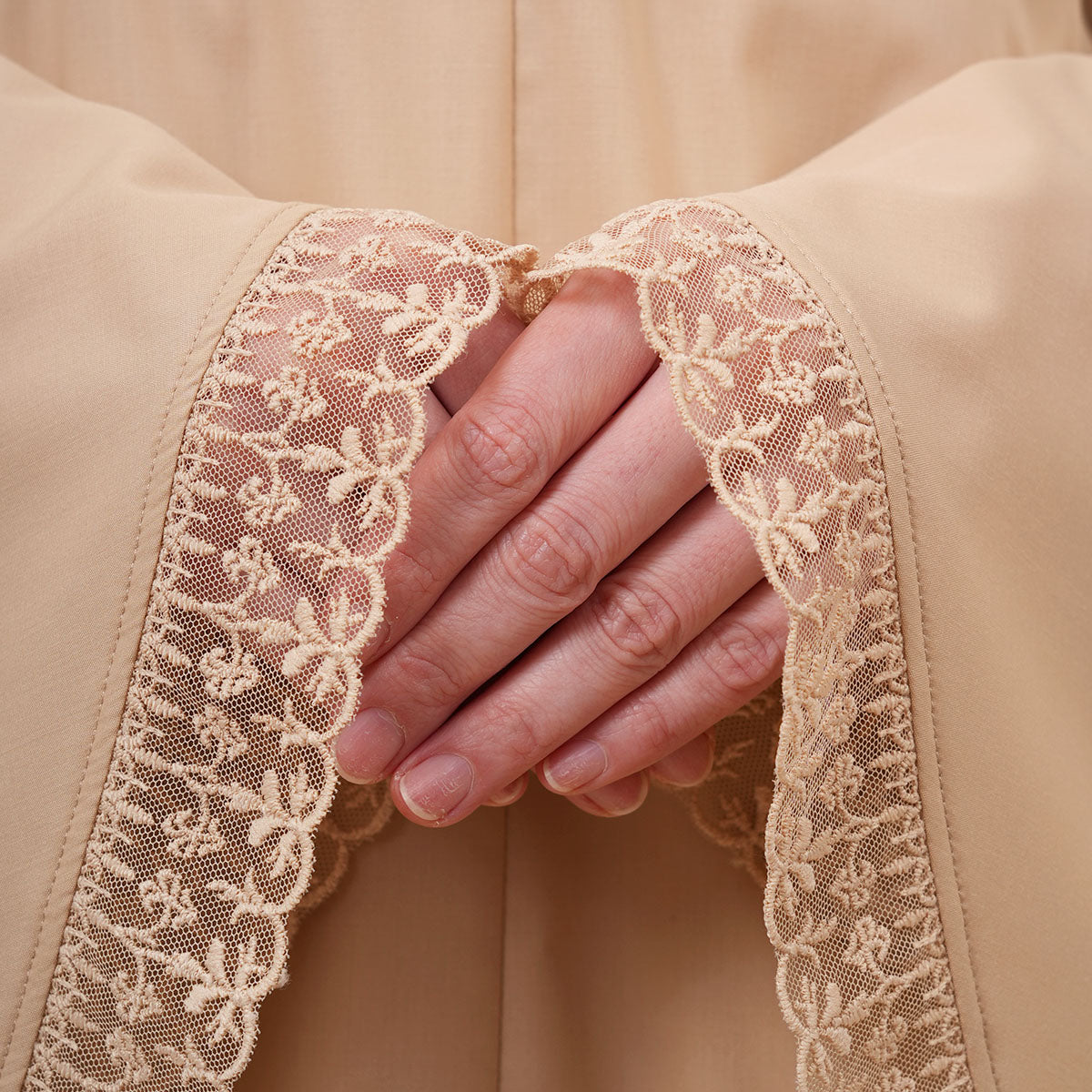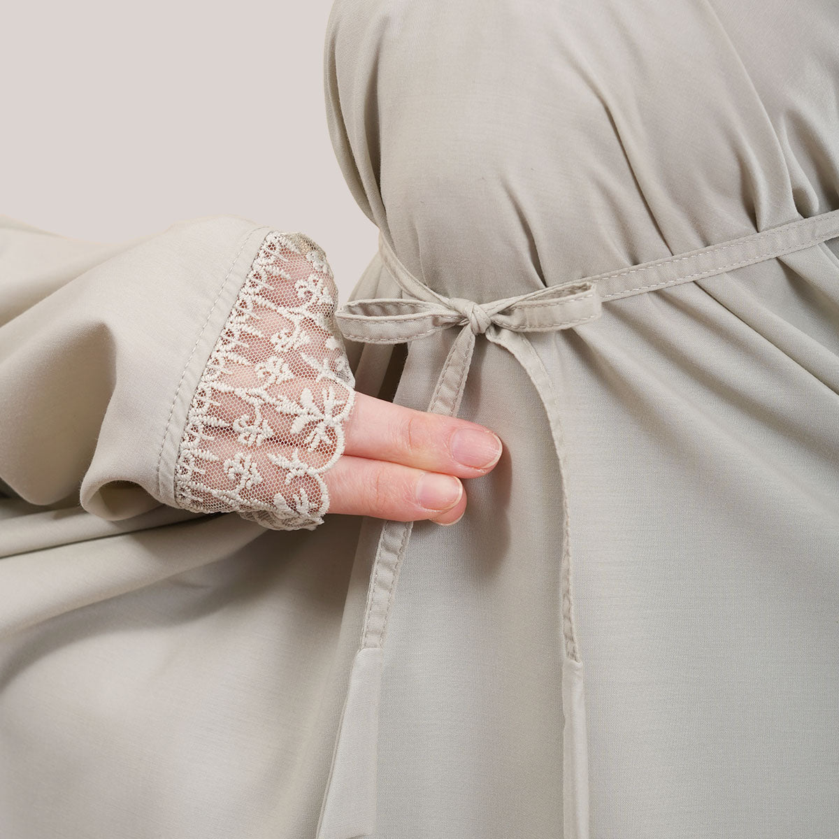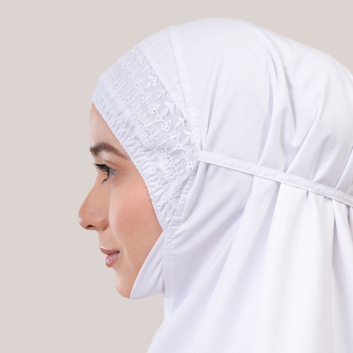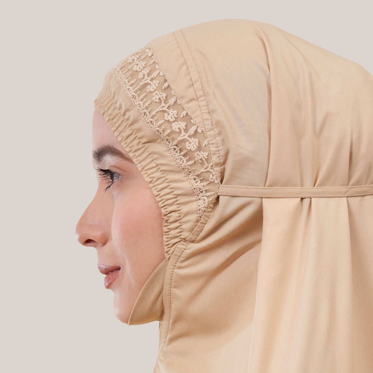 Modish Dafiya is crafted from breathable and soft KBF fabric, designed for comfortable prayer without heat or irritation. Inspired by Mushaf motifs, it features a minimalist yet elegant net lace design that adds a subtle touch of luxury, making it suitable for daily wear or as a thoughtful gift. The name Dafiya, meaning comfort and pleasantness, reflects its warm and gentle character, while the finely stitched net lace finishing at the edges enhances its refined and graceful appearance.