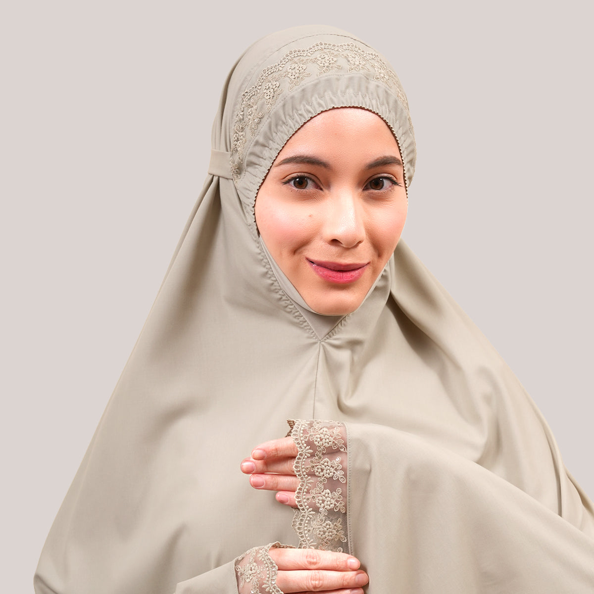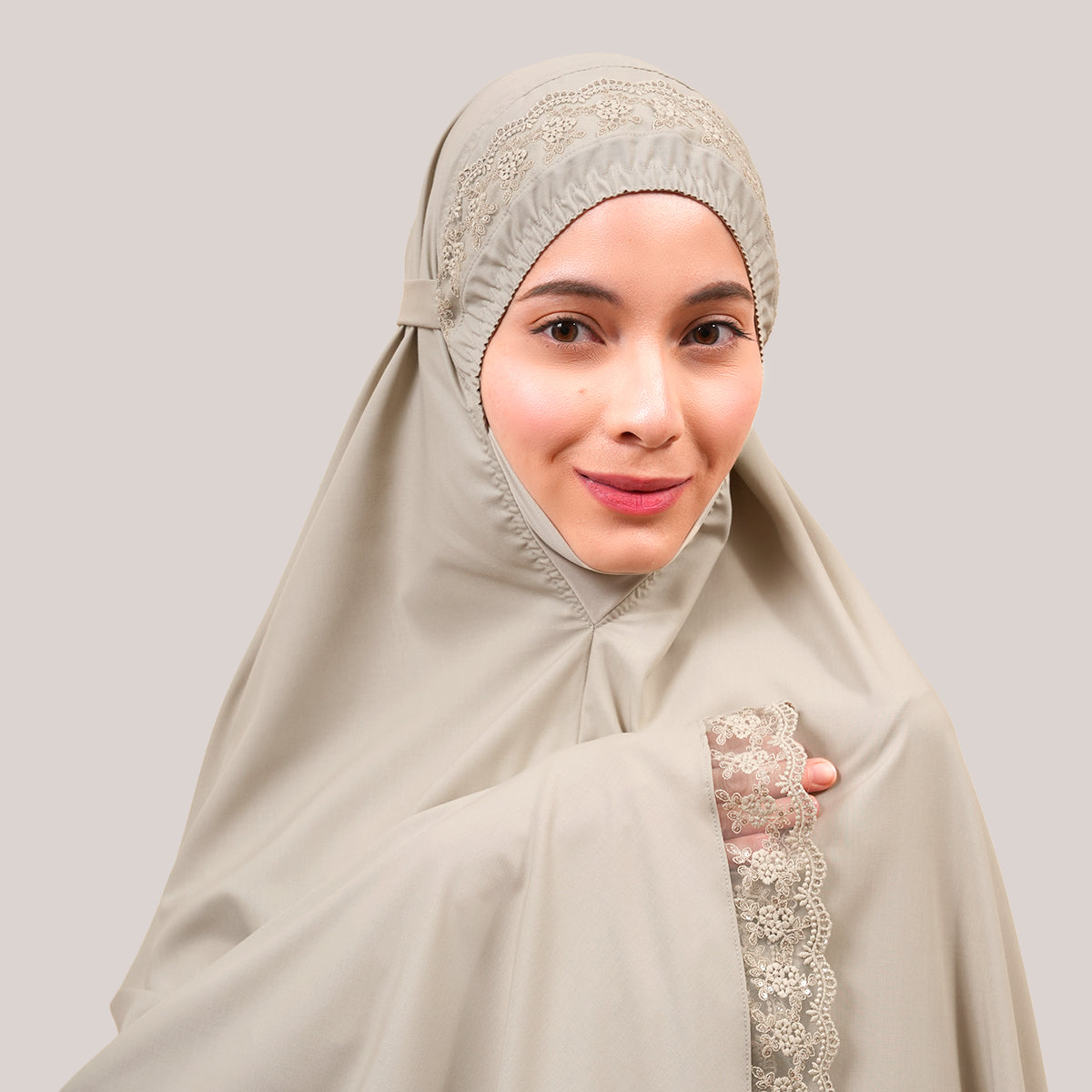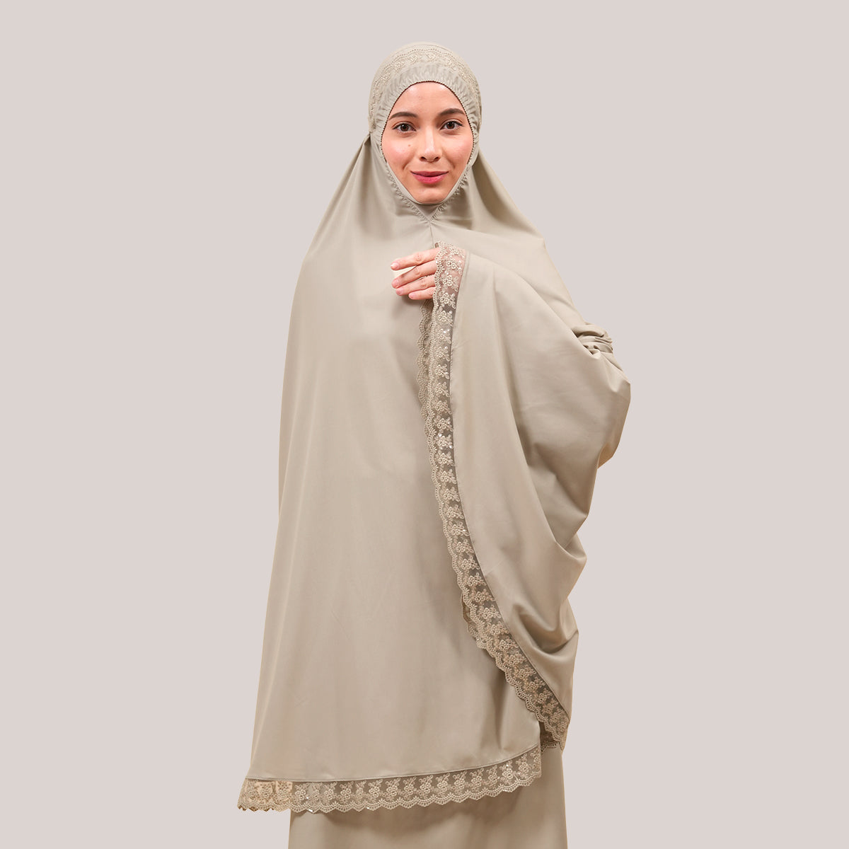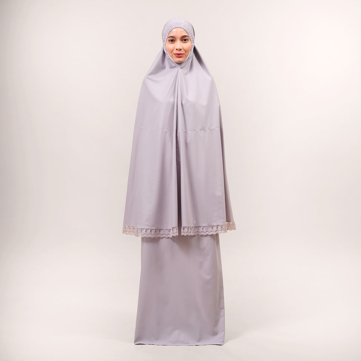 Modish Neelam features elegant guipure lace and subtle sequin details that add a refined touch without being overdone. Made with Khadijah Ultra Fine and Khadijah Basic Fine fabrics, it is soft, lightweight, breathable, and comfortable to wear. Inspired by Neelam, a precious and exclusive gemstone, this design blends modern style with tradition, offering a calm yet elegant look. The breathable, quick-dry KUF material and matching mother-and-child telekung set complete the design with comfort, femininity, and meaningful twinning moments.