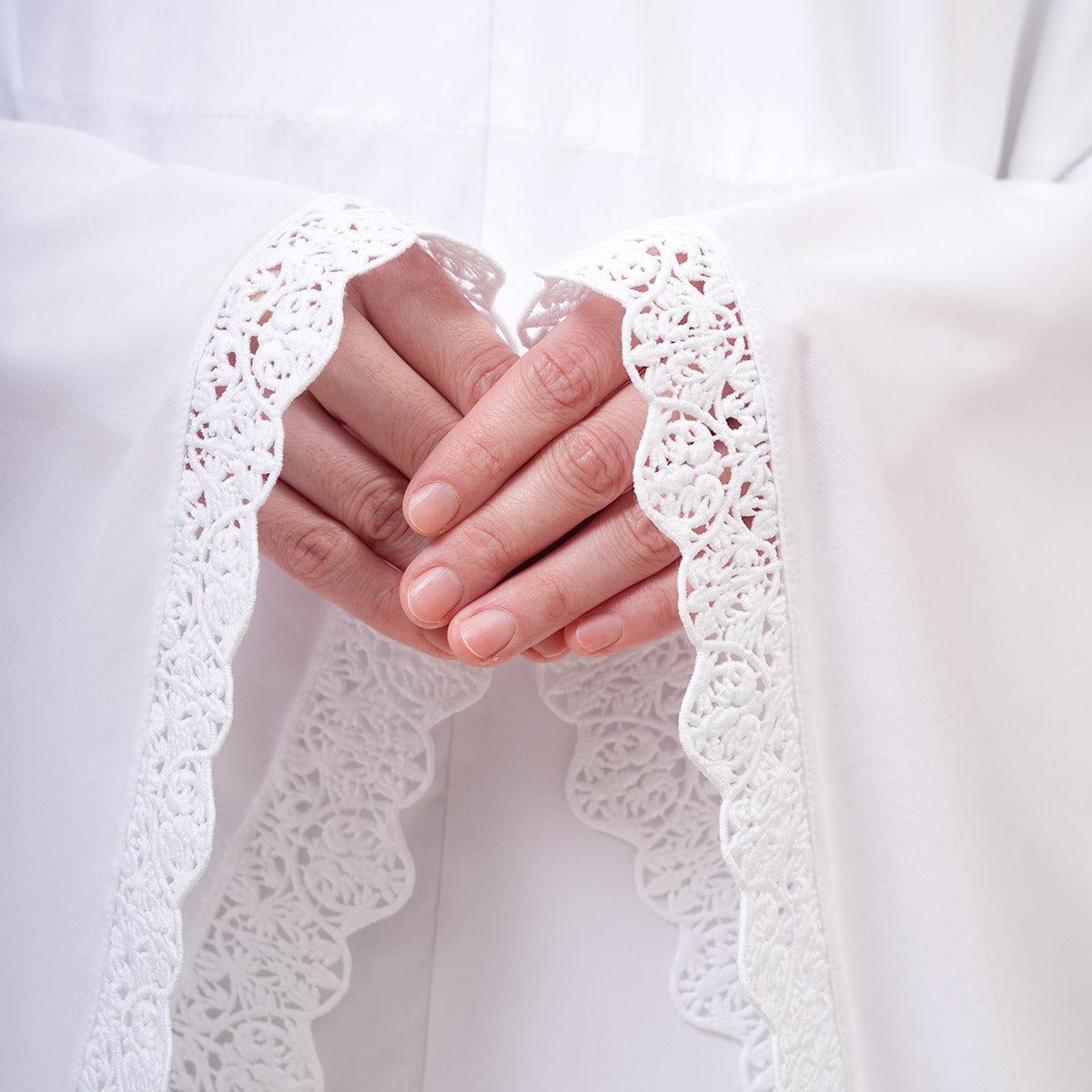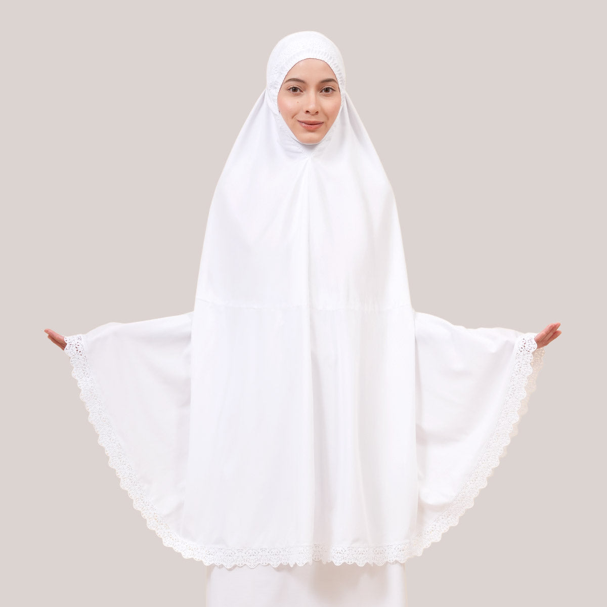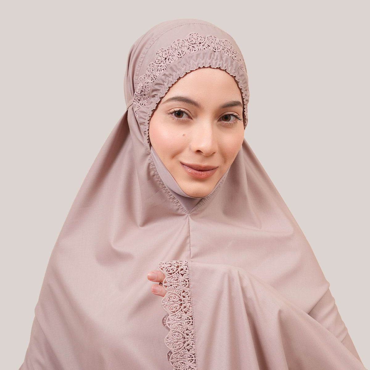 Inspired by the beauty of Mushaf motifs, the Modish Noore prayerwear features a minimalist design that blends modern elegance with classic charm. Delicately adorned with fine Khadura lace, its subtle detailing creates a refined and timeless look, perfect for those who appreciate understated sophistication. The small lace accents along the hem and classic headpiece enhance its graceful silhouette, making it suitable for daily worship or as a meaningful gift. The name “Noore,” meaning light and radiance, symbolizes tranquility, guidance, beauty, and hope, reflecting the serene and uplifting essence of the wearer.