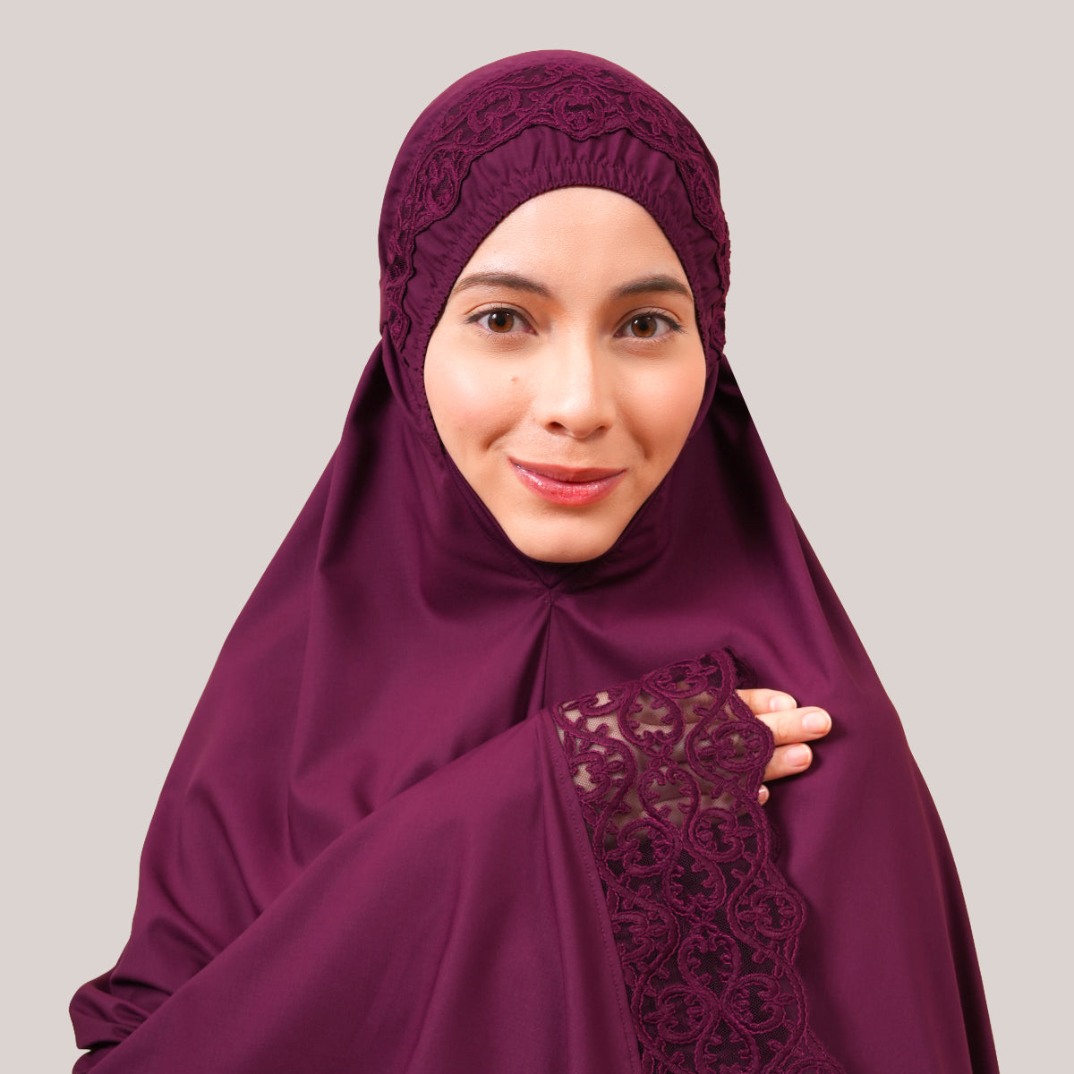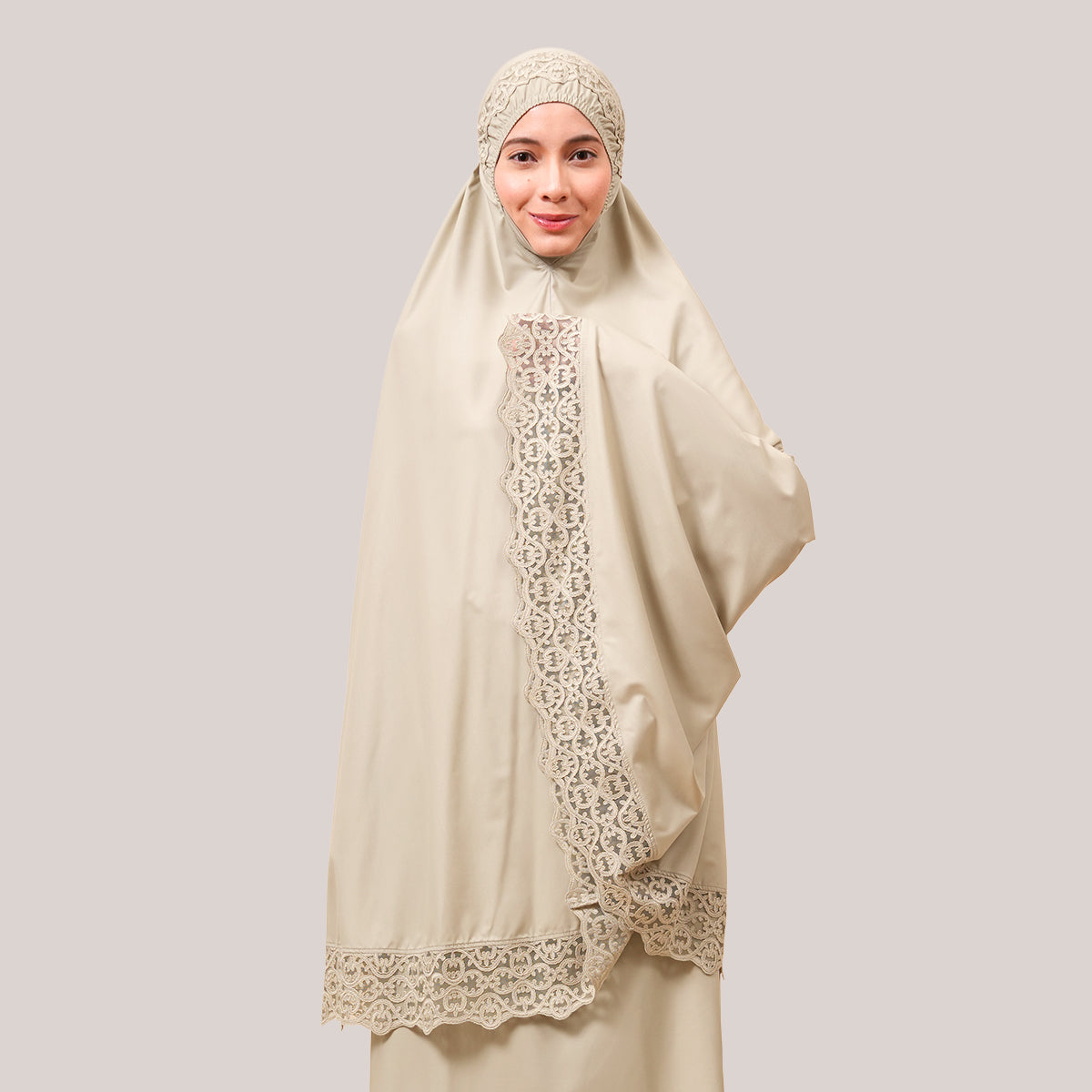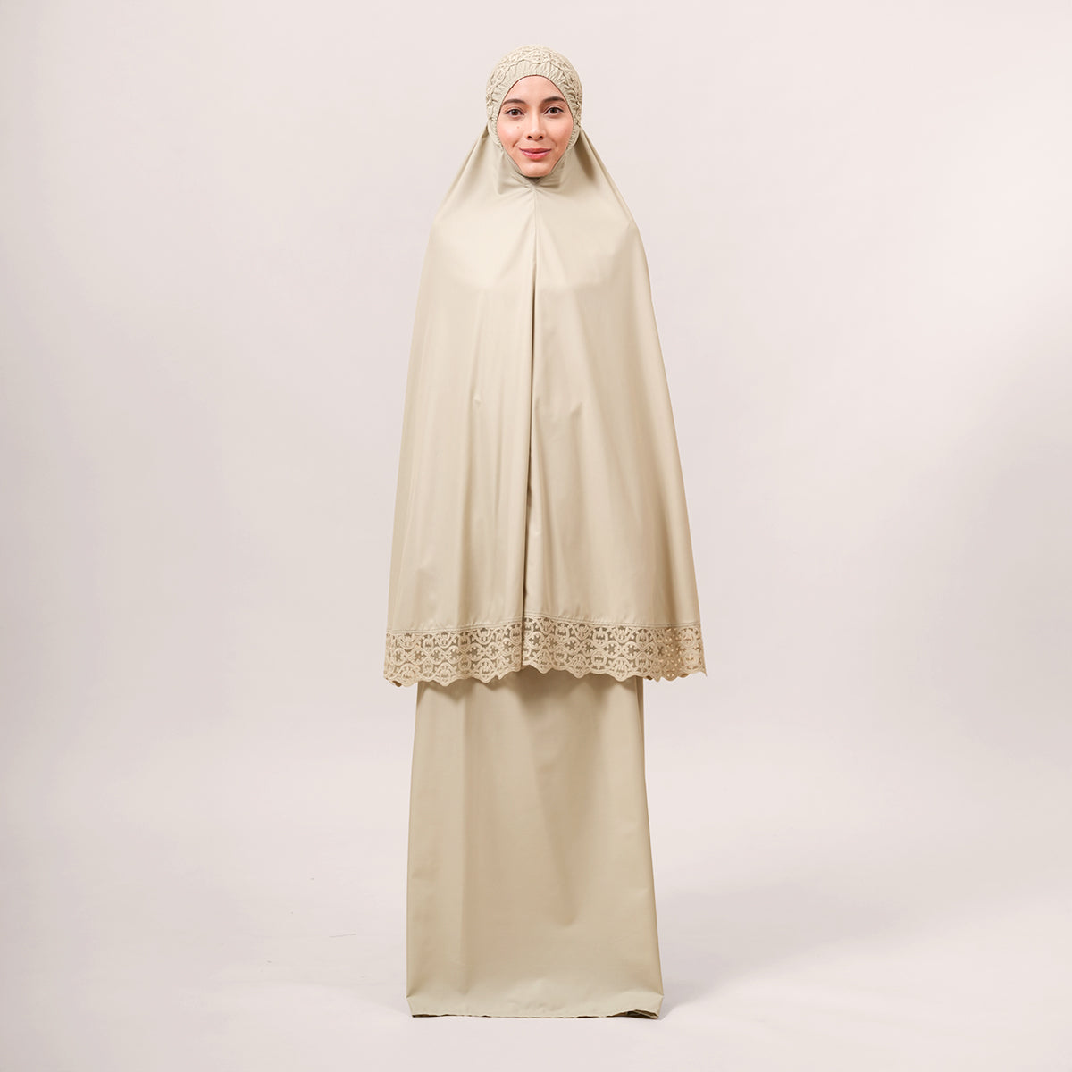 Modish Zaila is crafted from Khadijah Ultra Fine (KUF) fabric that feels soft, cool, and breathable for maximum comfort during prayer. Inspired by Mushaf motifs, the refined cord lace features delicately raised embroidery that creates an elegant 3D effect while remaining durable. Designed to reflect modest beauty and grace, Modish Zaila offers a comfortable and refined prayer experience with timeless appeal.