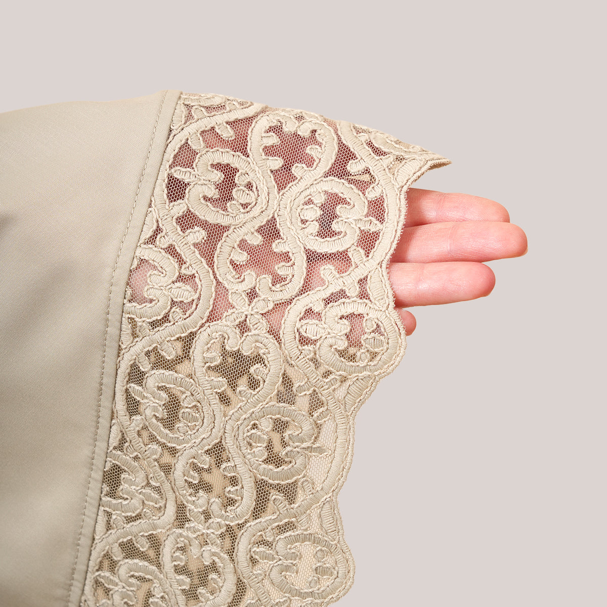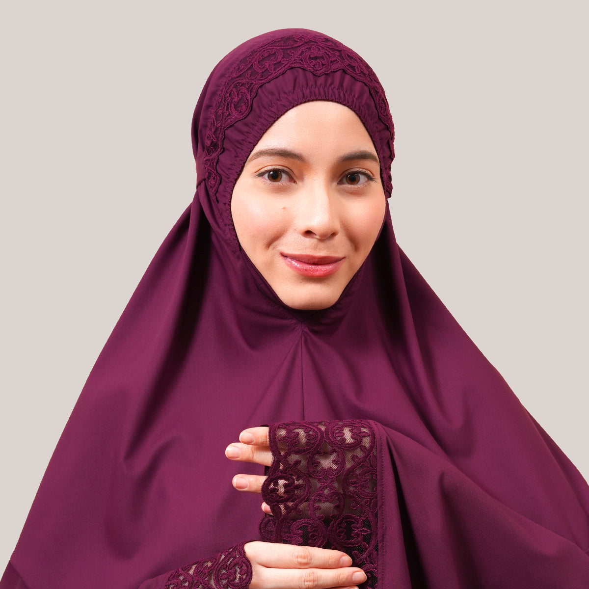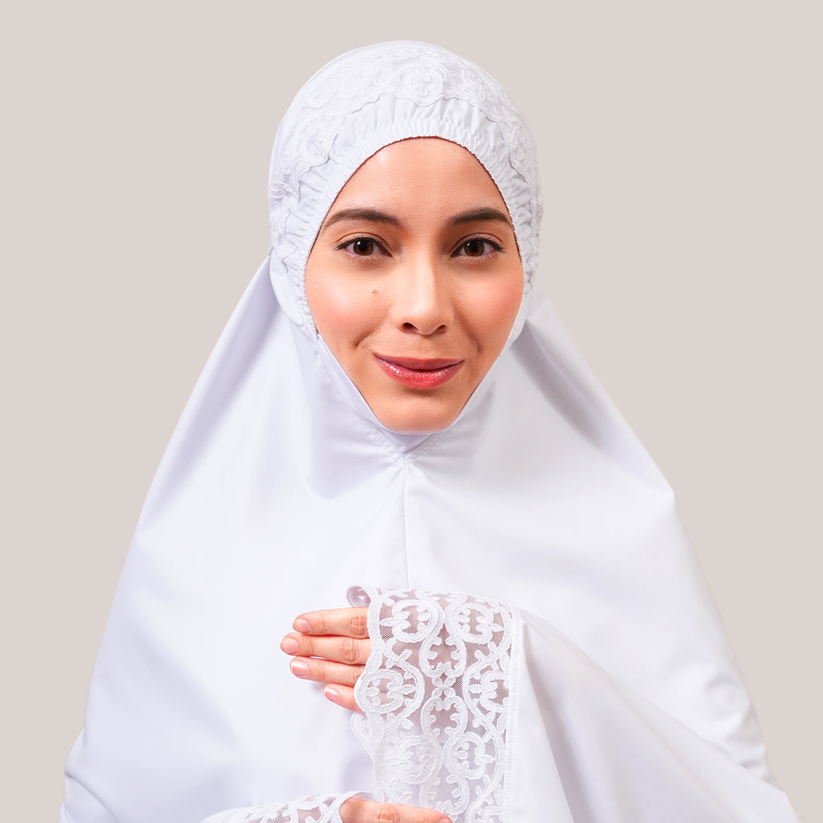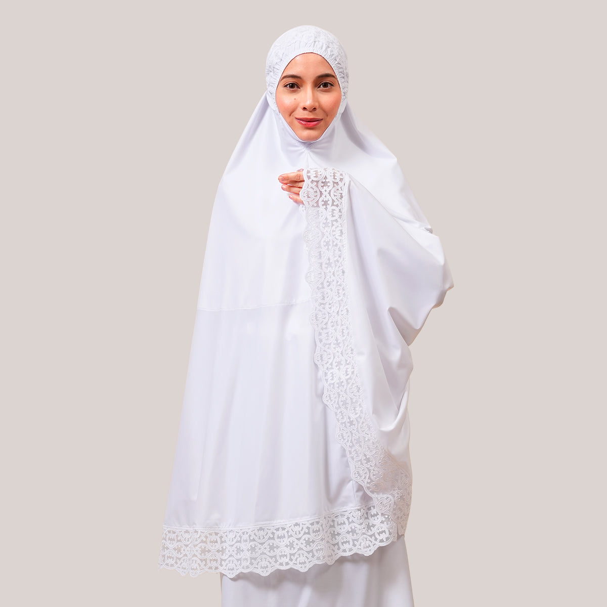 Modish Zaila is crafted from Khadijah Ultra Fine (KUF) fabric that feels soft, cool, and breathable for maximum comfort during prayer. Inspired by Mushaf motifs, the refined cord lace features delicately raised embroidery that creates an elegant 3D effect while remaining durable. Designed to reflect modest beauty and grace, Modish Zaila offers a comfortable and refined prayer experience with timeless appeal.