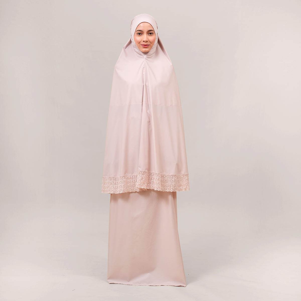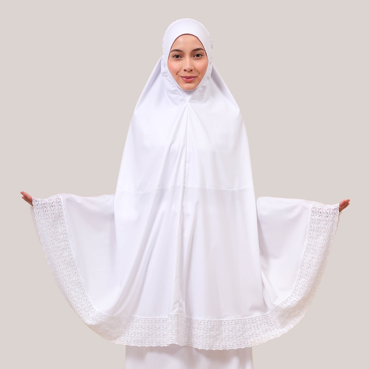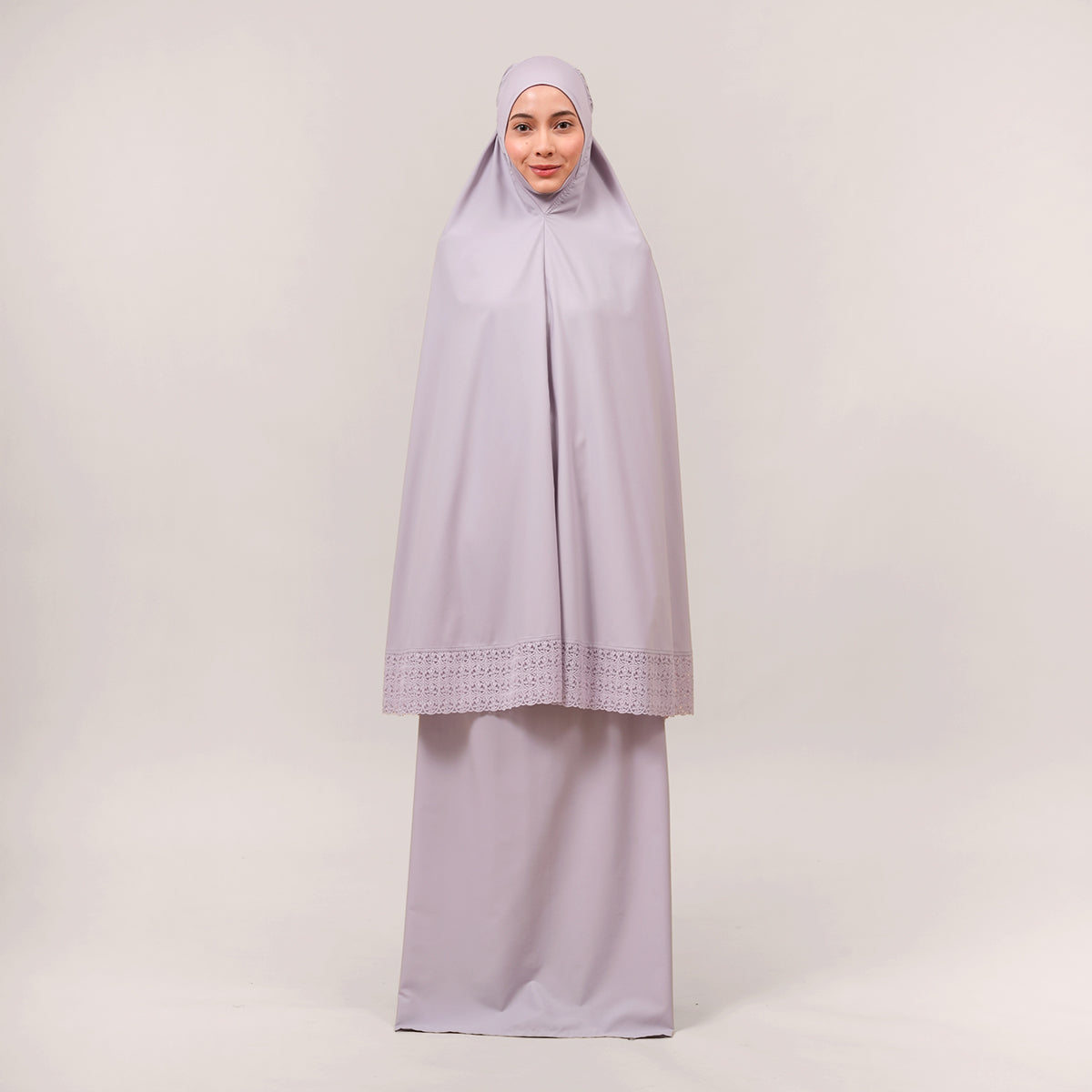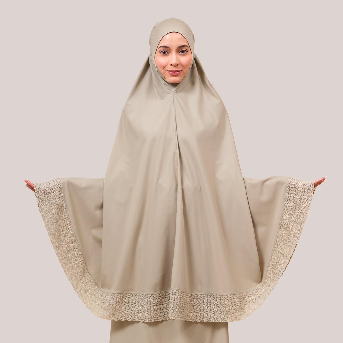 Harmony Modish Talitha is inspired by Mushaf motifs and features seamless lace designs that look elegant and luxurious while remaining minimal. Made with breathable and quick-drying KUF fabric, it feels soft on the skin and is comfortable to wear. The fine net lace finishing adds a graceful touch, reflecting the gentle, sweet, and captivating character behind the name Talitha.