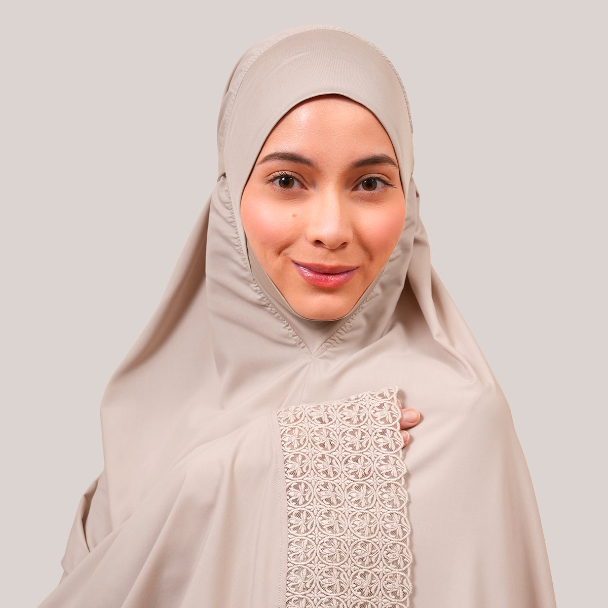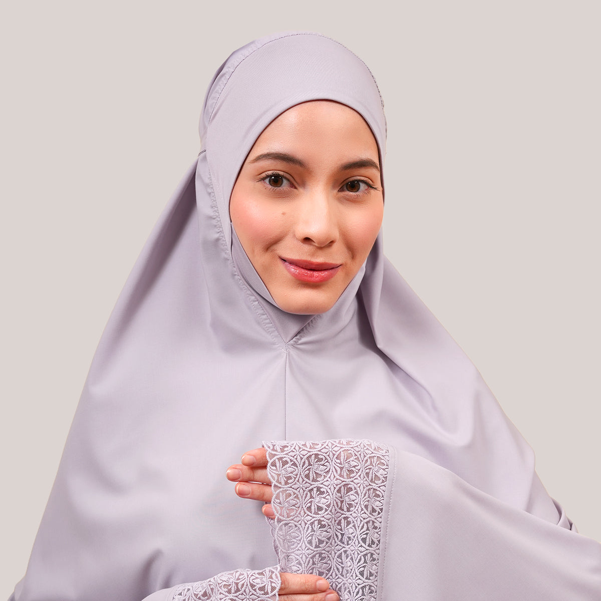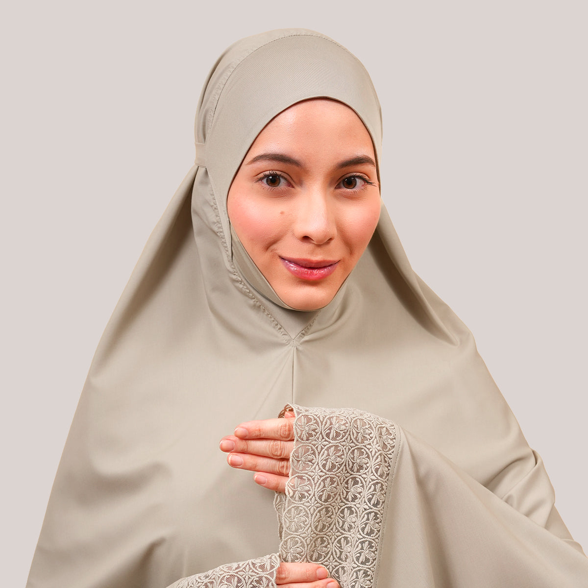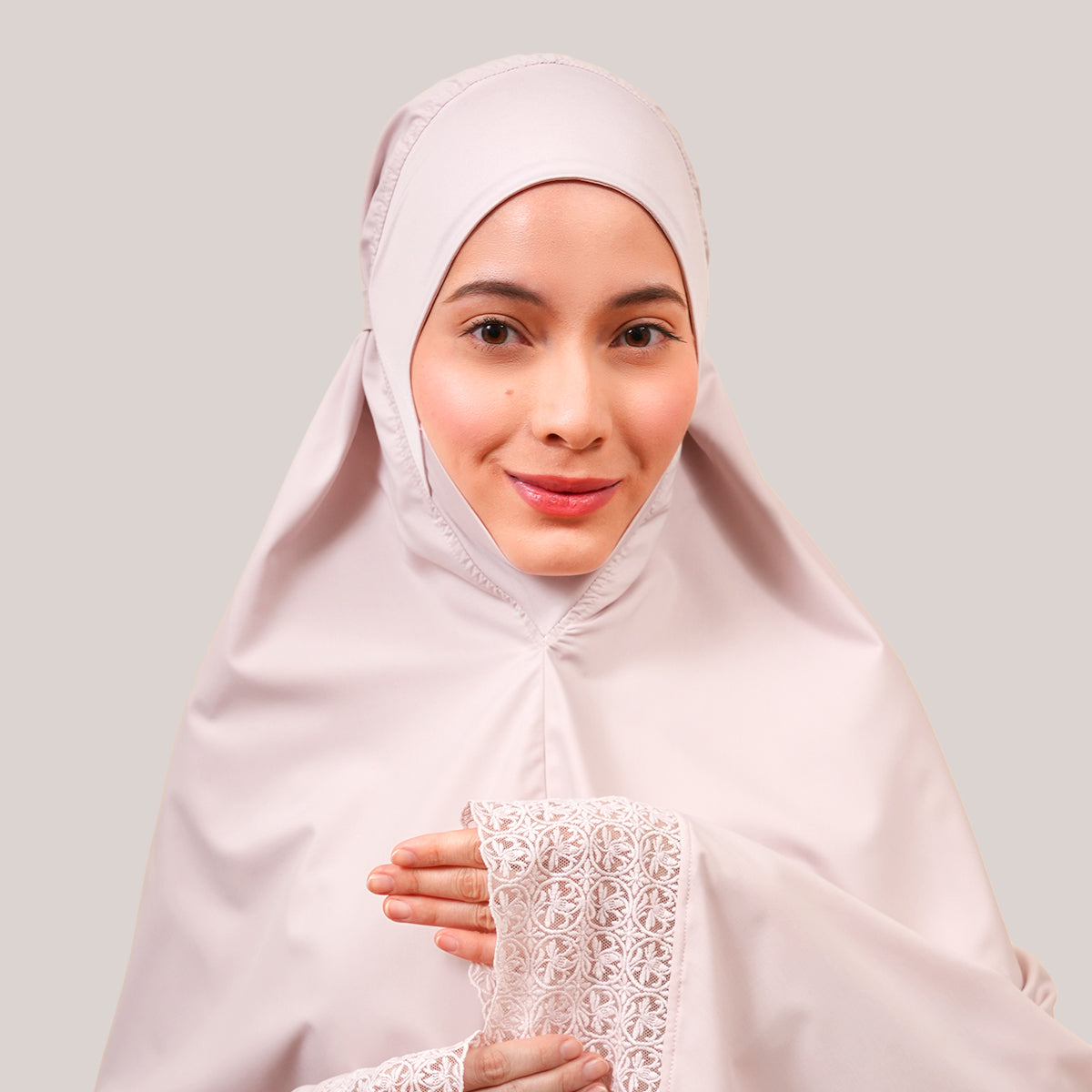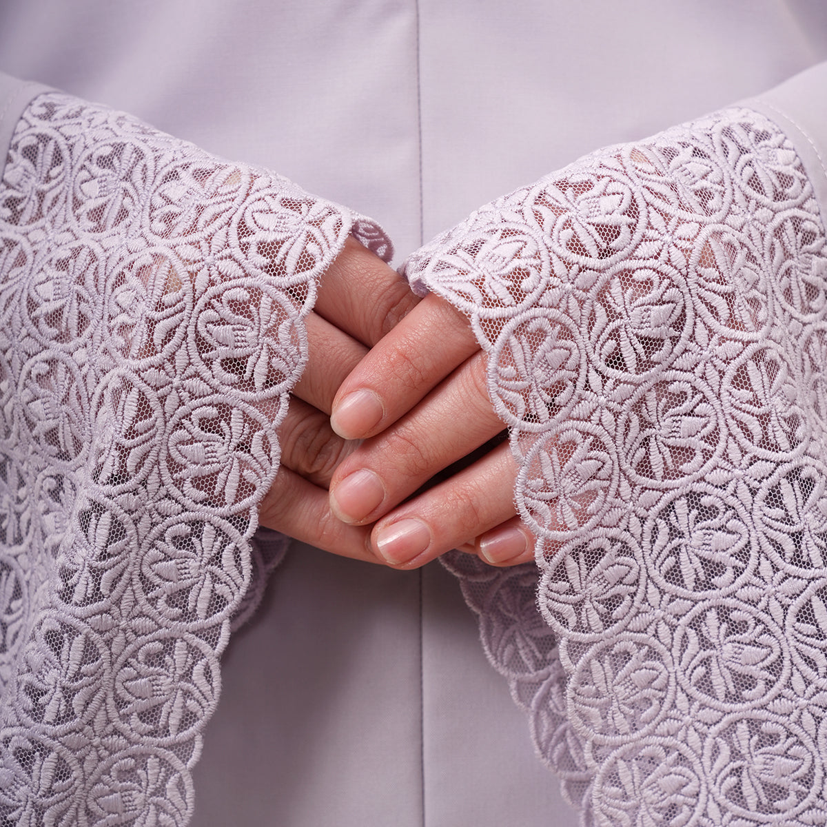 Harmony Modish Talitha is inspired by Mushaf motifs and features seamless lace designs that look elegant and luxurious while remaining minimal. Made with breathable and quick-drying KUF fabric, it feels soft on the skin and is comfortable to wear. The fine net lace finishing adds a graceful touch, reflecting the gentle, sweet, and captivating character behind the name Talitha.