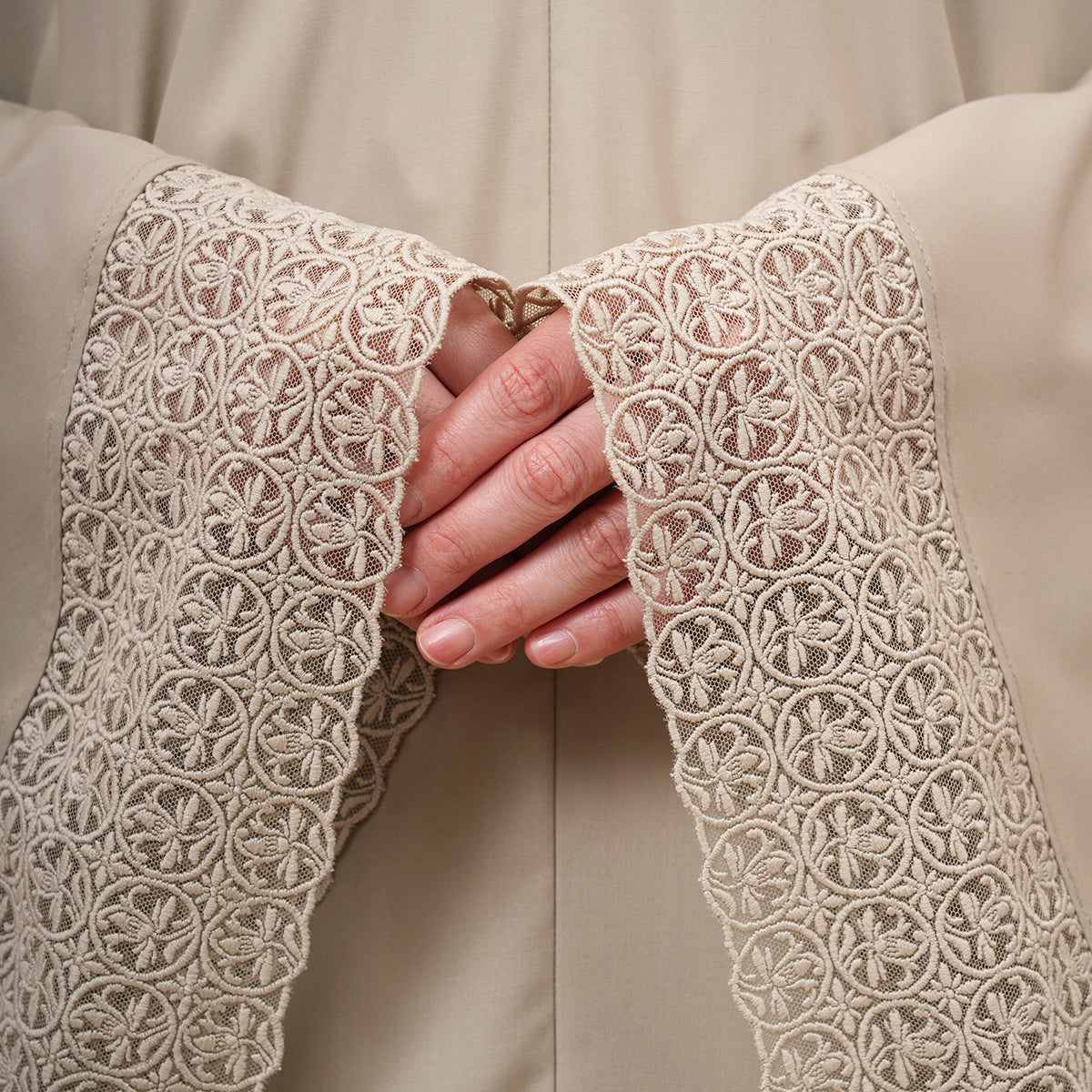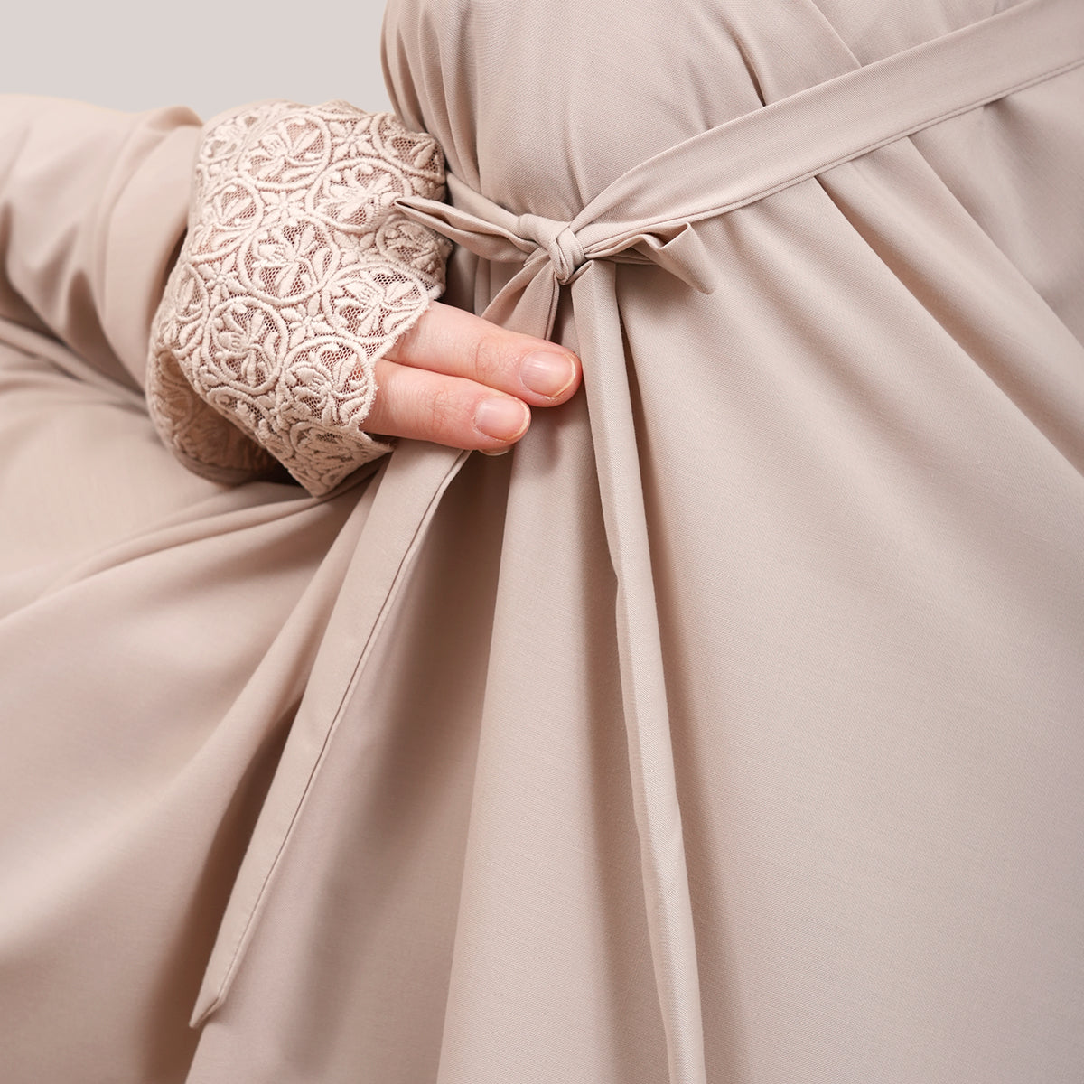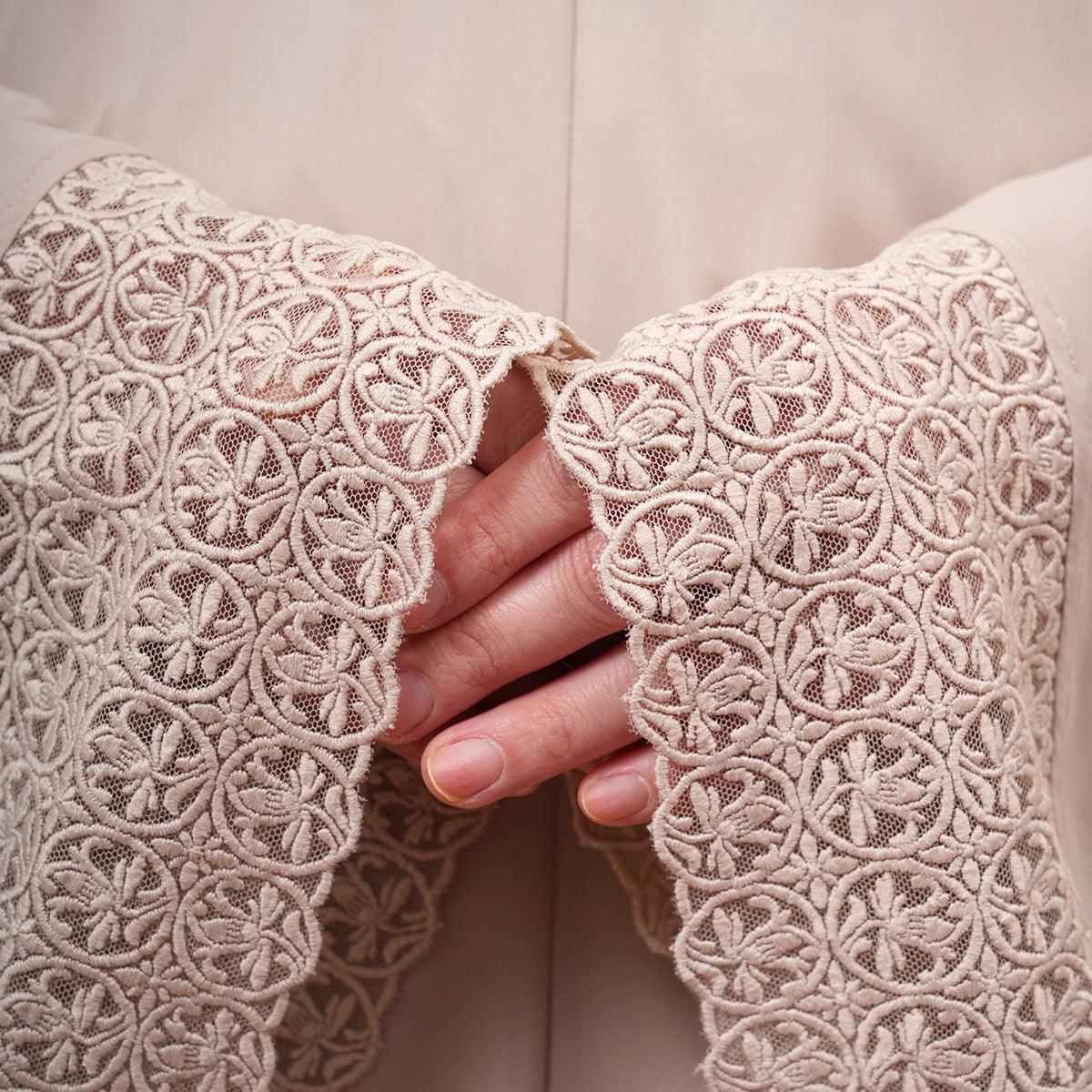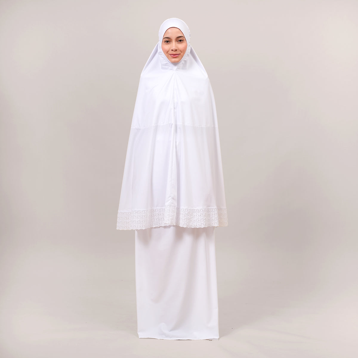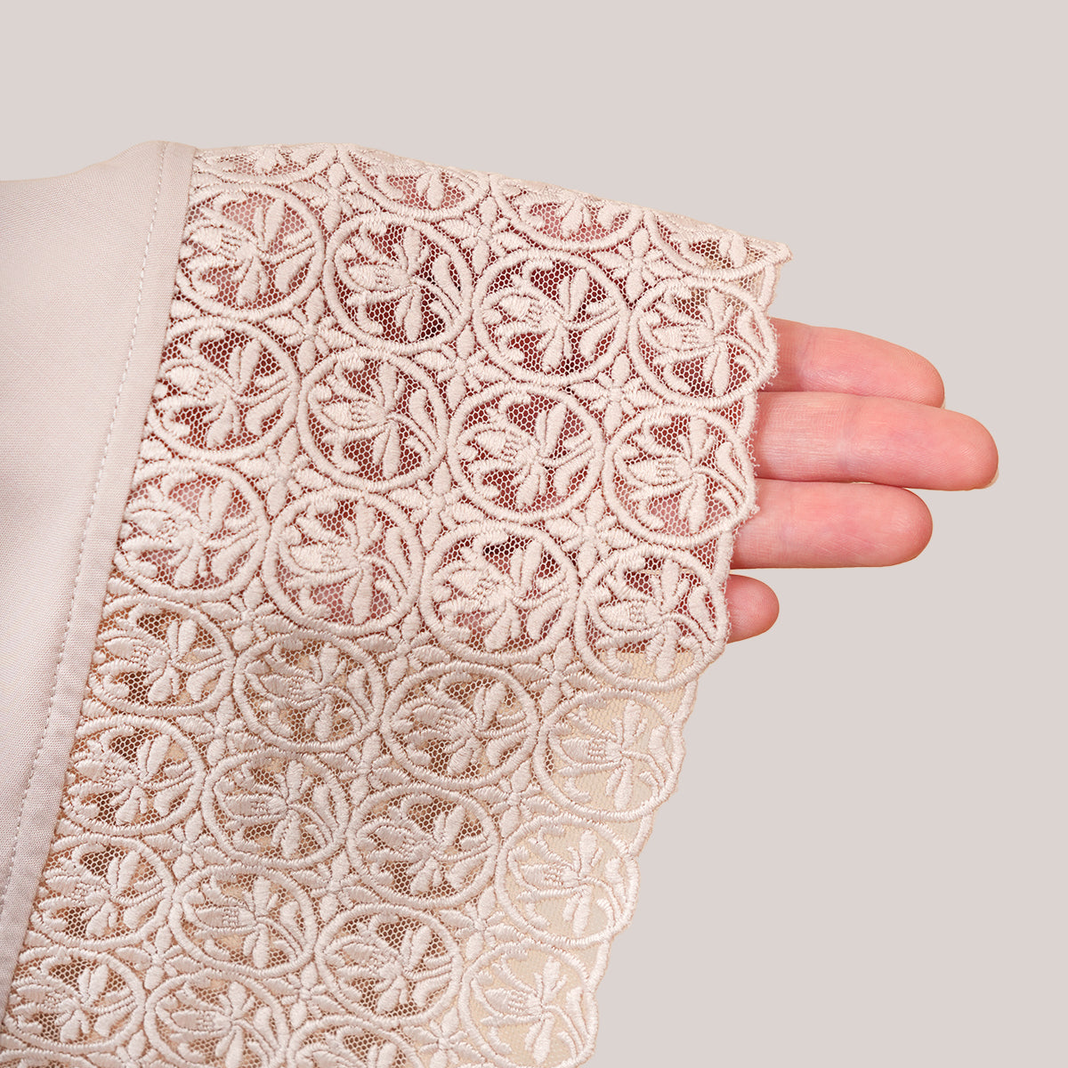 Harmony Modish Talitha is inspired by Mushaf motifs and features seamless lace designs that look elegant and luxurious while remaining minimal. Made with breathable and quick-drying KUF fabric, it feels soft on the skin and is comfortable to wear. The fine net lace finishing adds a graceful touch, reflecting the gentle, sweet, and captivating character behind the name Talitha.