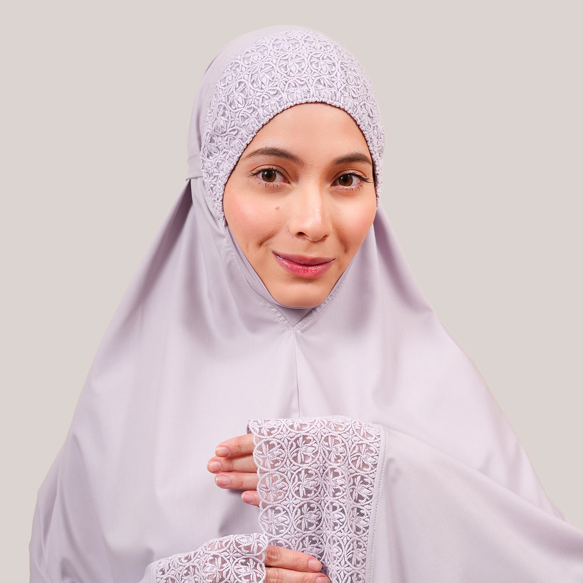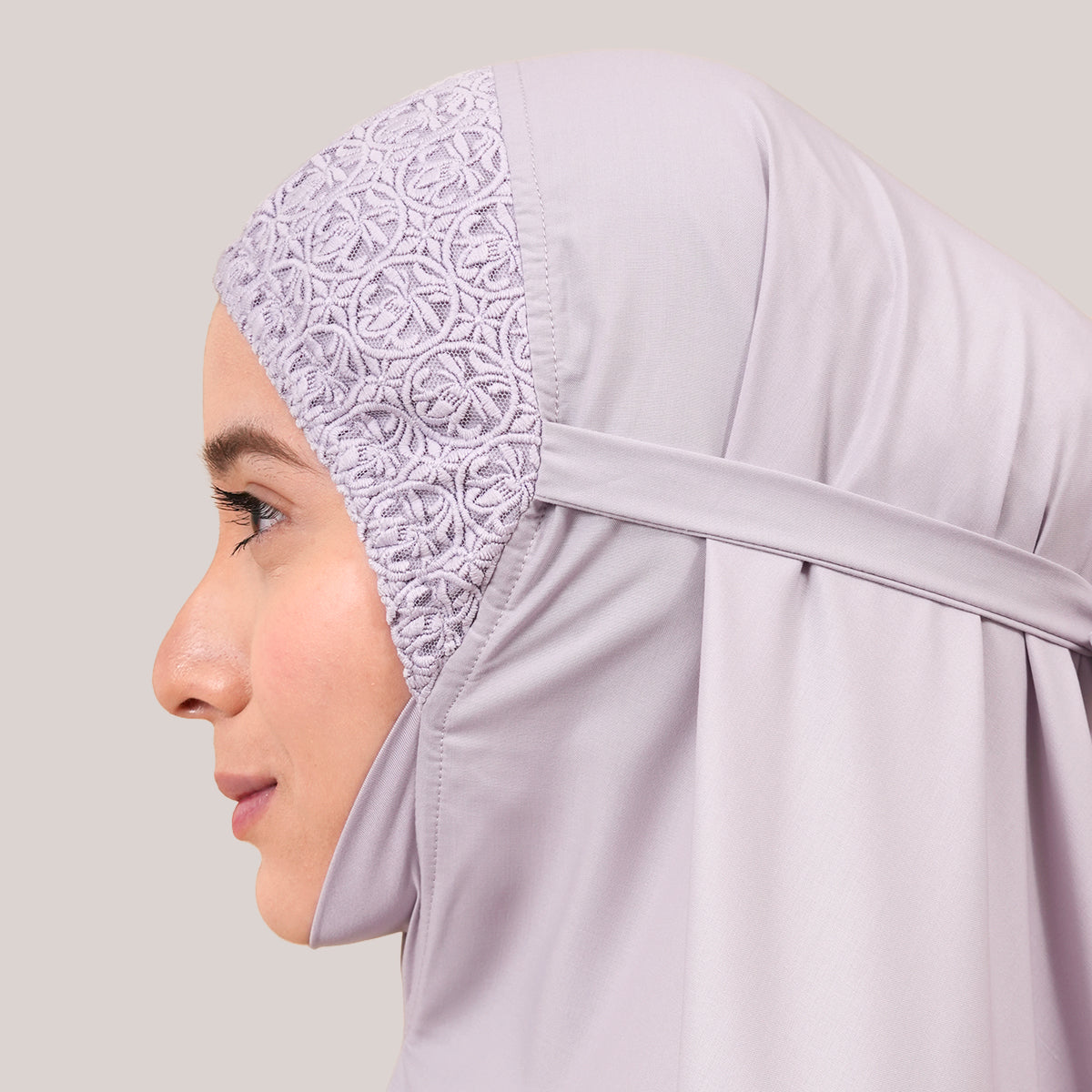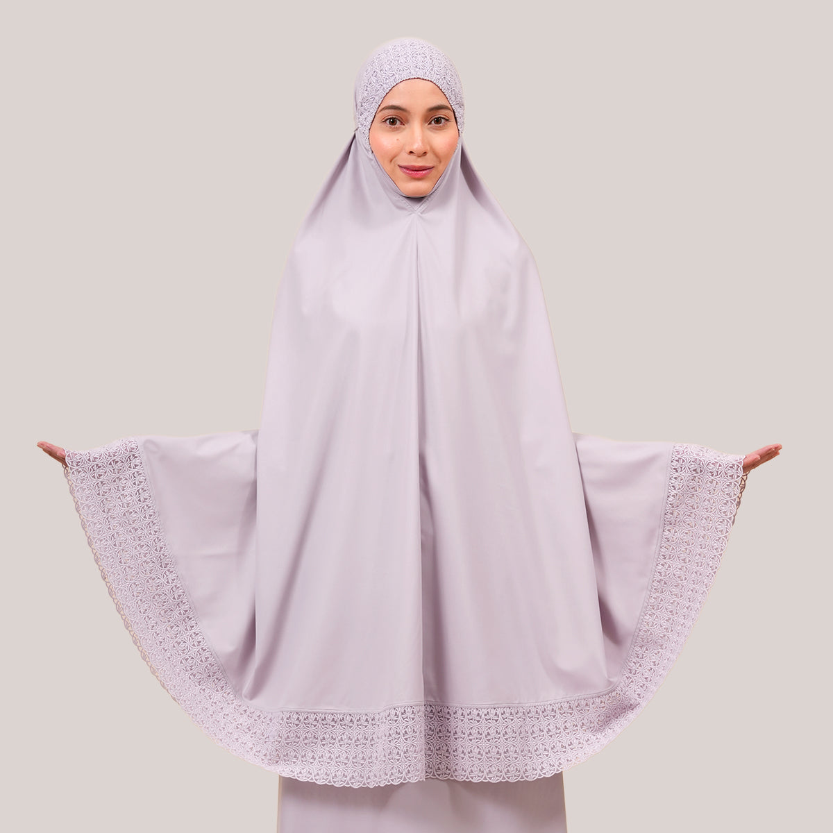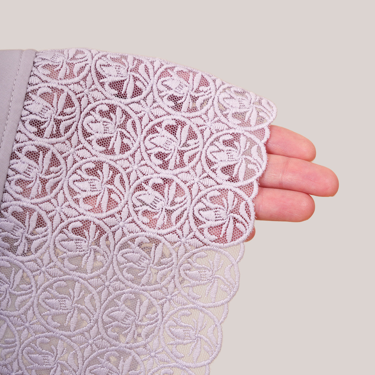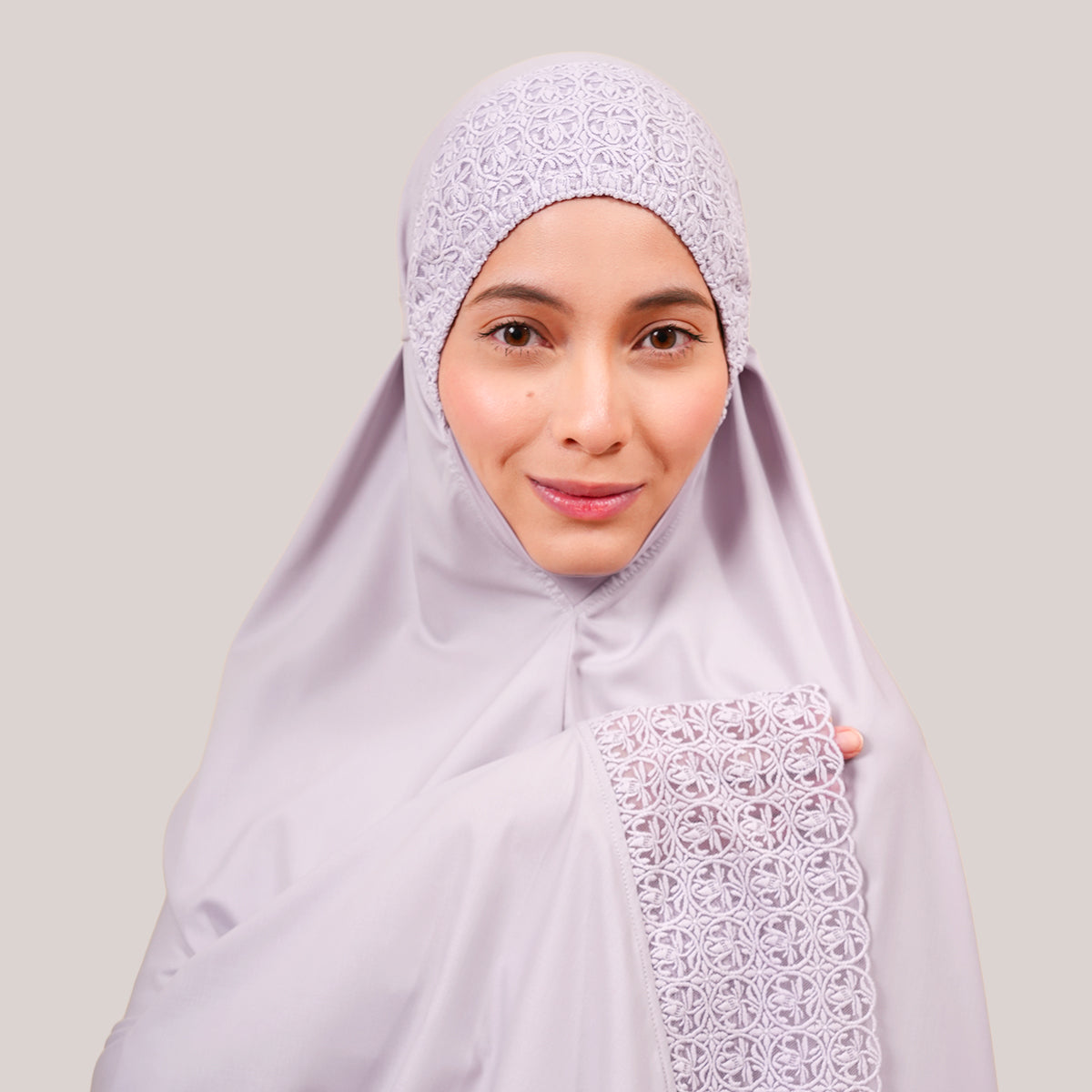 Modish Talitha is inspired by Mushaf motifs and features seamless lace designs that look elegant and luxurious while remaining minimal. Made with breathable and quick-drying KUF fabric, it feels soft on the skin and is comfortable to wear. The fine net lace finishing adds a graceful touch, reflecting the gentle, sweet, and captivating character behind the name Talitha.