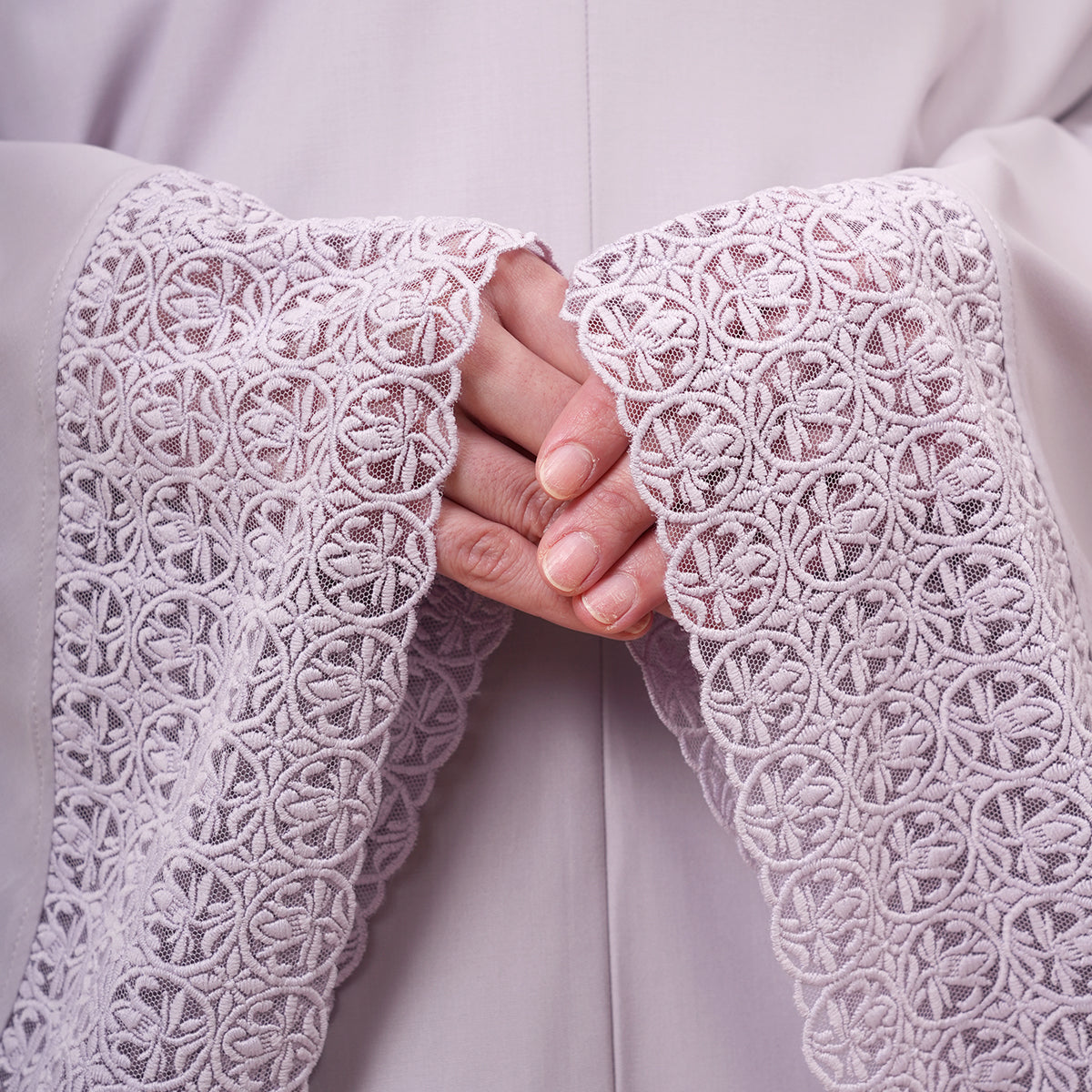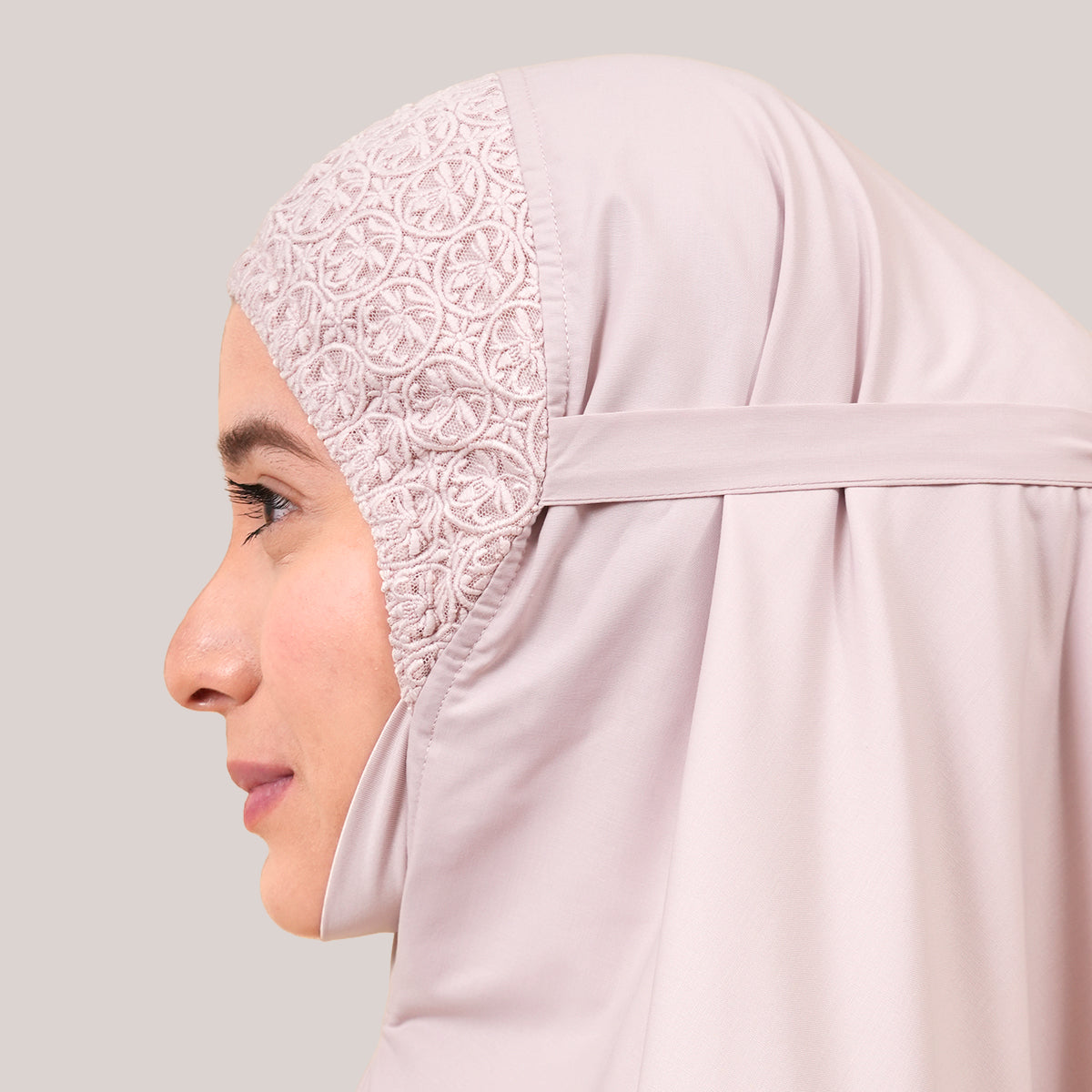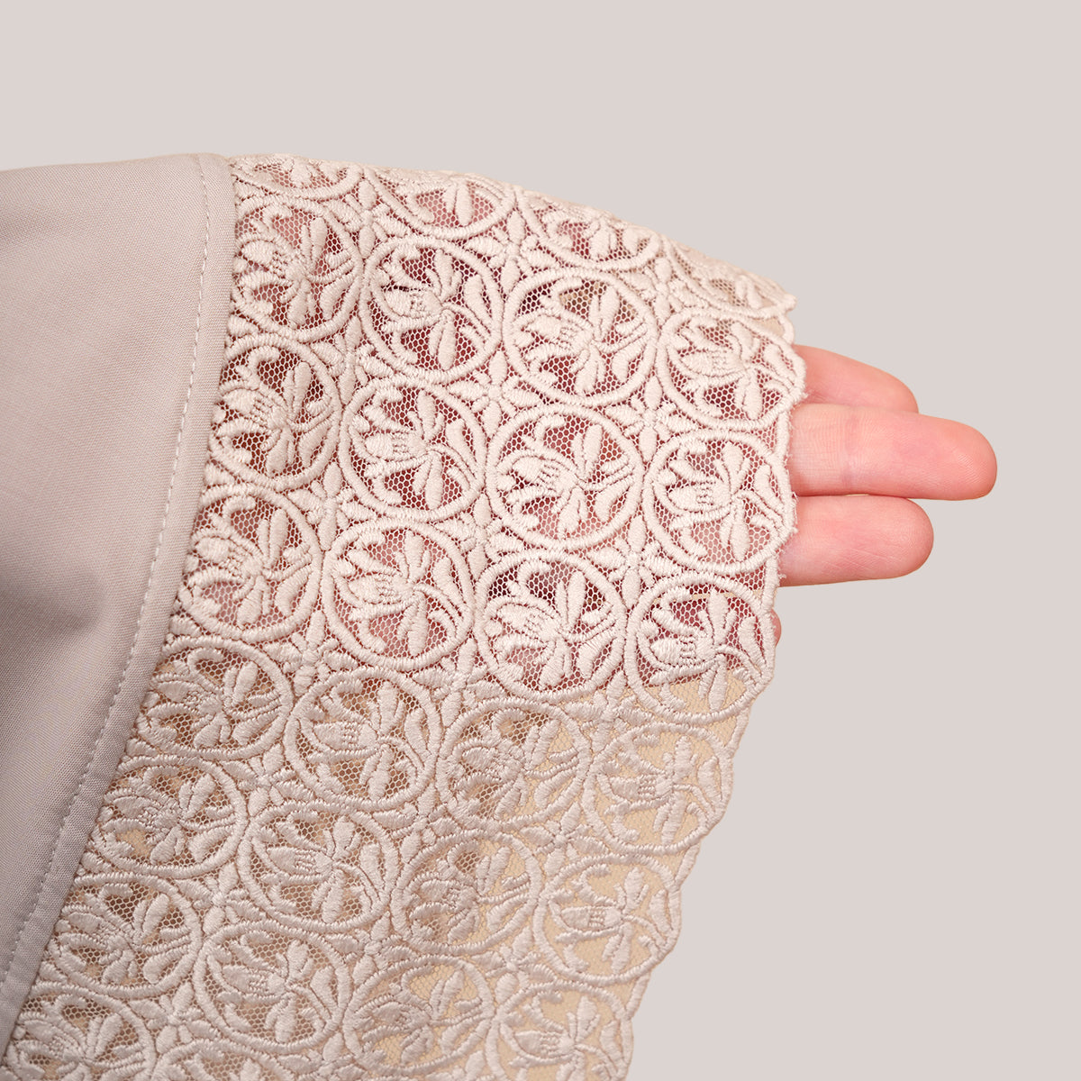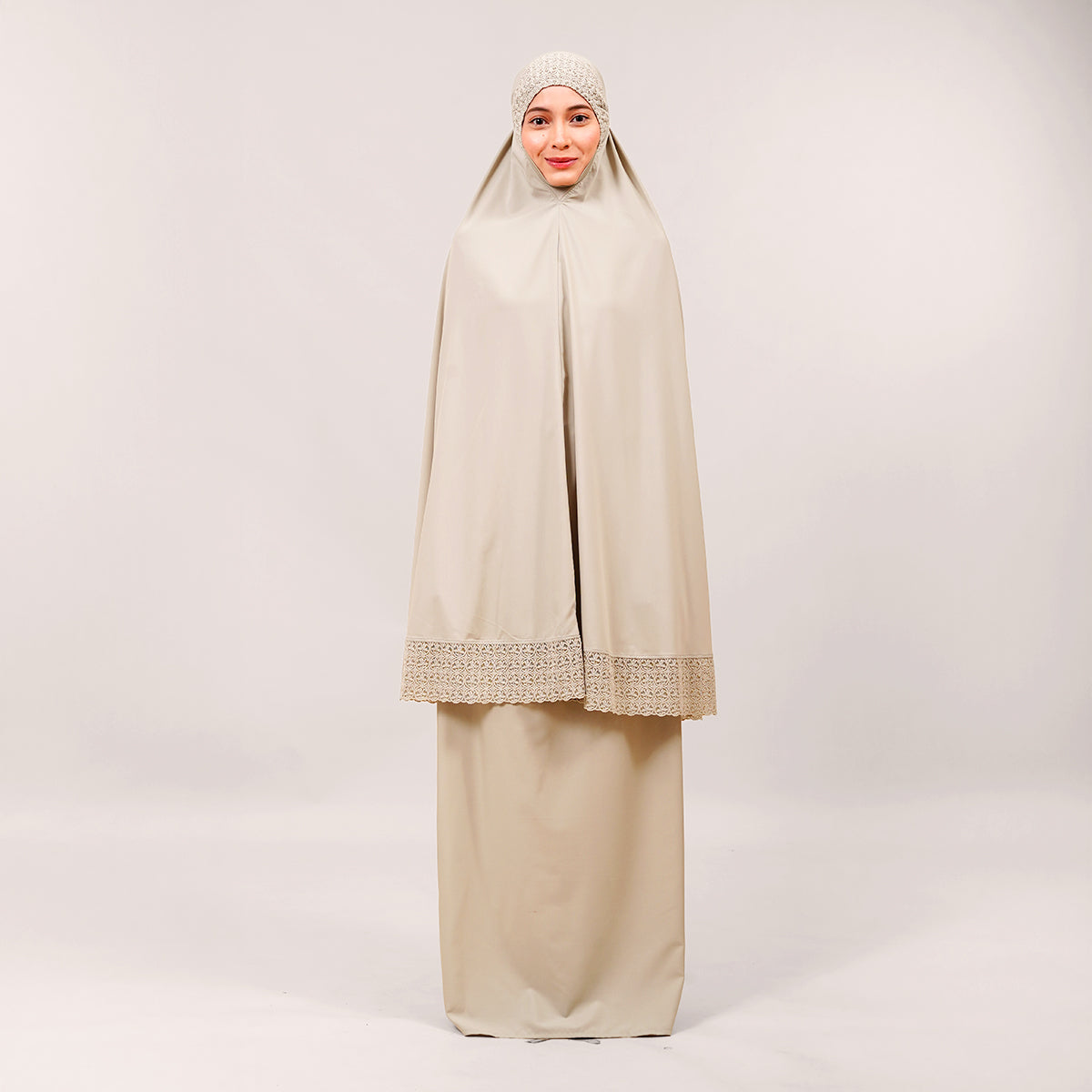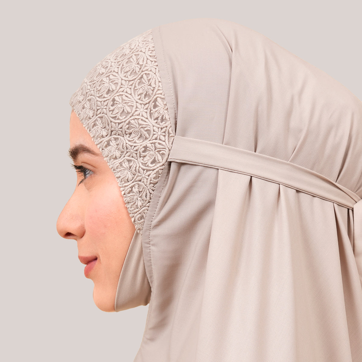Modish Talitha is inspired by Mushaf motifs and features seamless lace designs that look elegant and luxurious while remaining minimal. Made with breathable and quick-drying KUF fabric, it feels soft on the skin and is comfortable to wear. The fine net lace finishing adds a graceful touch, reflecting the gentle, sweet, and captivating character behind the name Talitha.