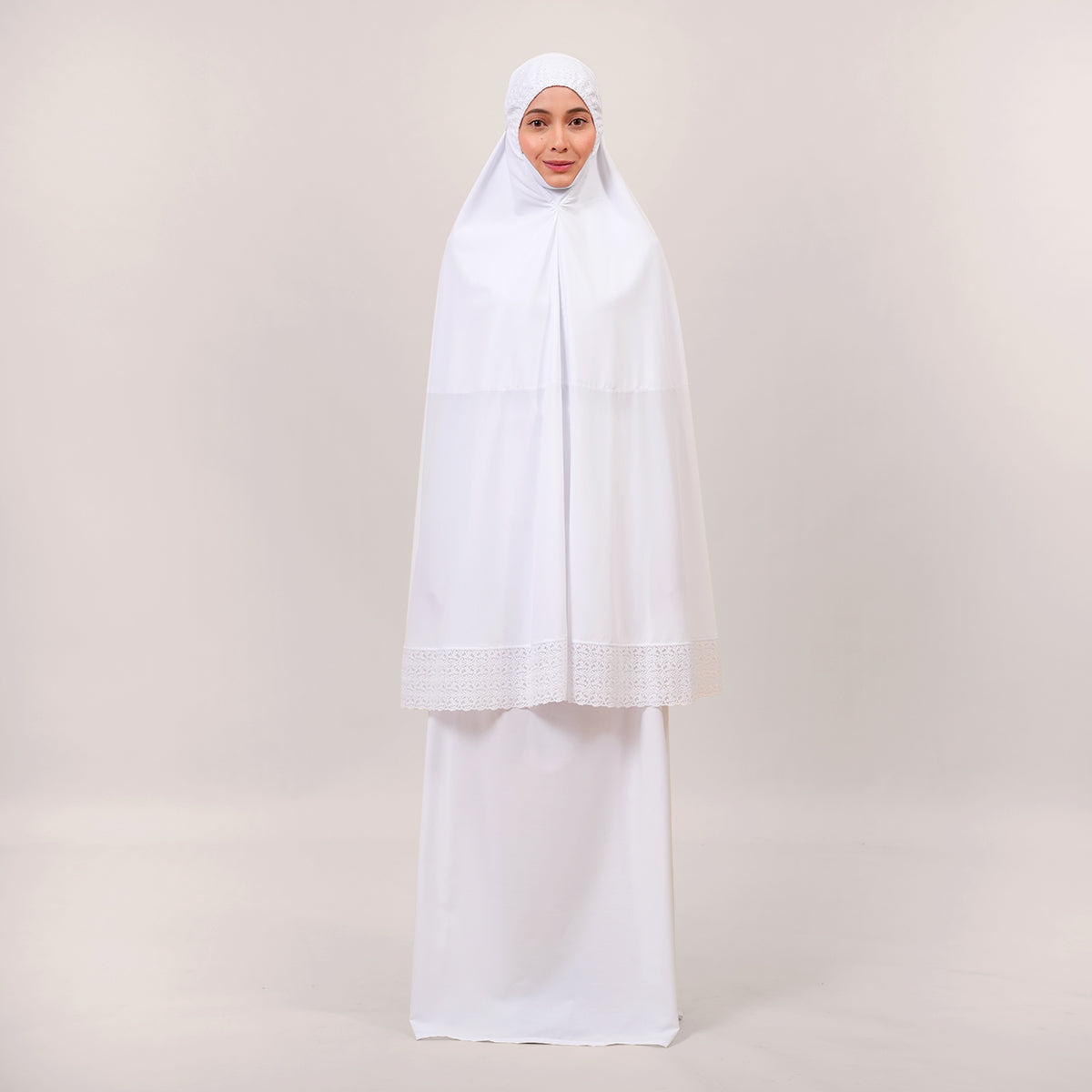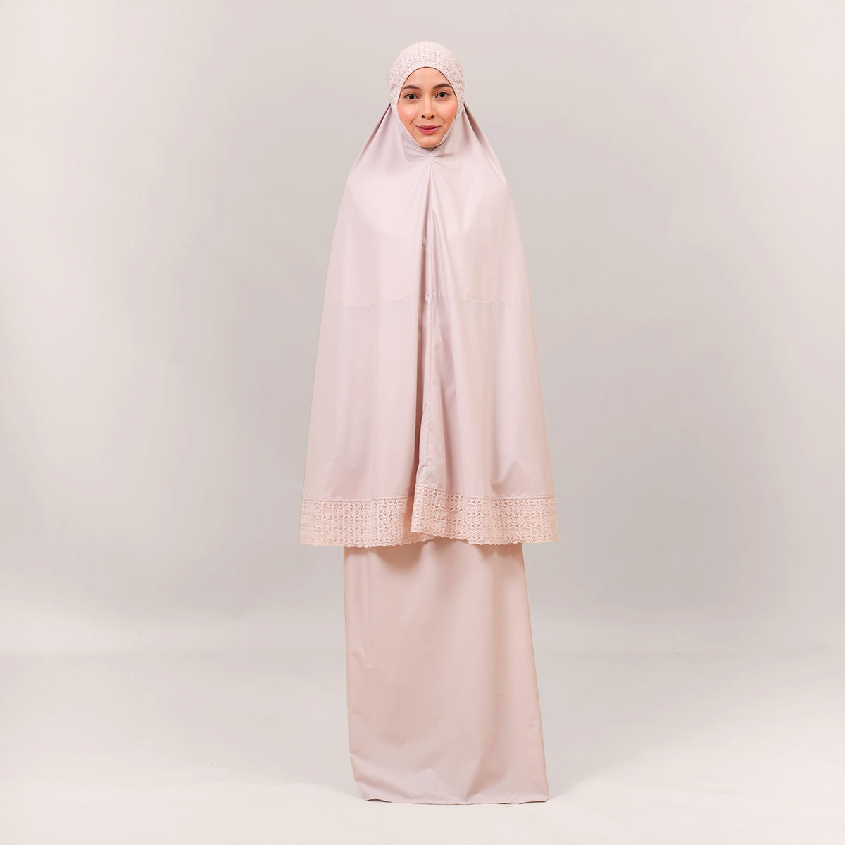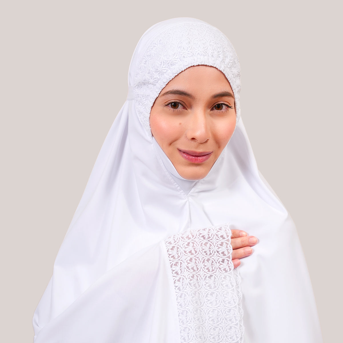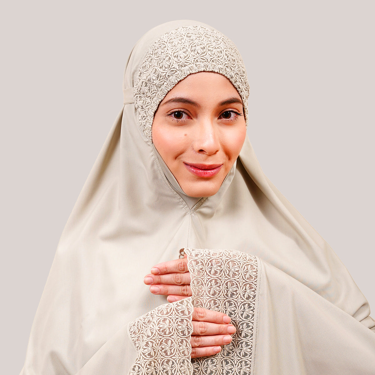 Modish Talitha is inspired by Mushaf motifs and features seamless lace designs that look elegant and luxurious while remaining minimal. Made with breathable and quick-drying KUF fabric, it feels soft on the skin and is comfortable to wear. The fine net lace finishing adds a graceful touch, reflecting the gentle, sweet, and captivating character behind the name Talitha.