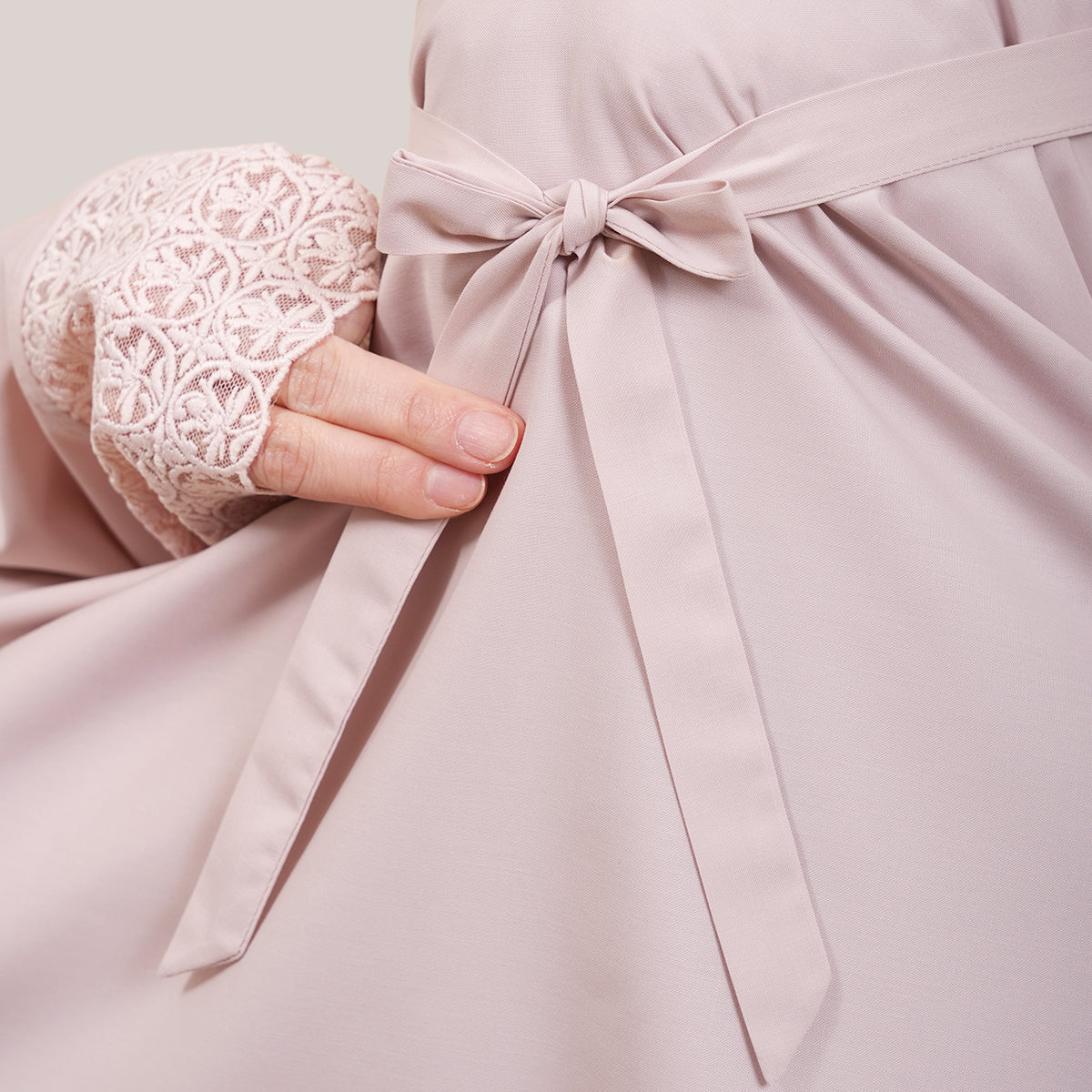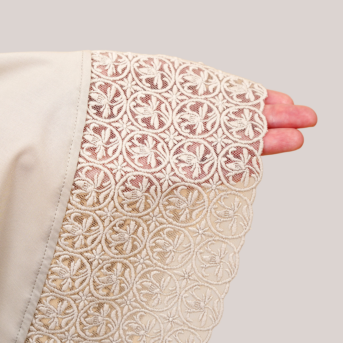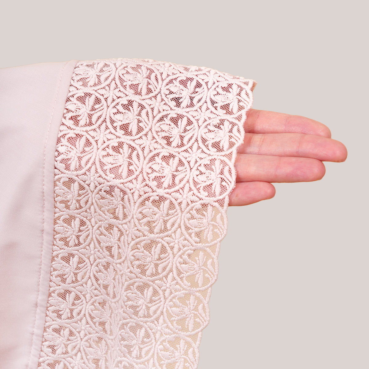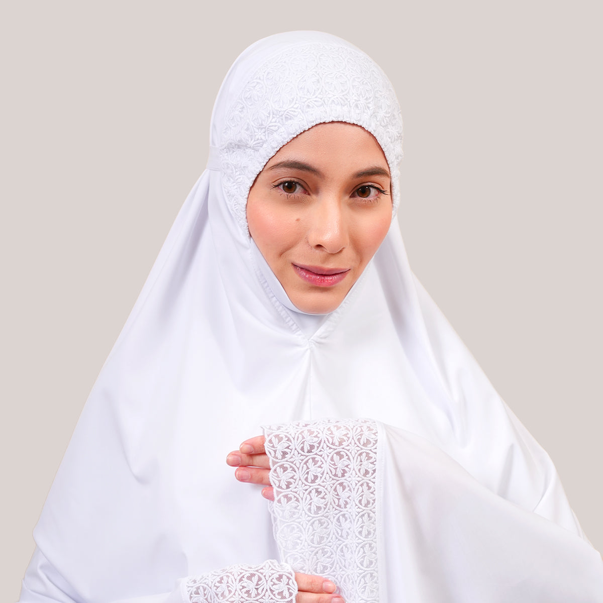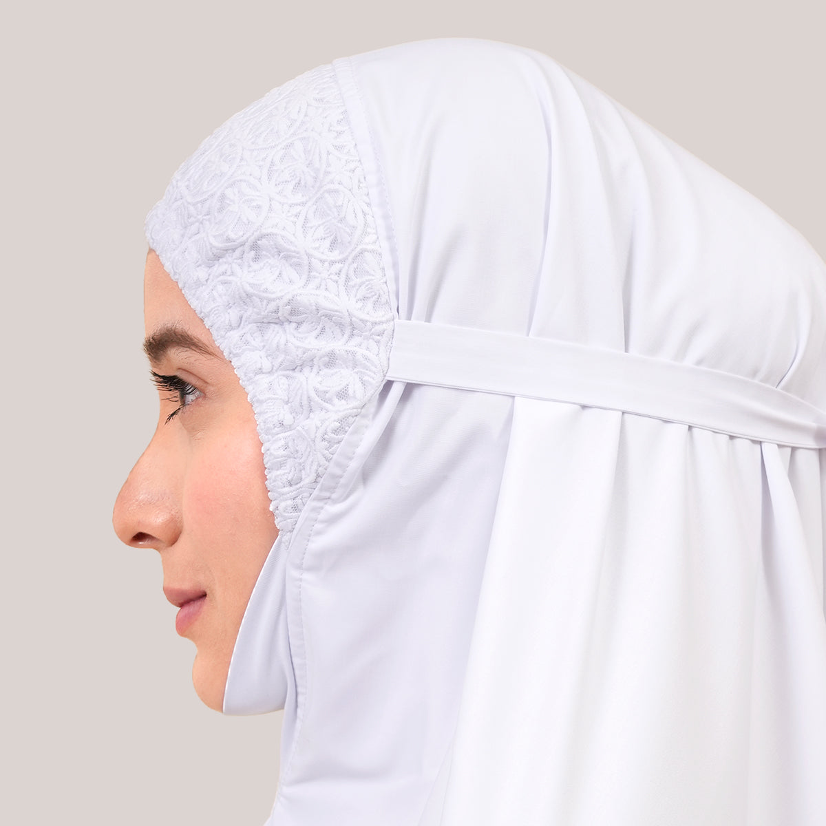 Modish Talitha is inspired by Mushaf motifs and features seamless lace designs that look elegant and luxurious while remaining minimal. Made with breathable and quick-drying KUF fabric, it feels soft on the skin and is comfortable to wear. The fine net lace finishing adds a graceful touch, reflecting the gentle, sweet, and captivating character behind the name Talitha.