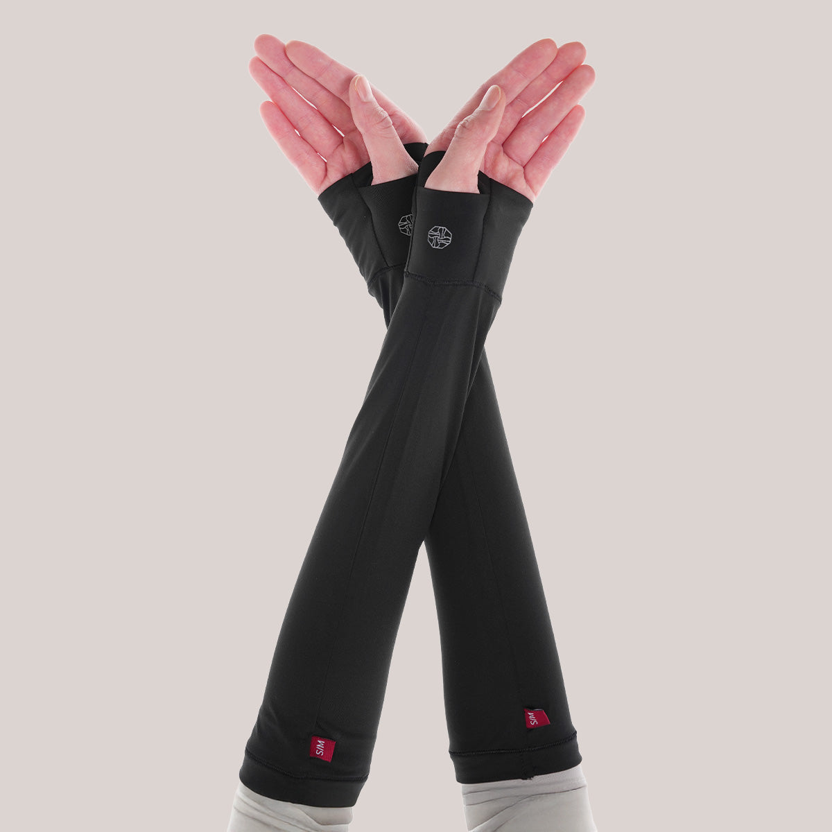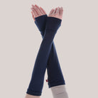 Thumbhole Arm Sleeves are made from 86% Nylon and 14% Spandex, providing a soft, stretchy, and breathable feel for comfortable daily wear. The thumbhole design helps keep the sleeves in place and prevents them from moving during activities. With longer coverage up to the wrists, they are suitable for daily use such as driving, working, exercising, or prayer. The design also helps maintain modest arm coverage while allowing easy and comfortable movement throughout the day.