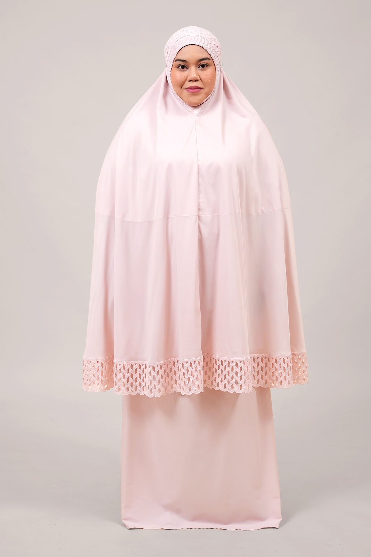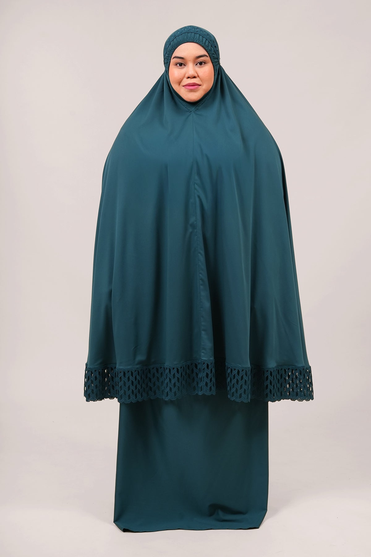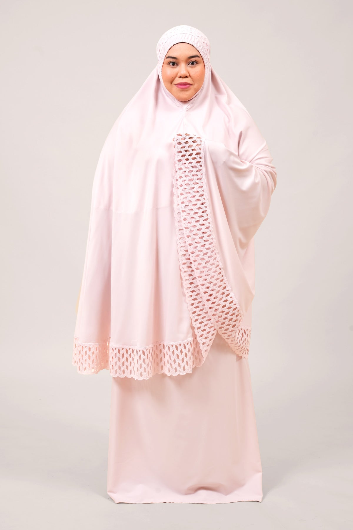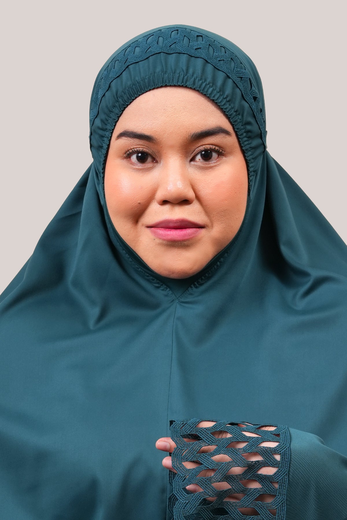 Introducing Modish Bushra Plus with material Khadijah Ultra Comfy Fine (KUF+) – a soft, comfortable, and practical telekung. It is also available in a plus size (3XL) for a more comfortable and modest fit. Made from fabric as soft as a baby’s skin, it has a new stretchable chin pad that stays in shape, doesn’t slip, and feels smooth. The head part has padded elastic that’s gentle on the forehead. It features strong, beautiful guipure lace and wide ties for a secure fit. The fabric is long-lasting, doesn’t wrinkle easily, and keeps its color after washing. Inspired by simple, neat lines, Bushra brings a sense of peace, beauty, and joy in worship.
