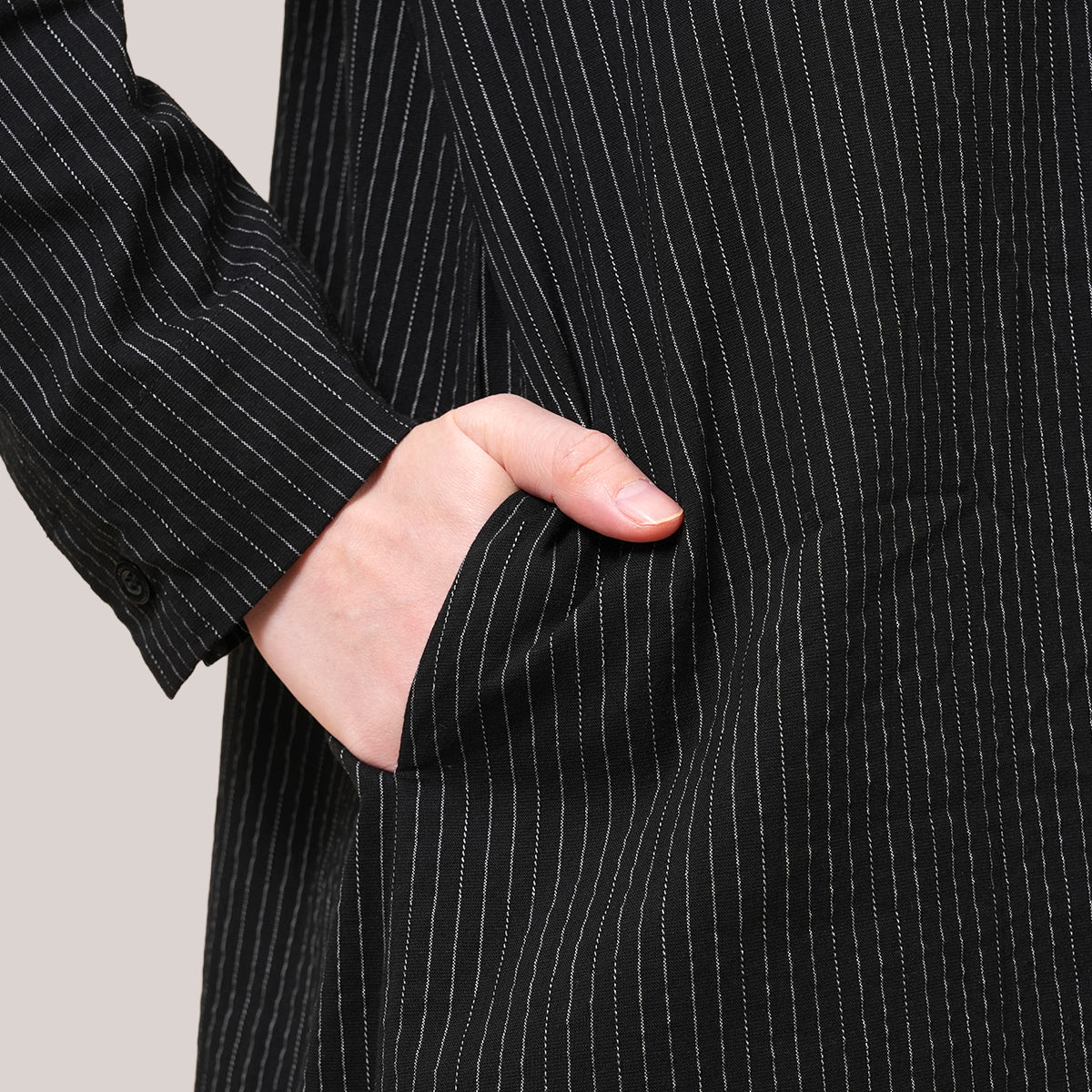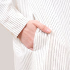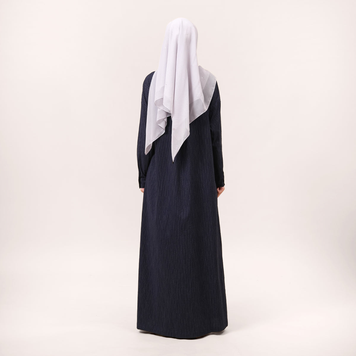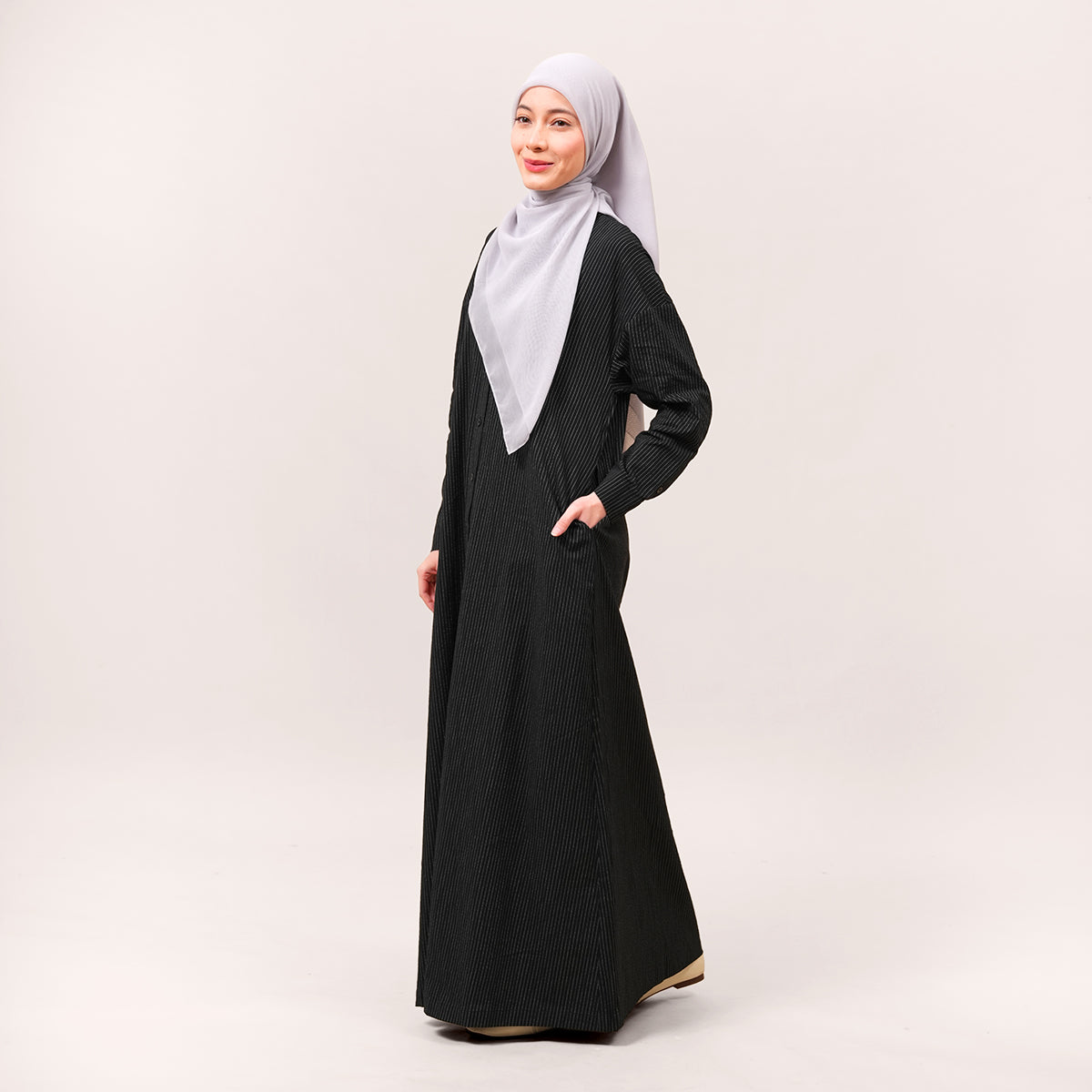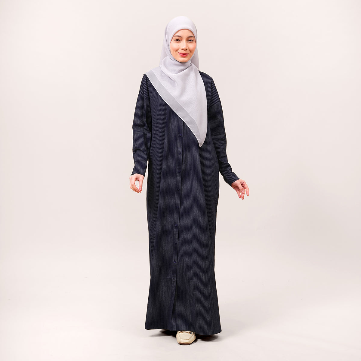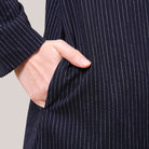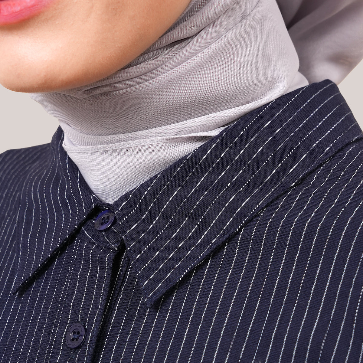 This piece features a minimalist design inspired by elegant pinstripes that create the illusion of a taller and slimmer silhouette. The shirt collar and full button-front add a polished and versatile touch, making it suitable for both daily wear and more formal occasions. Designed with a loose and modest cut, it offers comfort while maintaining a neat and professional look. The soft, breathable fabric is lightweight and ideal for Malaysia’s warm climate, while still providing enough structure to keep the shape looking clean and stylish.