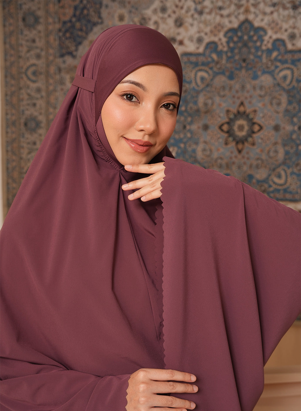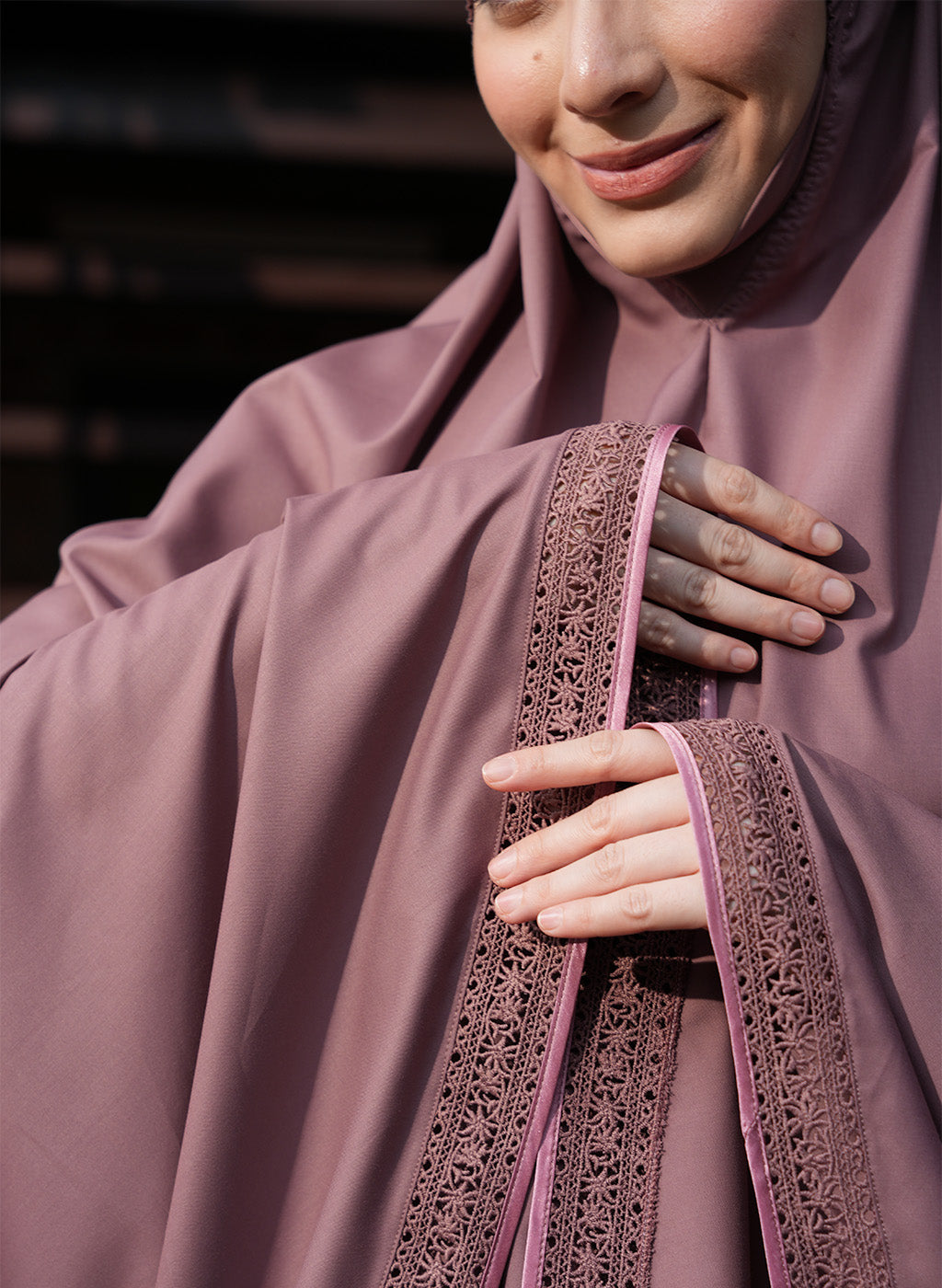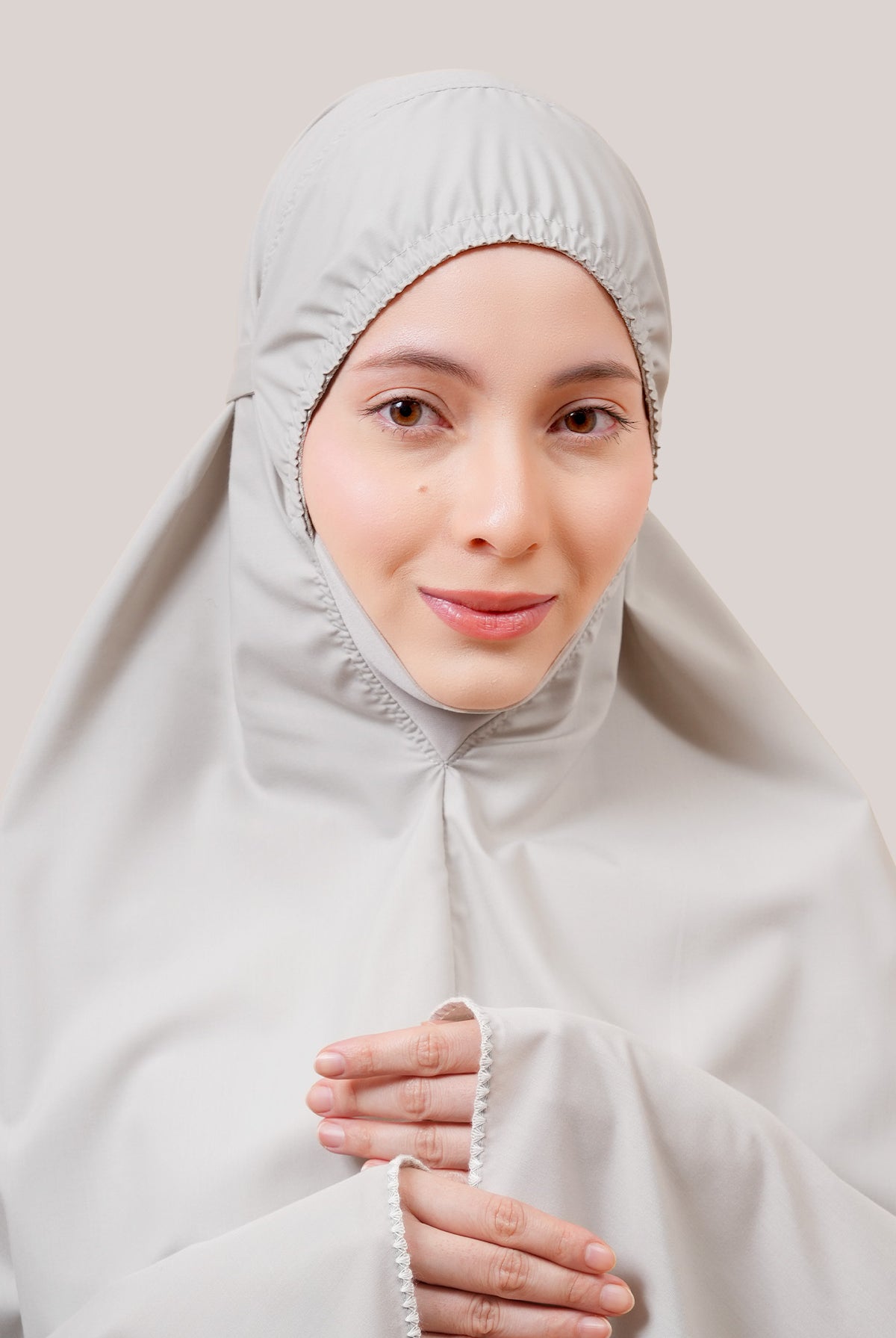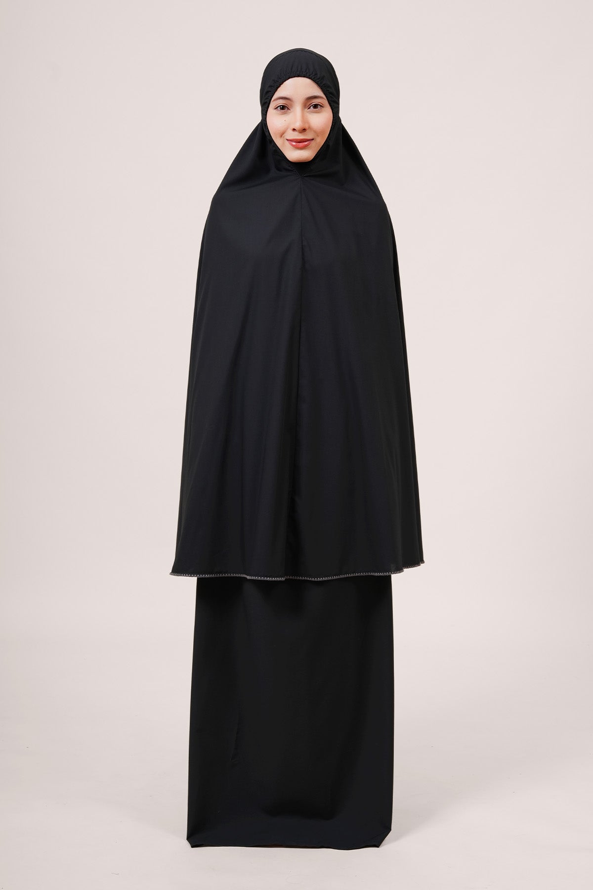 Crafted from Khadijah Airy V2, this is our lightest telekung at just 350g. It offers a soft, cooling drape that doesn’t cling, making it perfect for warm climates. Finished with a clean laser-cut design, it includes a weighted hem to stay secure even in windy conditions.