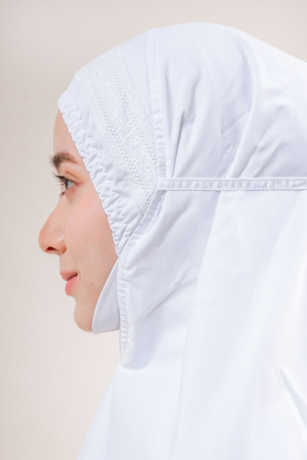 Made from Khadijah Basic Poplin V2, Signature Ayliz offers a lightweight and breathable feel with a cotton-like softness on the skin. The ITY chin lining stretches comfortably without losing shape, while the Classic padded headband ensures a snug fit without leaving marks. Designed with delicate cotton lace finishing and minimal maintenance needs.