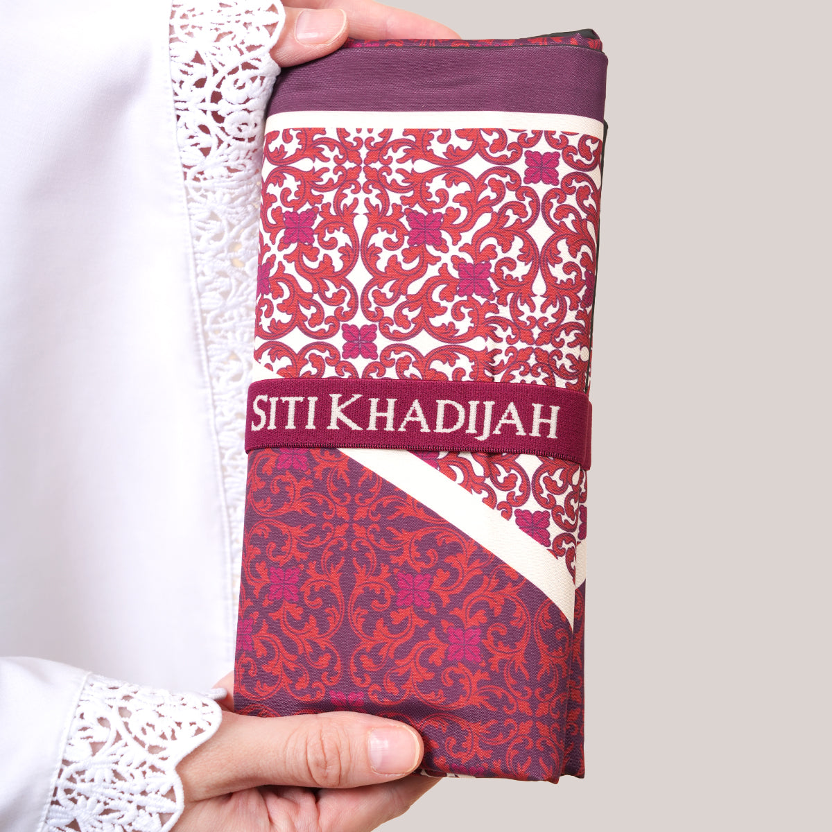 Made with a full-print polyester top and waterproof polyester bottom, this travel prayer mat is lightweight, easy to clean, and comfortable to use. Inspired by the Mushaf Terengganu motif, designed for travel, it includes a matching pouch for easy and clean storage, a neoprene sujud area for added comfort, and an elastic band to keep it neatly folded. The standard size fits most adults and can also be used by 2–3 people when laid horizontally, making it practical for daily and outdoor use.