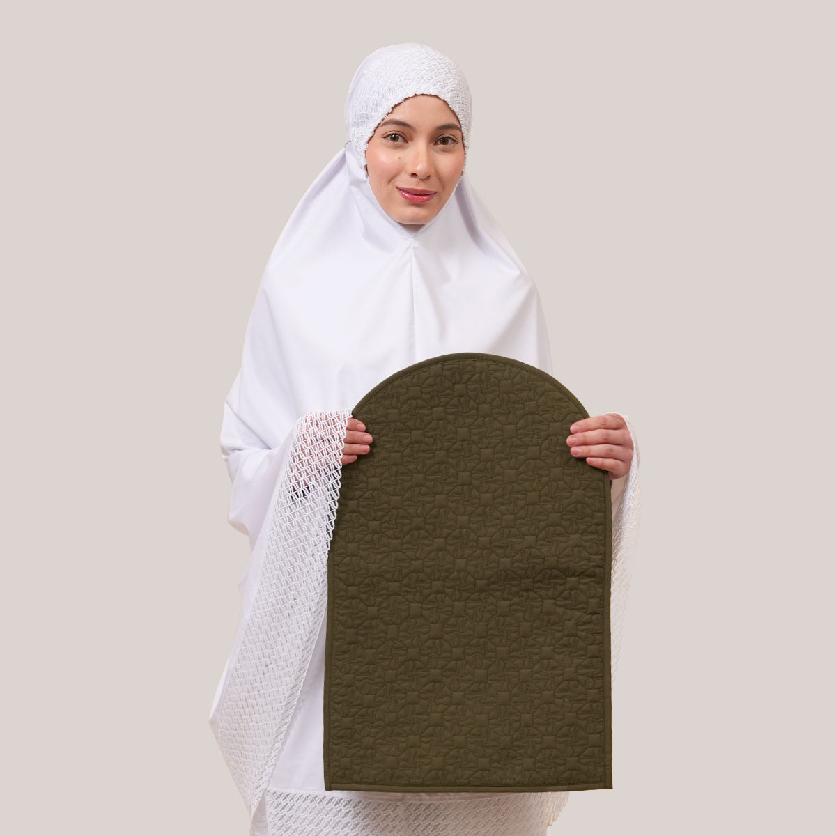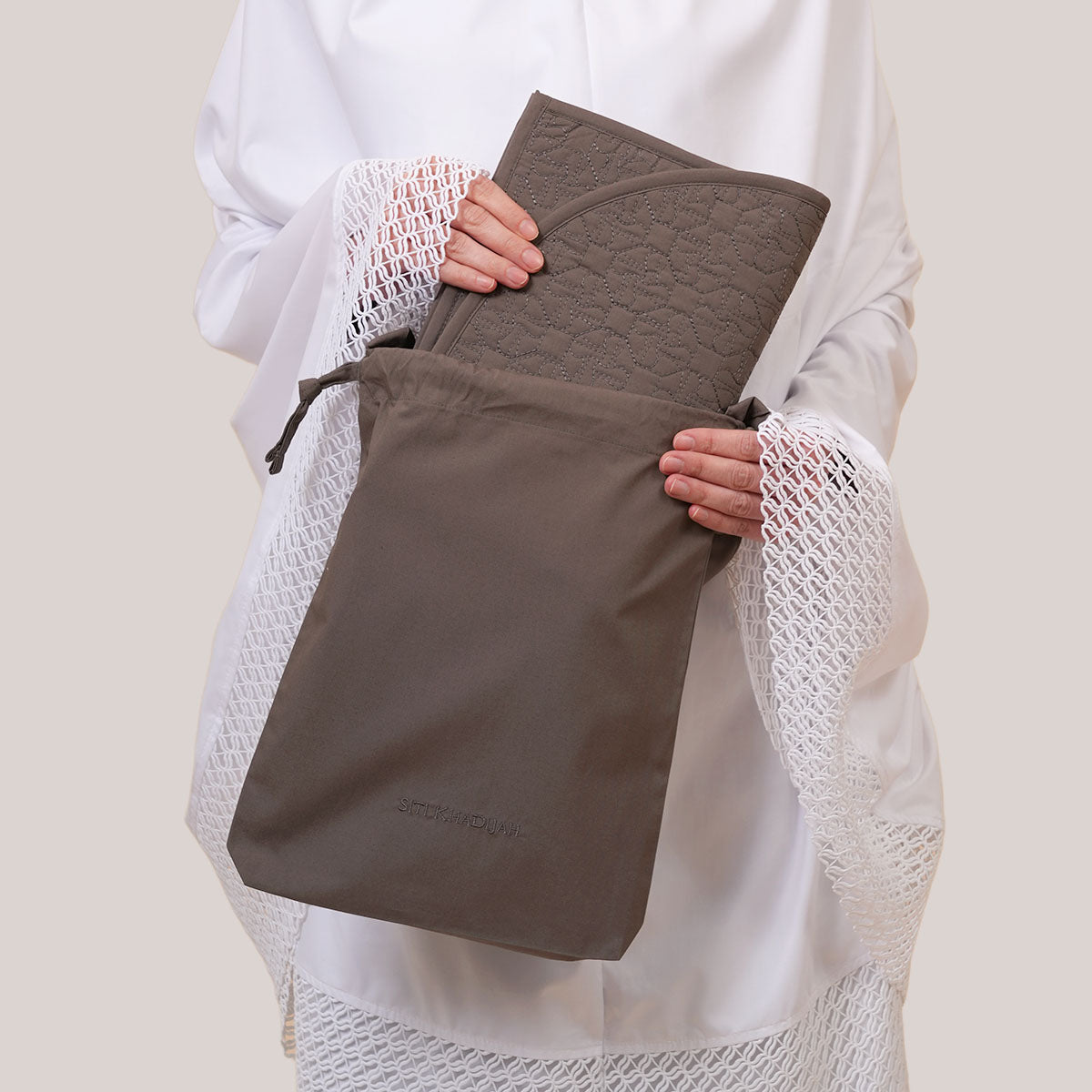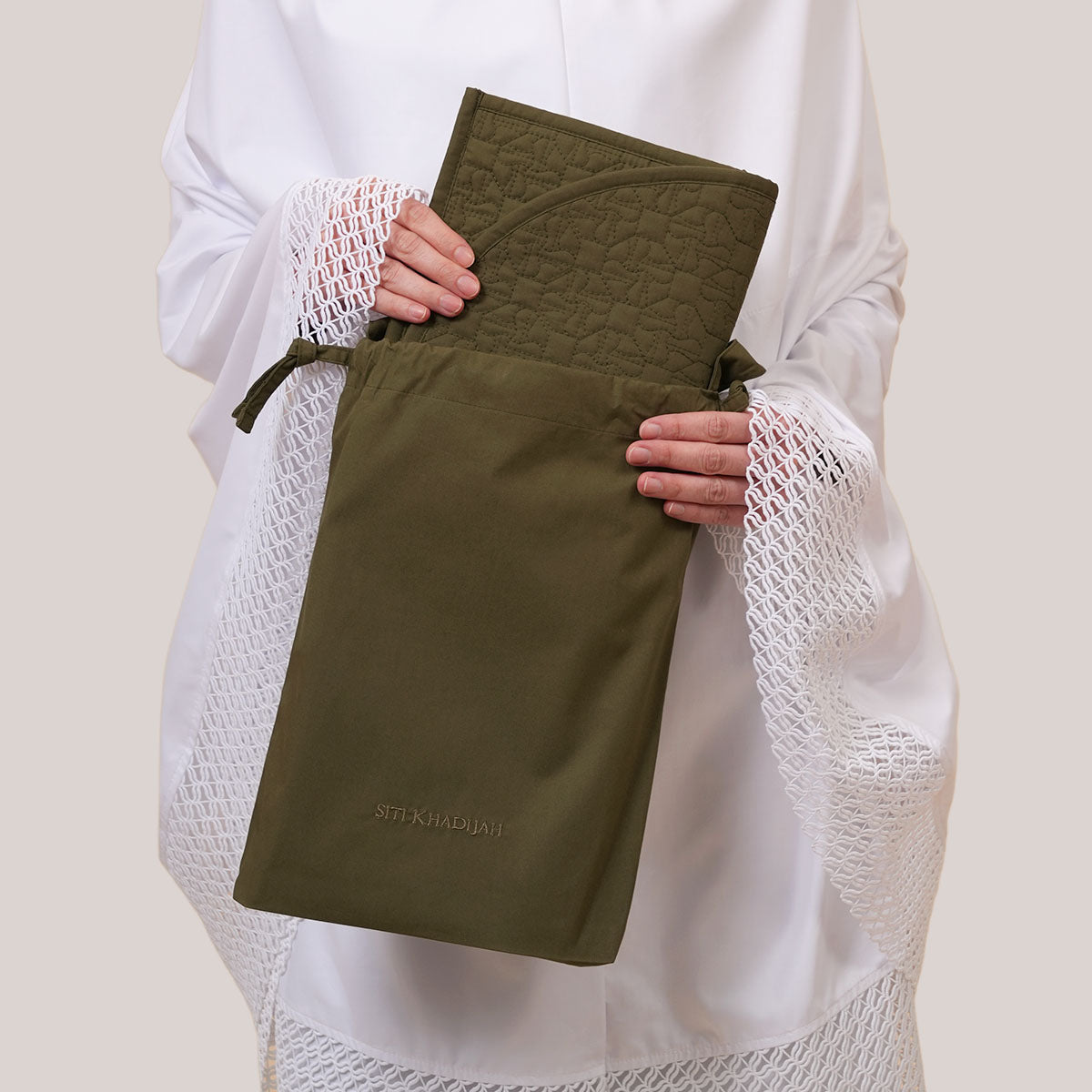 Nikmati keselesaan ibadah di mana jua dengan Sejadah Quilted Mini (SK Mono & Zayn) yang menggabungkan material kapas lembut dan poliester tahan lasak untuk penggunaan maksimum. Rekaan eksklusif yang ringan, mudah dicuci, dan tidak mudah kedut ini sangat praktikal untuk kembara atau solat Tarawih kerana saiznya yang menjimatkan ruang. Didatangkan dengan beg pouch khas bagi menjaga kebersihan serta memudahkan anda membawa sejadah bersama telekung, koleksi ini tampil neutral dan tenang dan warna olive green yang elegan buat pengguna.