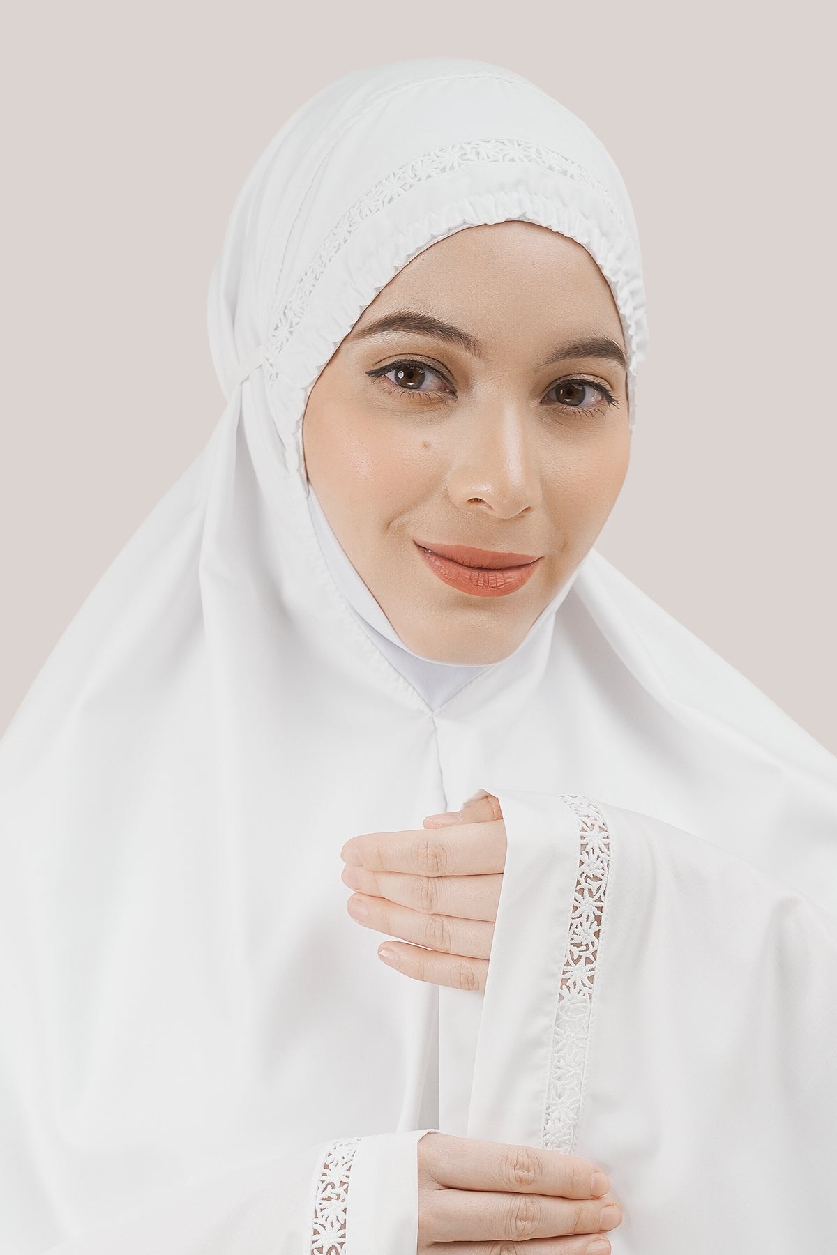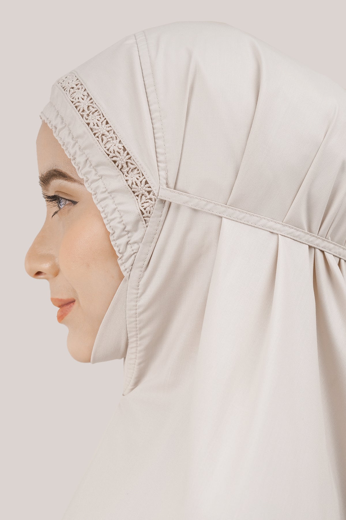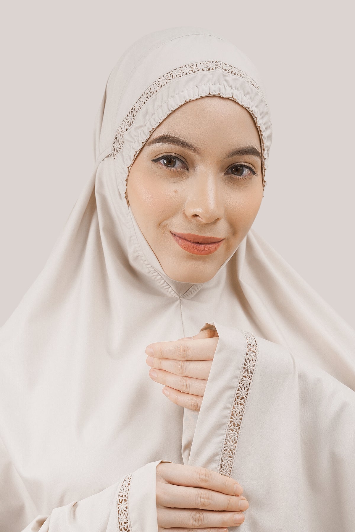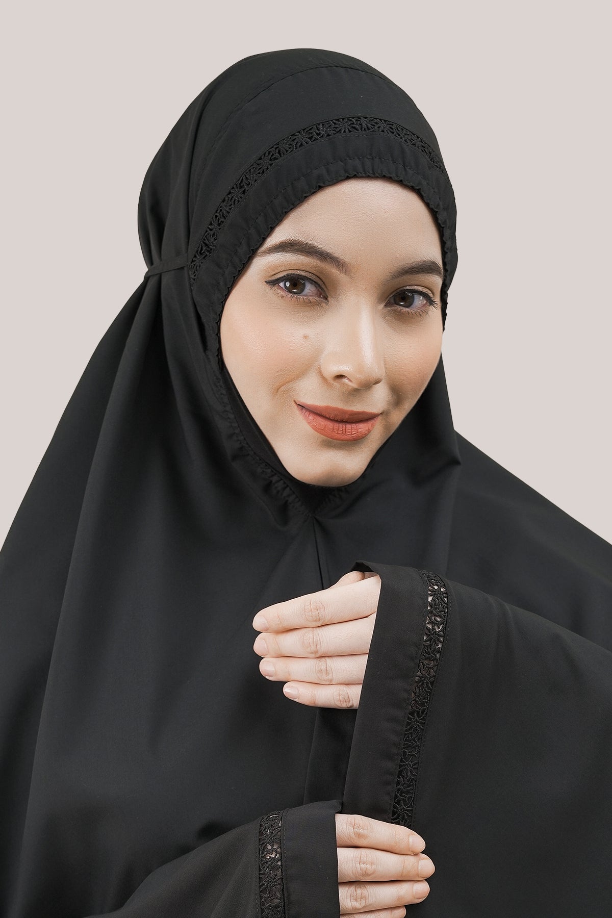 Made from Khadijah Basic Fine (KBF) fabric, Modish Delila is breathable, and twice as soft for ultimate comfort. Designed with intricate Mughal-inspired lace featuring a neat Classic facelook with a secure fit, ensuring both beauty and confidence in every prayer.