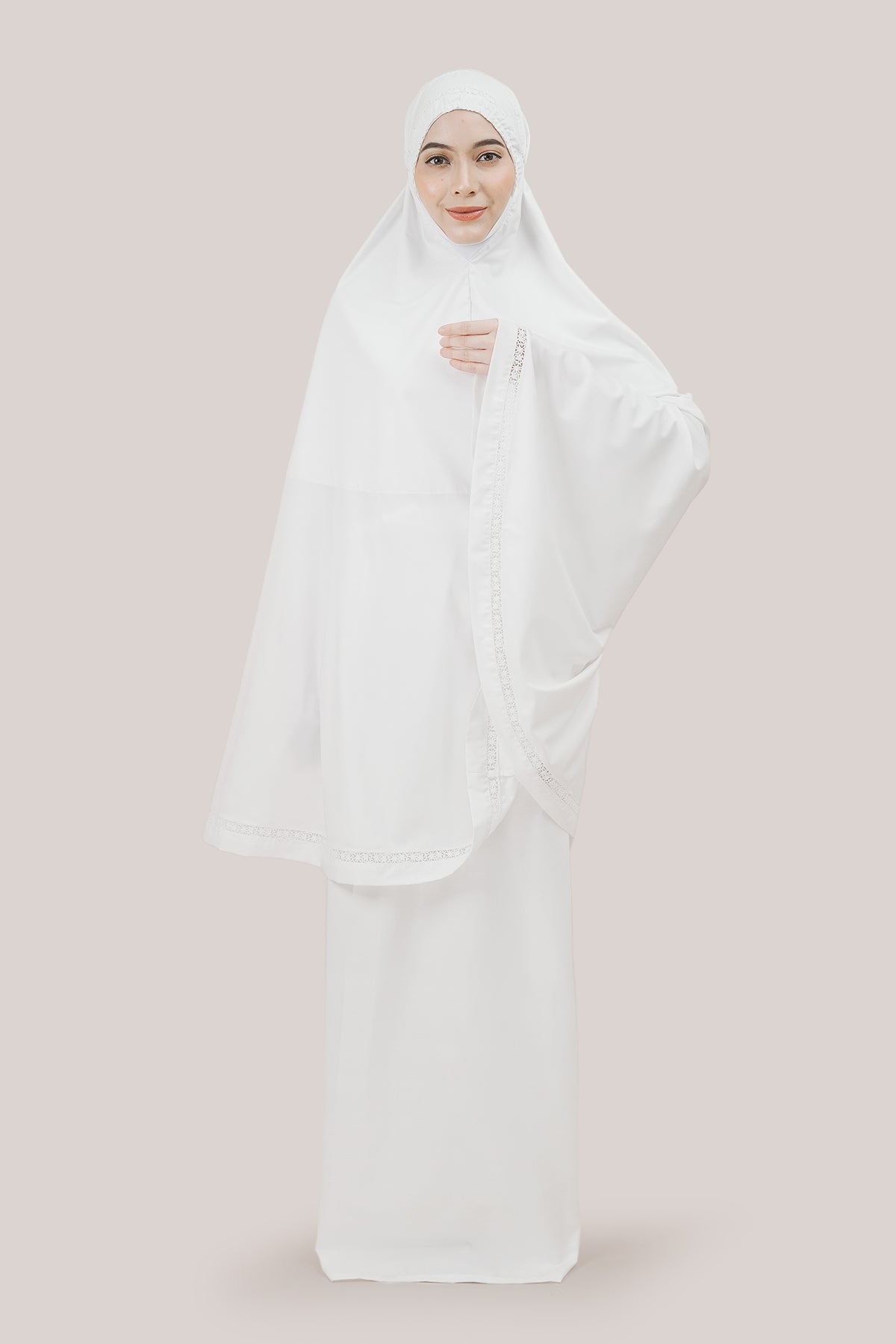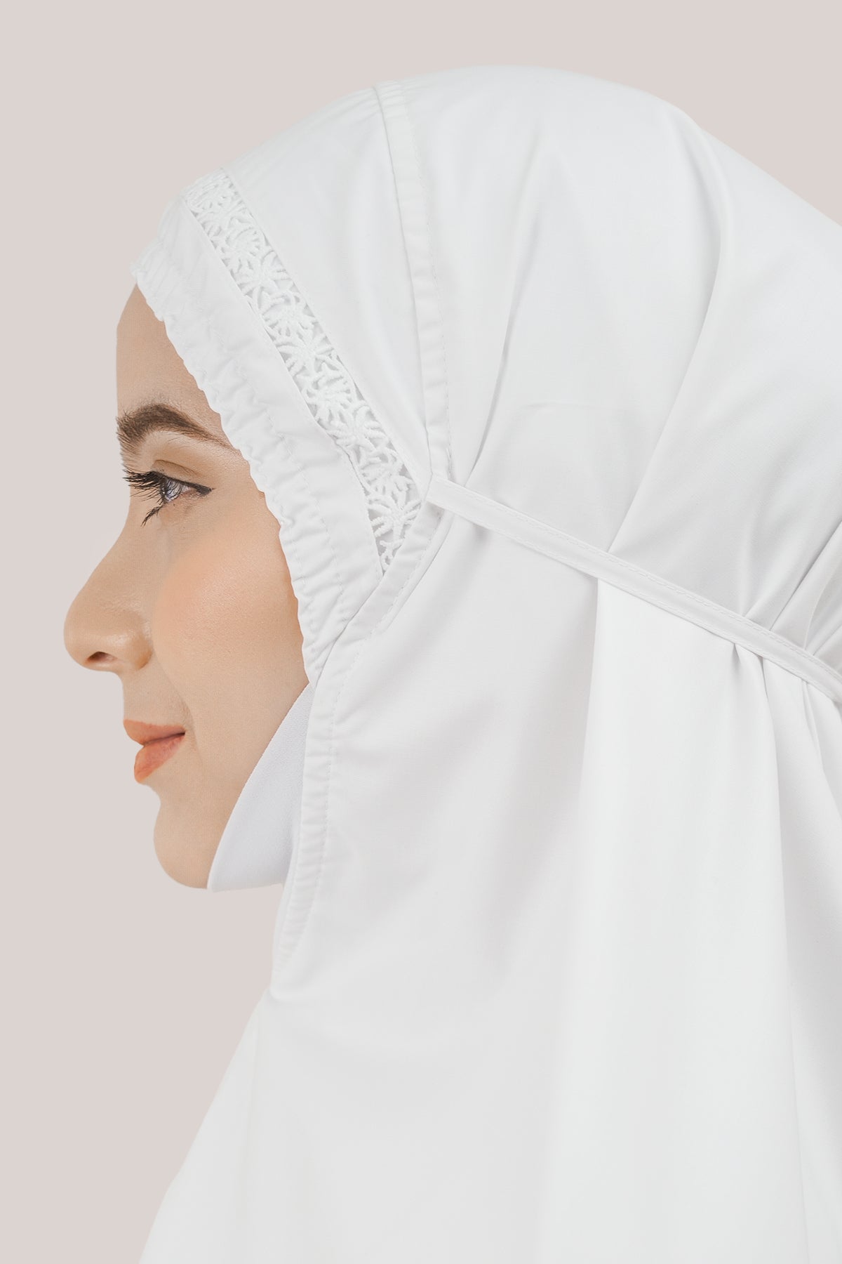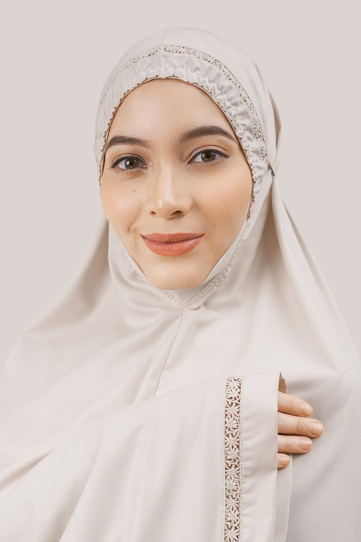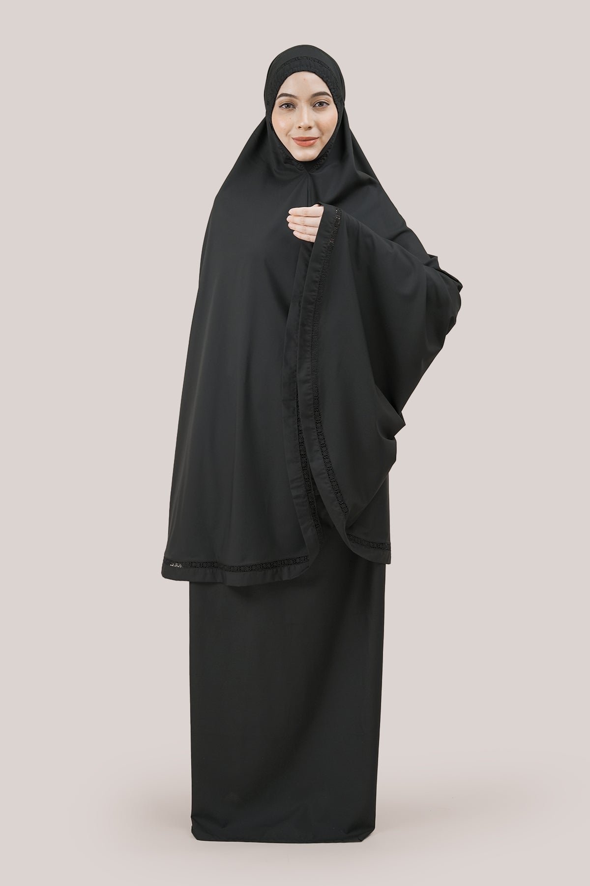 Made from Khadijah Basic Fine (KBF) fabric, Modish Delila is breathable, and twice as soft for ultimate comfort. Designed with intricate Mughal-inspired lace featuring a neat Classic facelook with a secure fit, ensuring both beauty and confidence in every prayer.