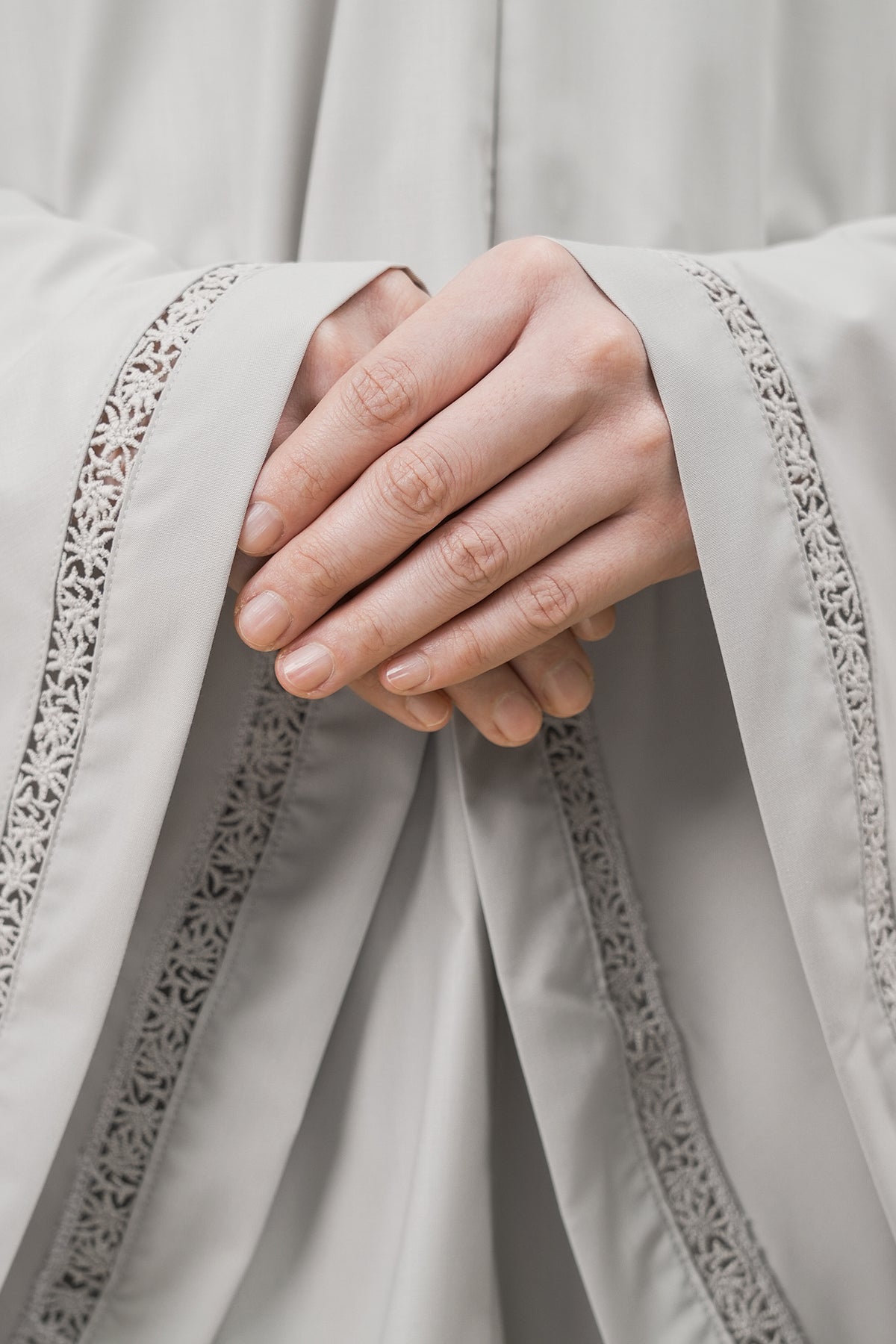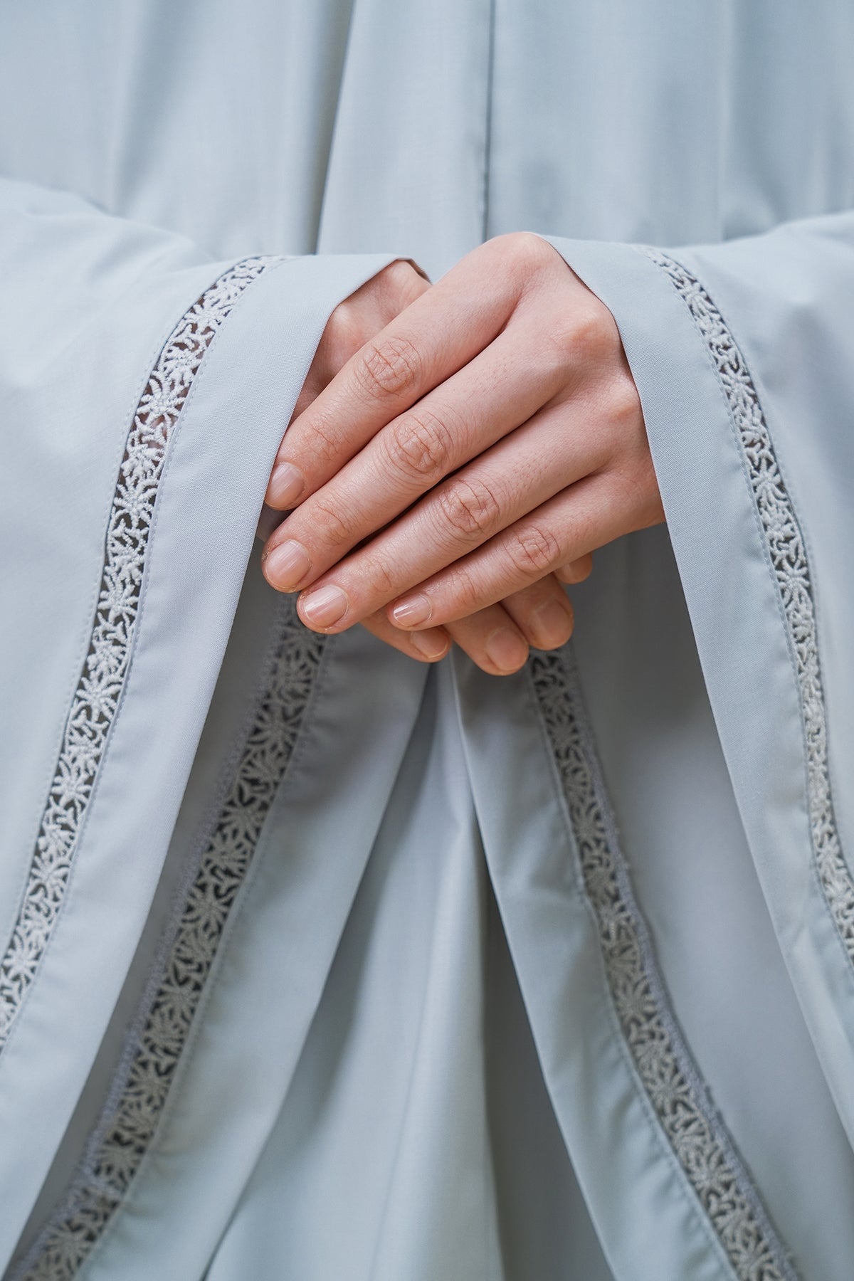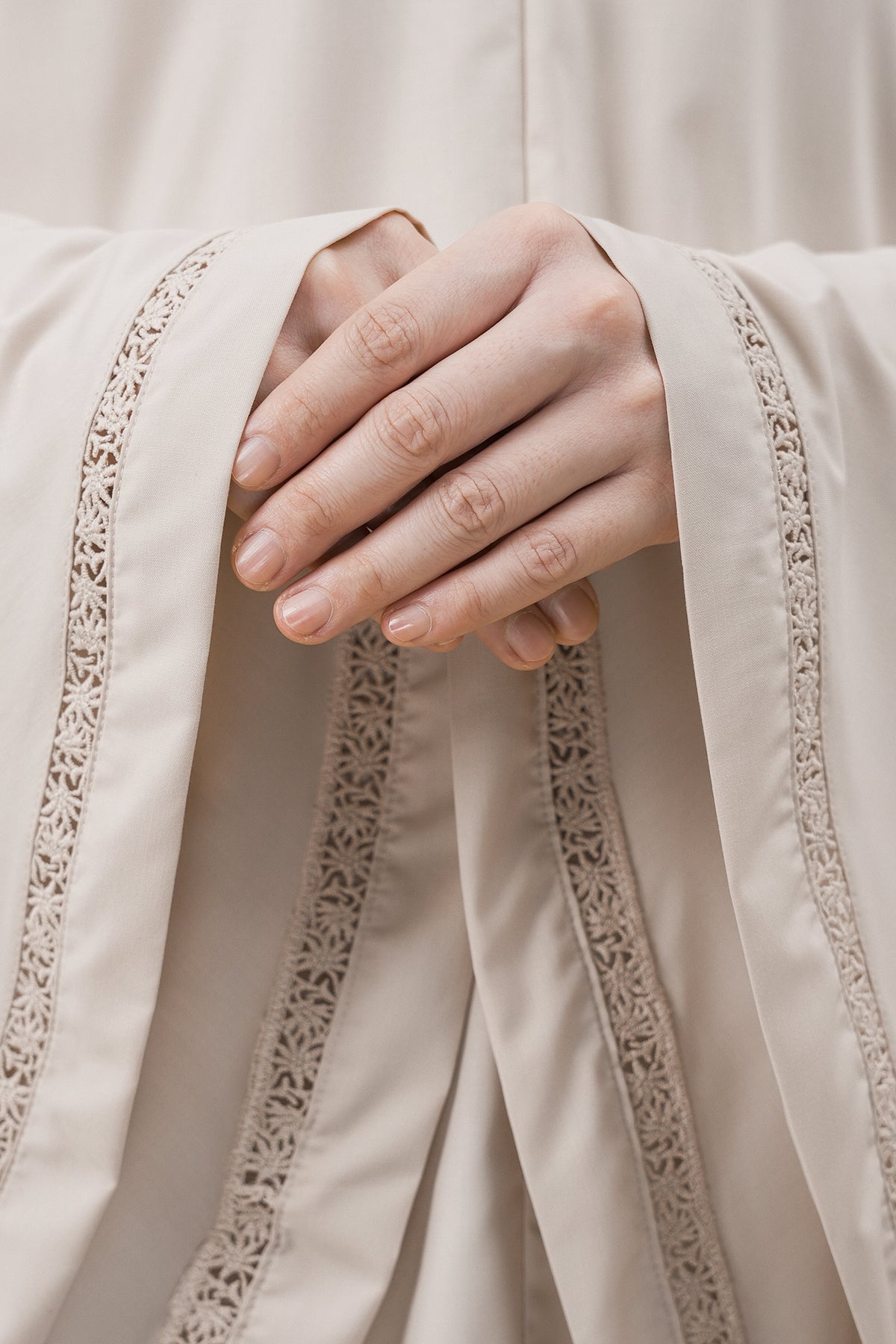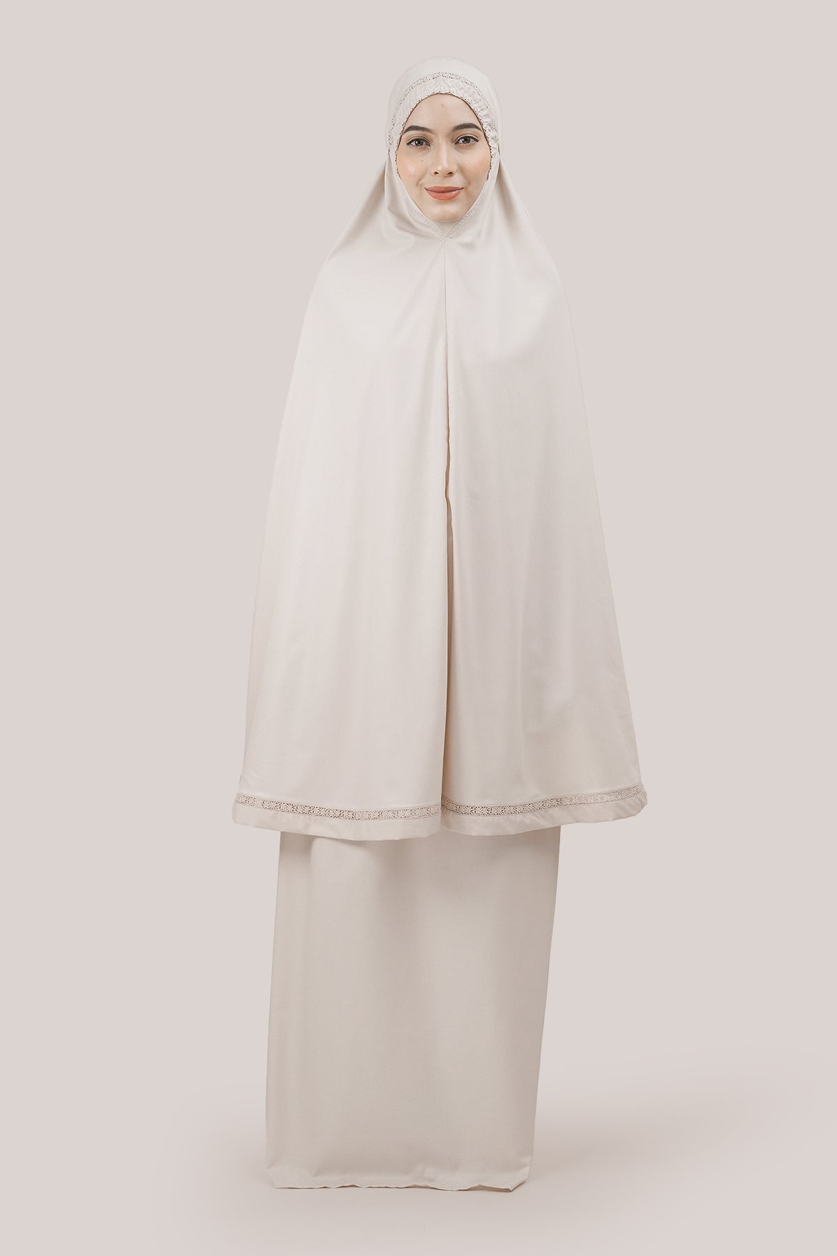 Made from Khadijah Basic Fine (KBF) fabric, Modish Delila is breathable, and twice as soft for ultimate comfort. Designed with intricate Mughal-inspired lace featuring a neat Classic facelook with a secure fit, ensuring both beauty and confidence in every prayer.