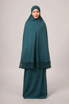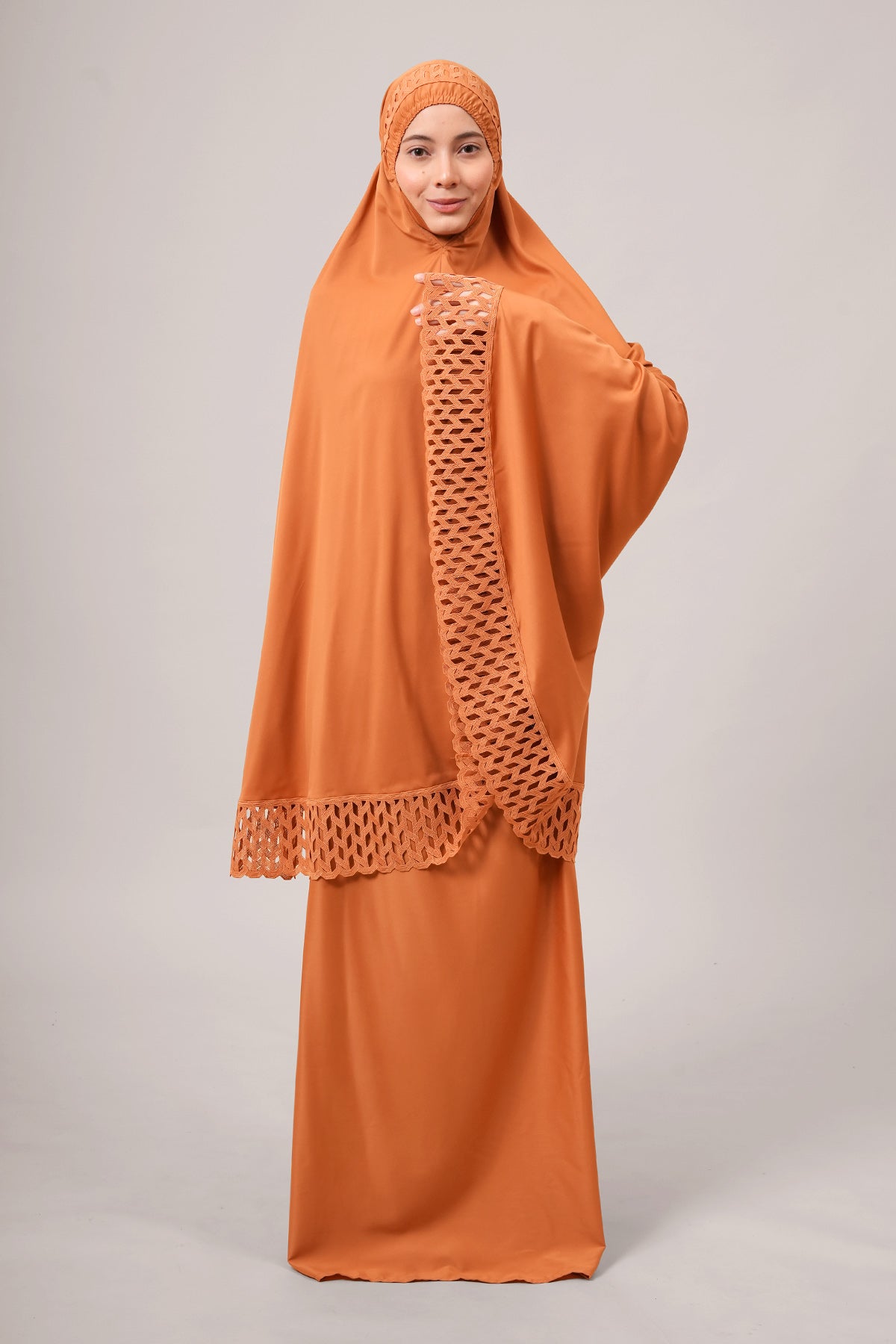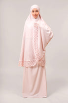 Introducing Khadijah Ultra Comfy Fine (KUF+) – a soft, comfortable, and practical telekung. Made from fabric as soft as a baby’s skin, it has a new stretchable chin pad that stays in shape, doesn’t slip, and feels smooth. The head part has padded elastic that’s gentle on the forehead. It features strong, beautiful guipure lace and wide ties for a secure fit. The fabric is long-lasting, doesn’t wrinkle easily, and keeps its color after washing. Inspired by simple, neat lines, Bushra brings a sense of peace, beauty, and joy in worship.