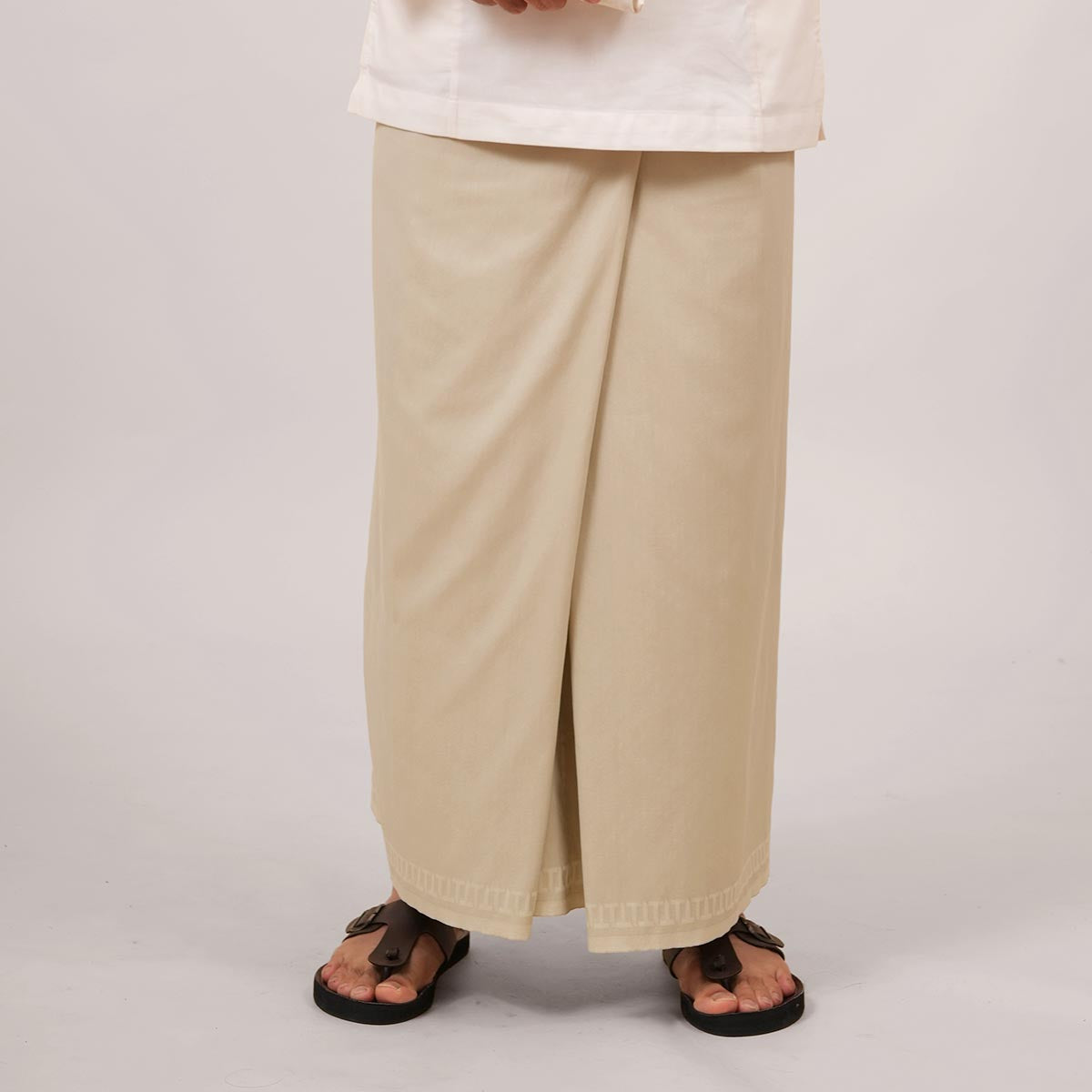 The Renaissance (Rena) & An-Nafees Jacquard Pelikat is made from 70% polyester and 30% viscose, featuring a modern jacquard texture inspired by the Renaissance theme. Designed with woven motifs and the signature “T” logo at the head of the kain, it reflects TEMAN’s exclusive identity. The elegant design makes it suitable to be worn as a samping with Baju Melayu. Each piece also comes with a canvas drawstring pouch for convenient storage, combining style and practicality in one.