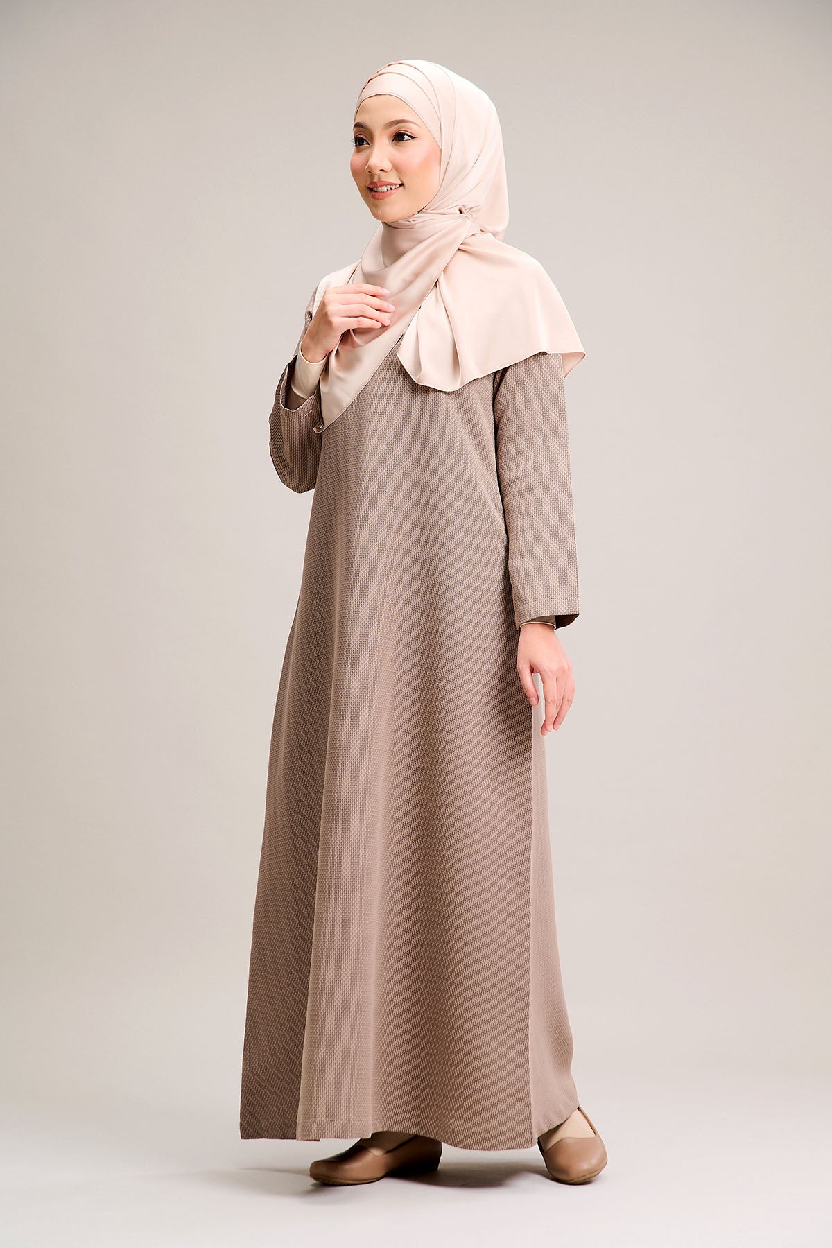 Made from premium fabric with an attractive pattern that is breathable, non-see-through, and easy to maintain, the Airuz Jubah features practical pockets and a loose fit that doesn't cling to the body. Its wrinkle-resistant and quick-drying properties ensure long-lasting wear.