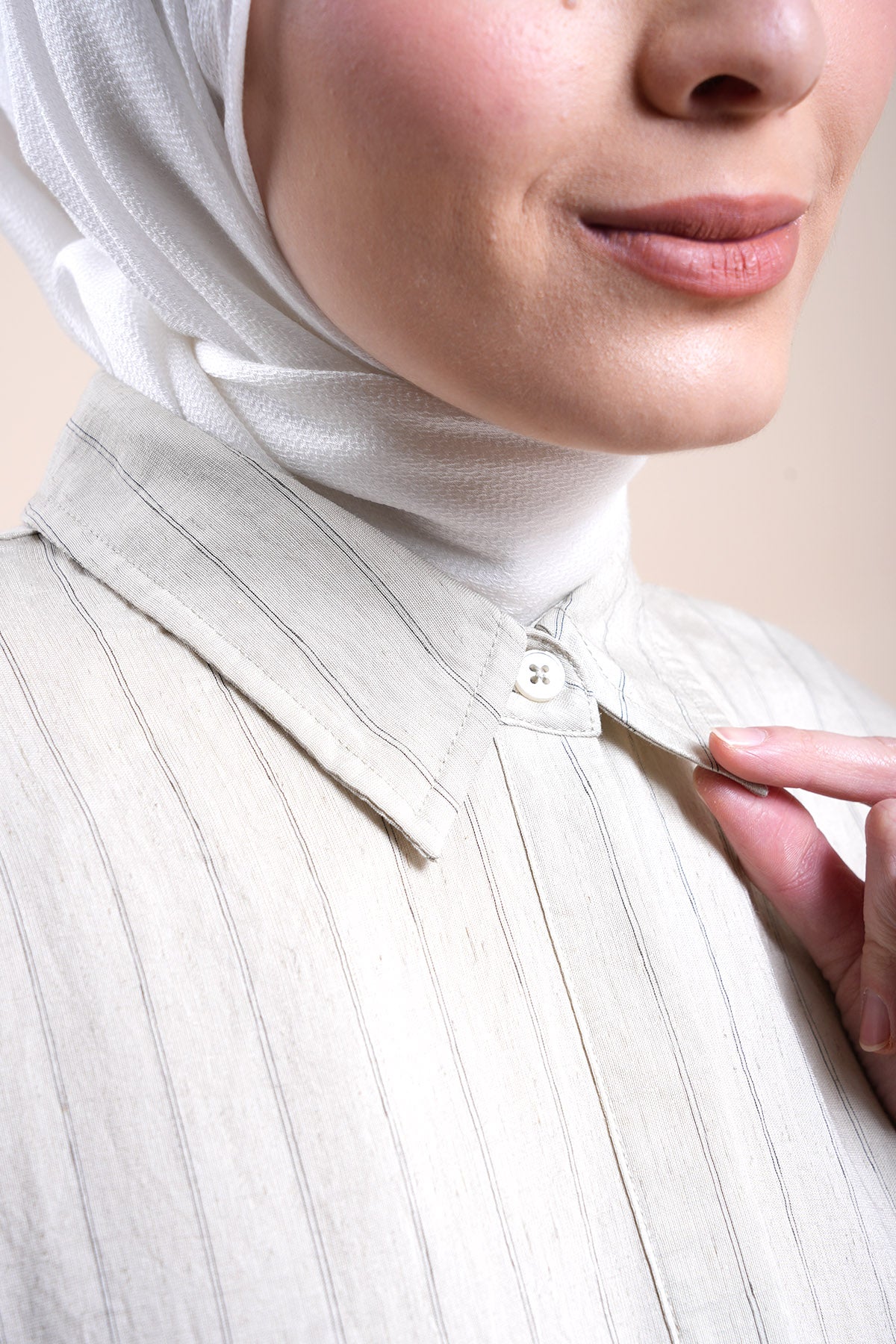 Constructed from 68% Rayon, 24% Nylon, 6% Linen, and 2% Polyester, its lightweight composition ensures maximum comfort throughout the day. The sleek silhouette features a buttoned front and cuffed sleeves, allowing for ease of wear while maintaining an elegant drape, perfect for formal occasions or casual outings.