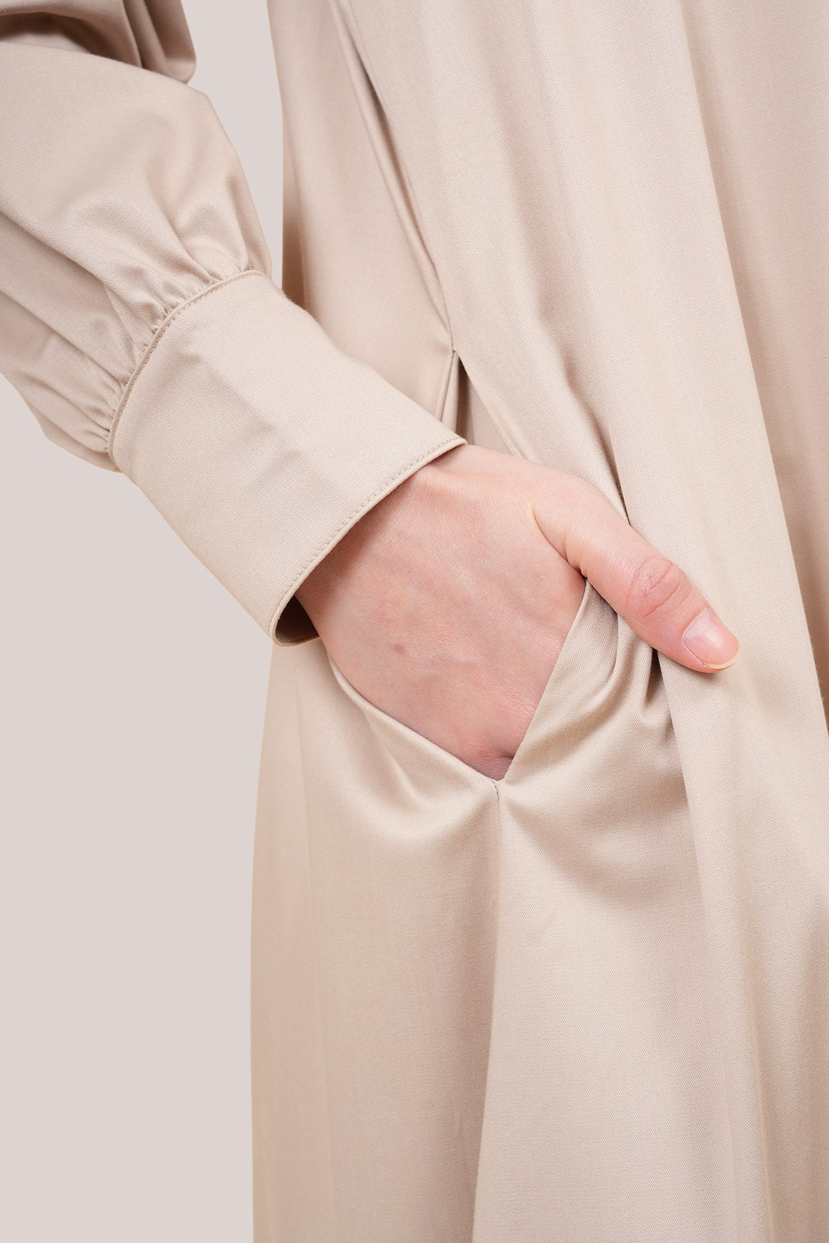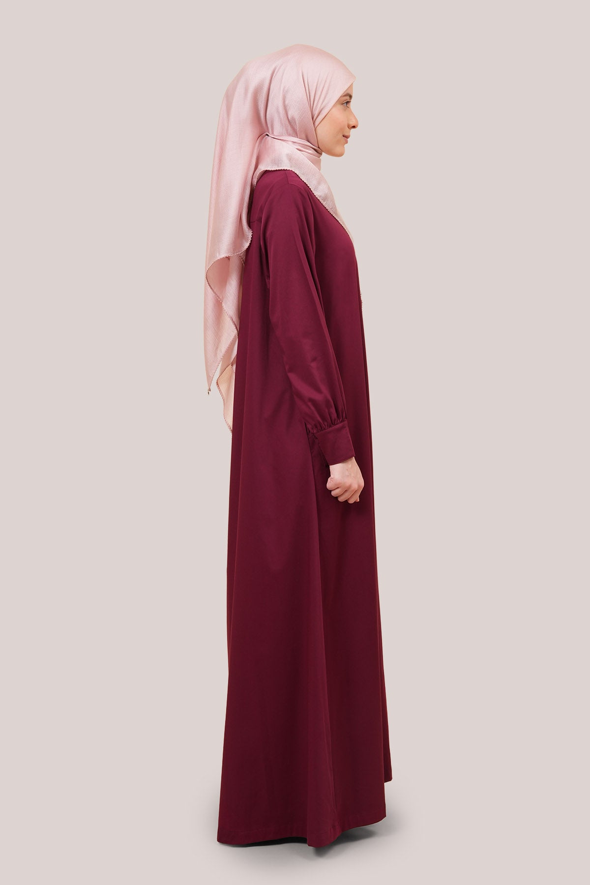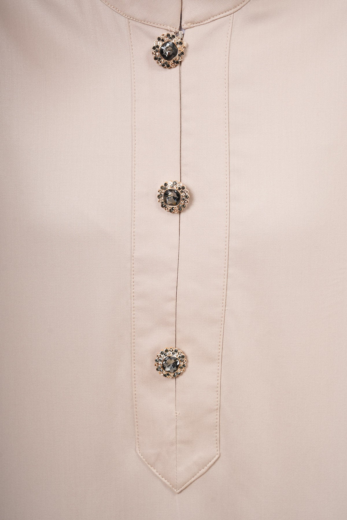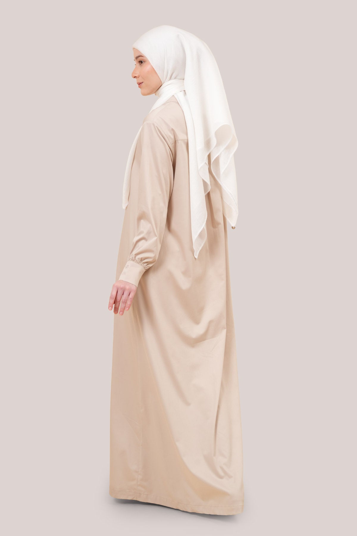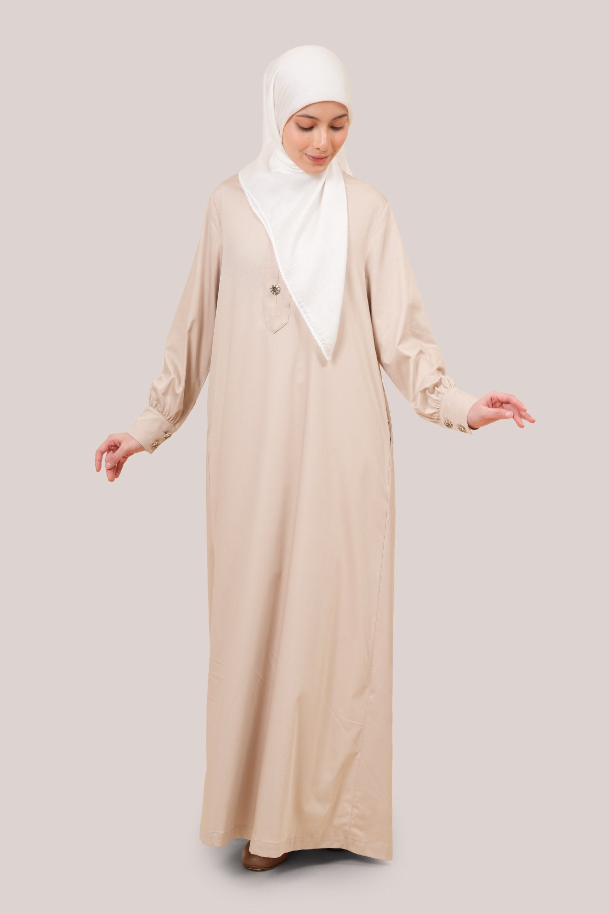 Made from a mix of natural bamboo fiber, anti-pilling cotton, and a touch of spandex, this outfit feels soft, cool, and light on the skin—perfect for hot weather. The breathable material keeps you comfortable, while the spandex allows easy movement for active daily wear. The fabric is not see-through, making it suitable for modest dressing. Diamond buttons on the front and cuffs add a neat and elegant touch. It also features a front zip for easy wearing, side pockets for small items, and cuff buttons that make it easy to roll up the sleeves, especially for wudhu.
