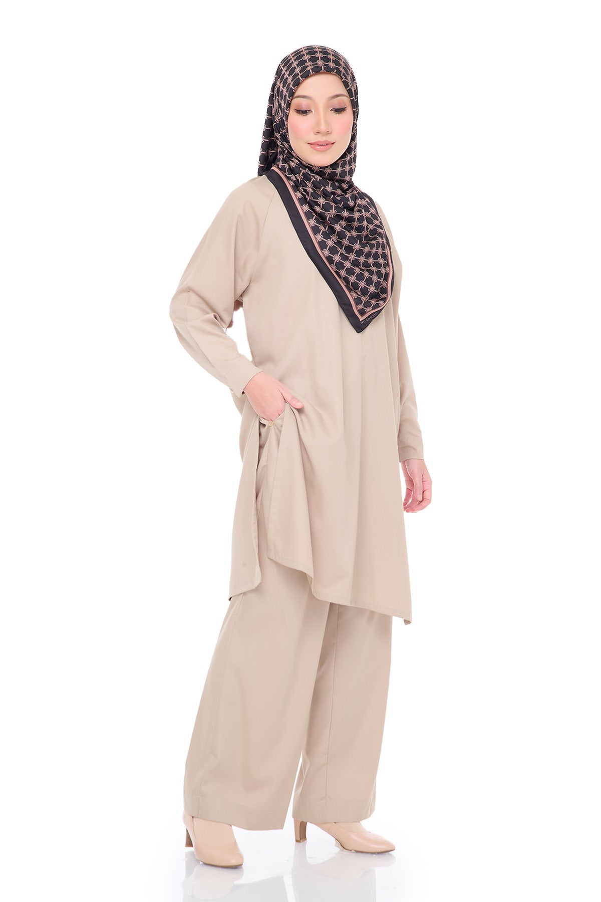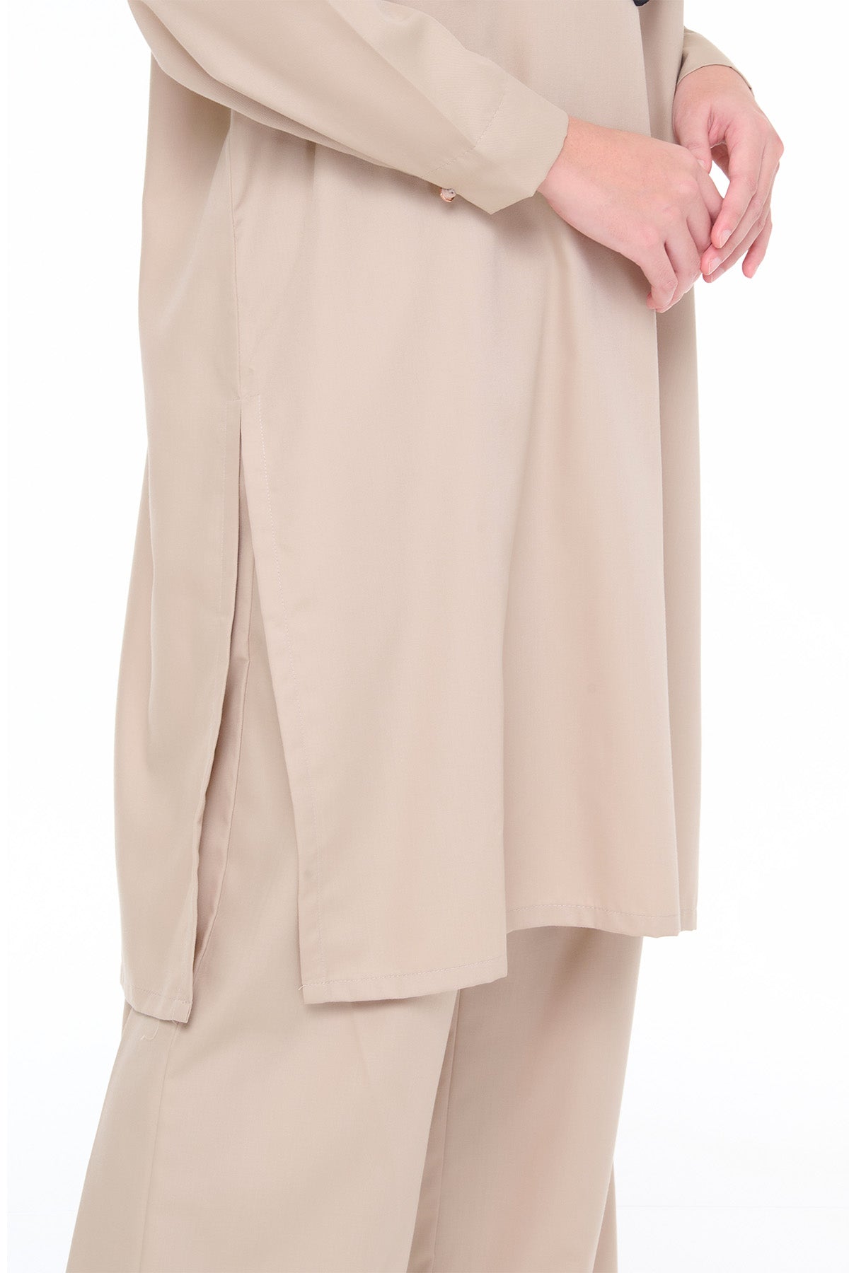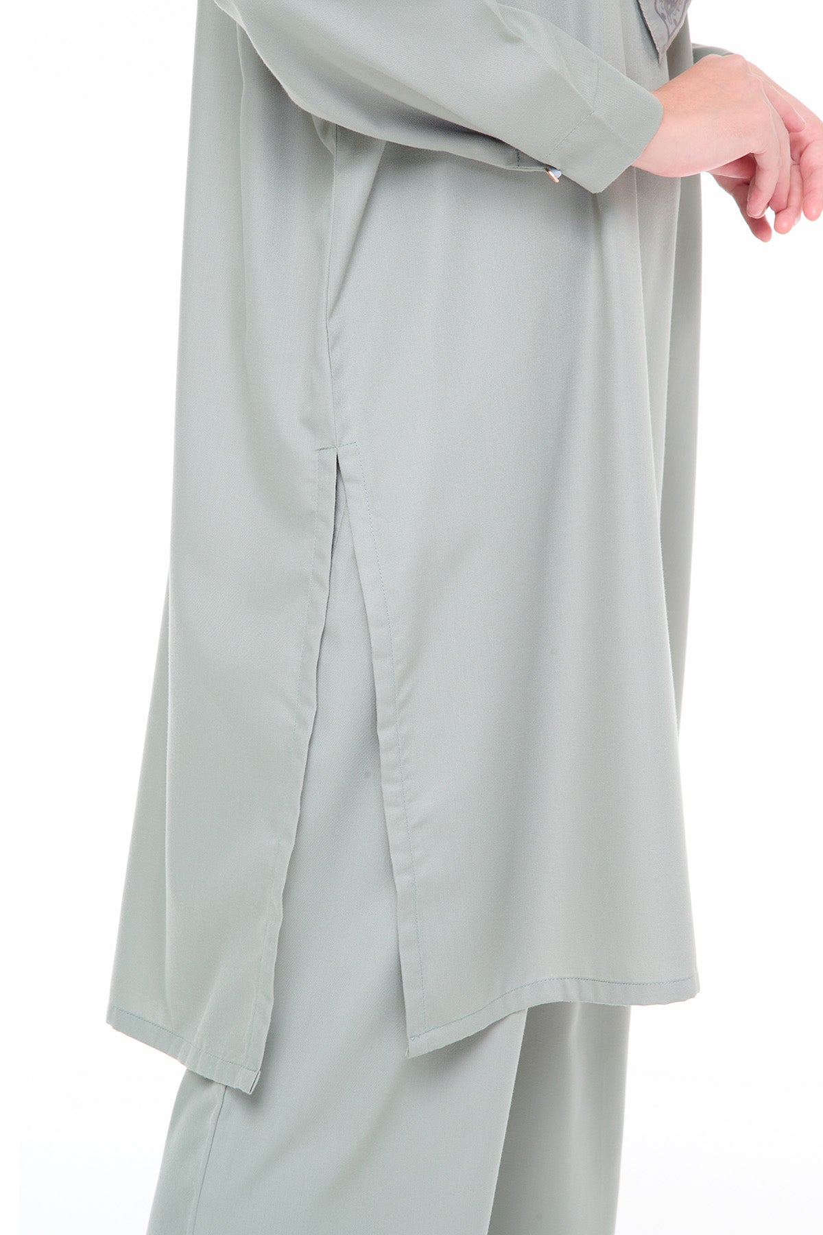 Made from superior-grade polyester, it boasts better ventilation than regular polyester fabric with added comfort and enhanced opaqueness. The soft, wavy drape creates a graceful look without revealing body shape. The top features split sides to ensure easy movement, while the pants come with pockets for a practical touch. Enjoy the convenience of easy maintenance, durability, and quick-drying properties, perfect for various occasions.
