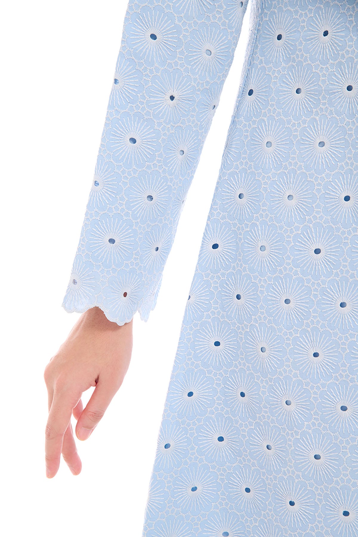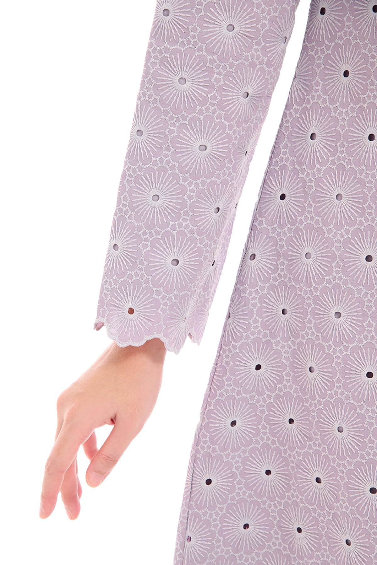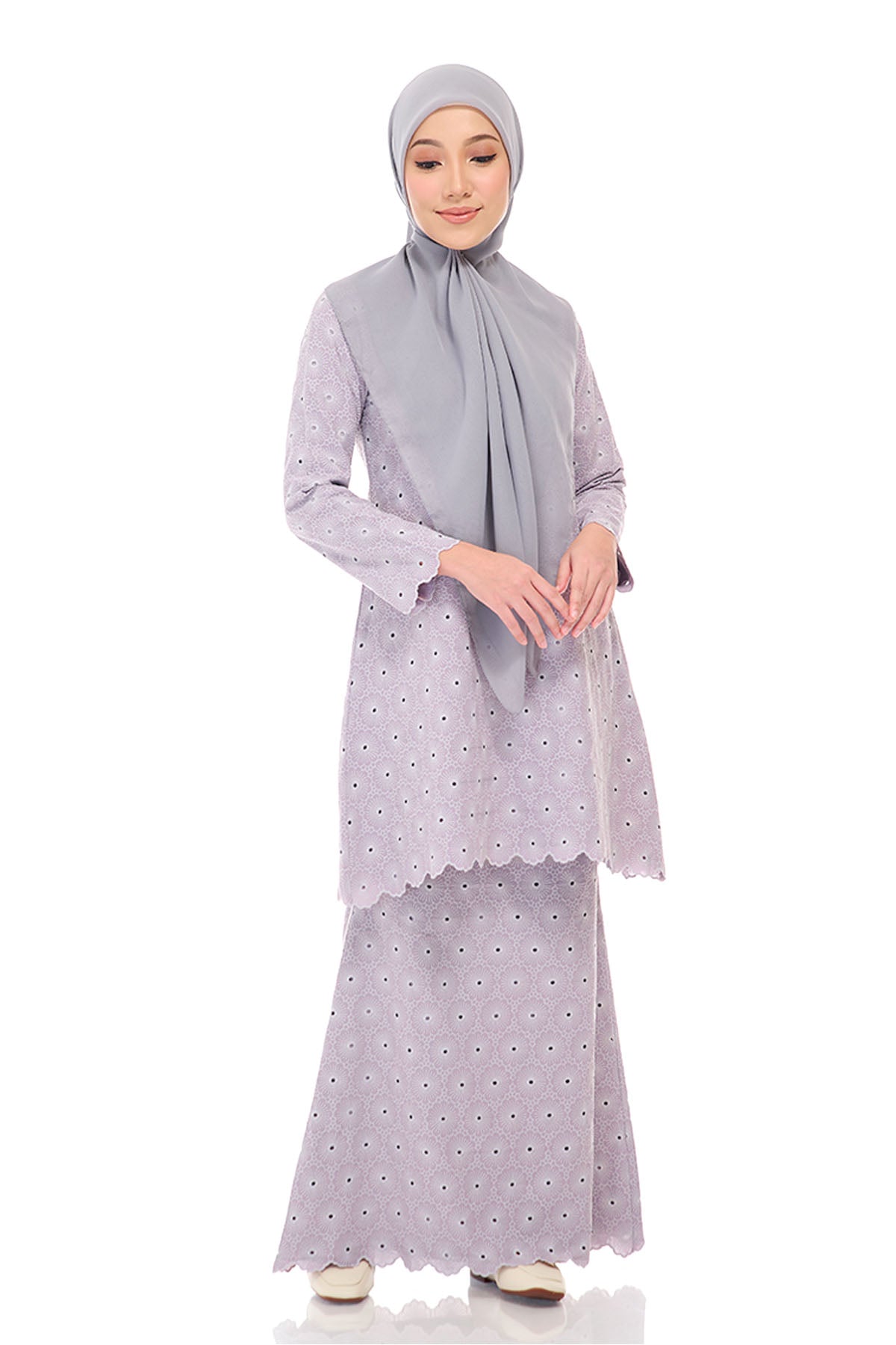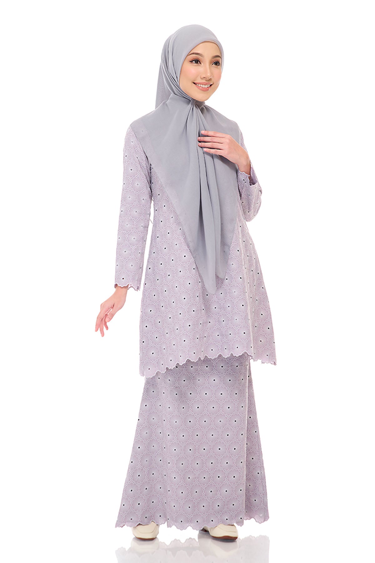 A modern kurung design featuring intricate daisy flower pattern embroidery throughout. Crafted from natural fabric, it offers excellent ventilation, softness, and hypoallergenic properties, perfect for all-day wear. With its loose cut and quick-drying features, it ensures comfort without trapping body heat, while the contrasting coloured thread highlights the floral pattern for a stylish touch.