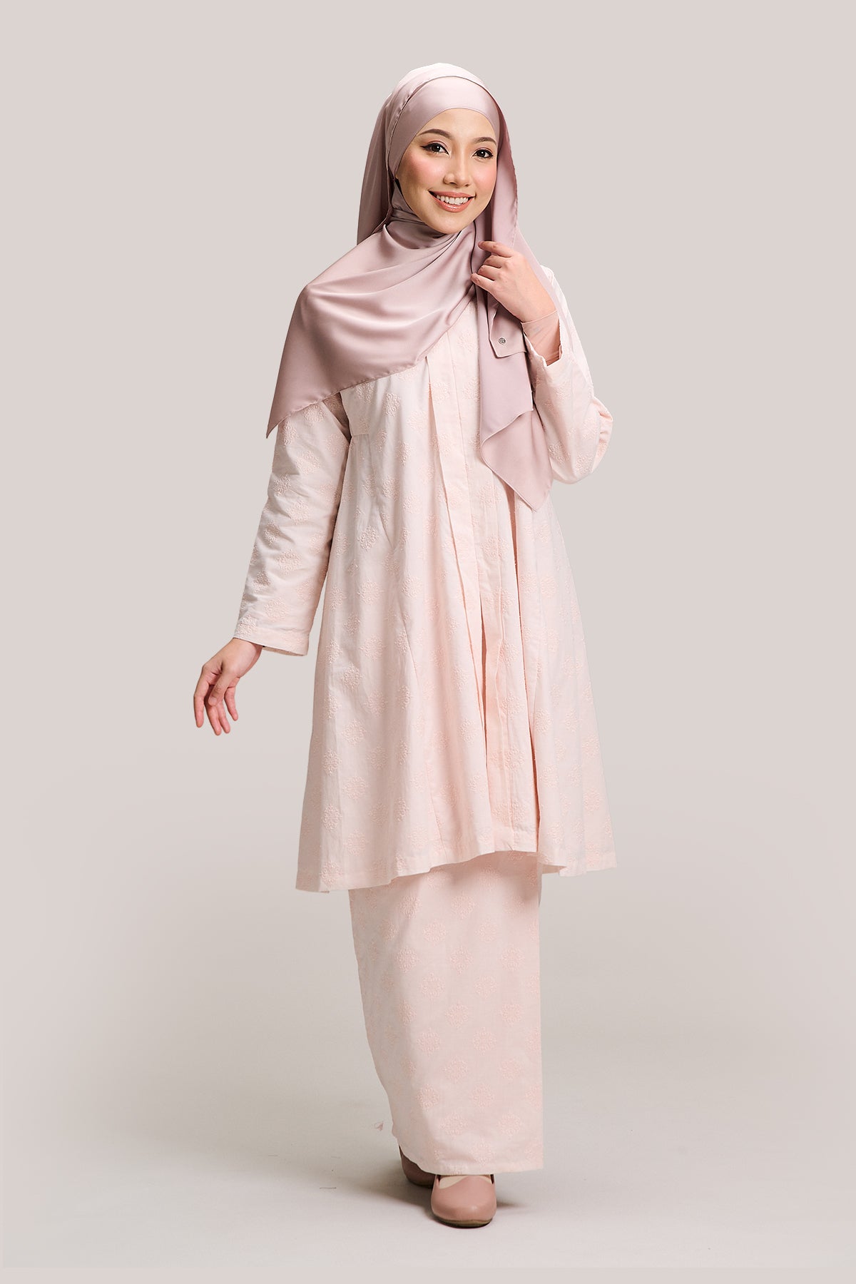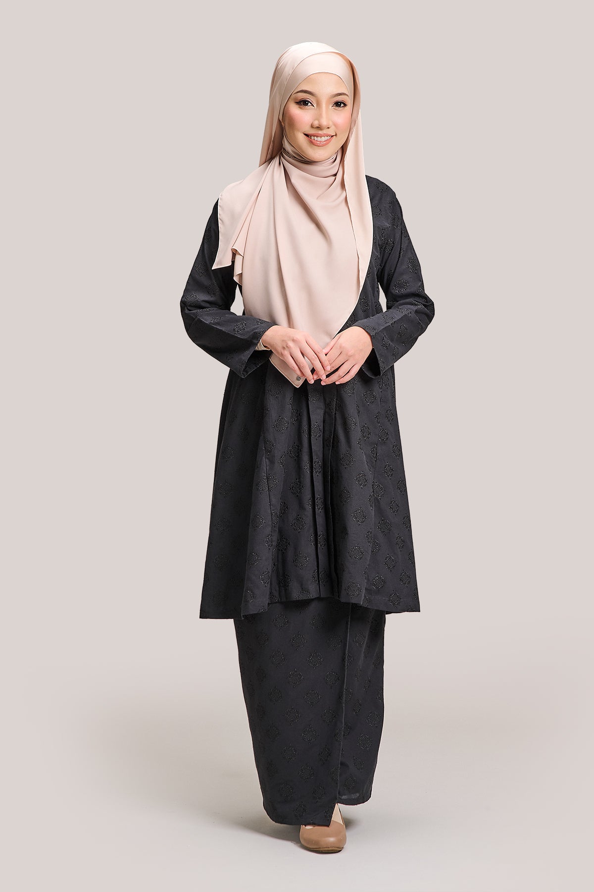 Made from 100% Cotton Allover, the Kirana Kebarung is thoughtfully designed to offer exceptional comfort, breathability, and elegance. This natural fabric is hypoallergenic, soft on the skin, sweat-absorbent, quick-drying, and helps prevent heat buildup, ideal for all-day wear, especially for those with sensitive skin. The set features full embroidery with intricate dokoh bunga motifs across the top and bottom, paired with a matching cotton lining for a seamless, polished look. With its loose kebarung silhouette and classic kain lipat batik design, Kirana Kebarung blends traditional grace with effortless sophistication, while being easy to iron and wrinkle-resistant for everyday practicality.