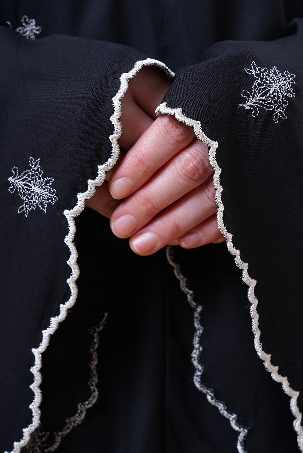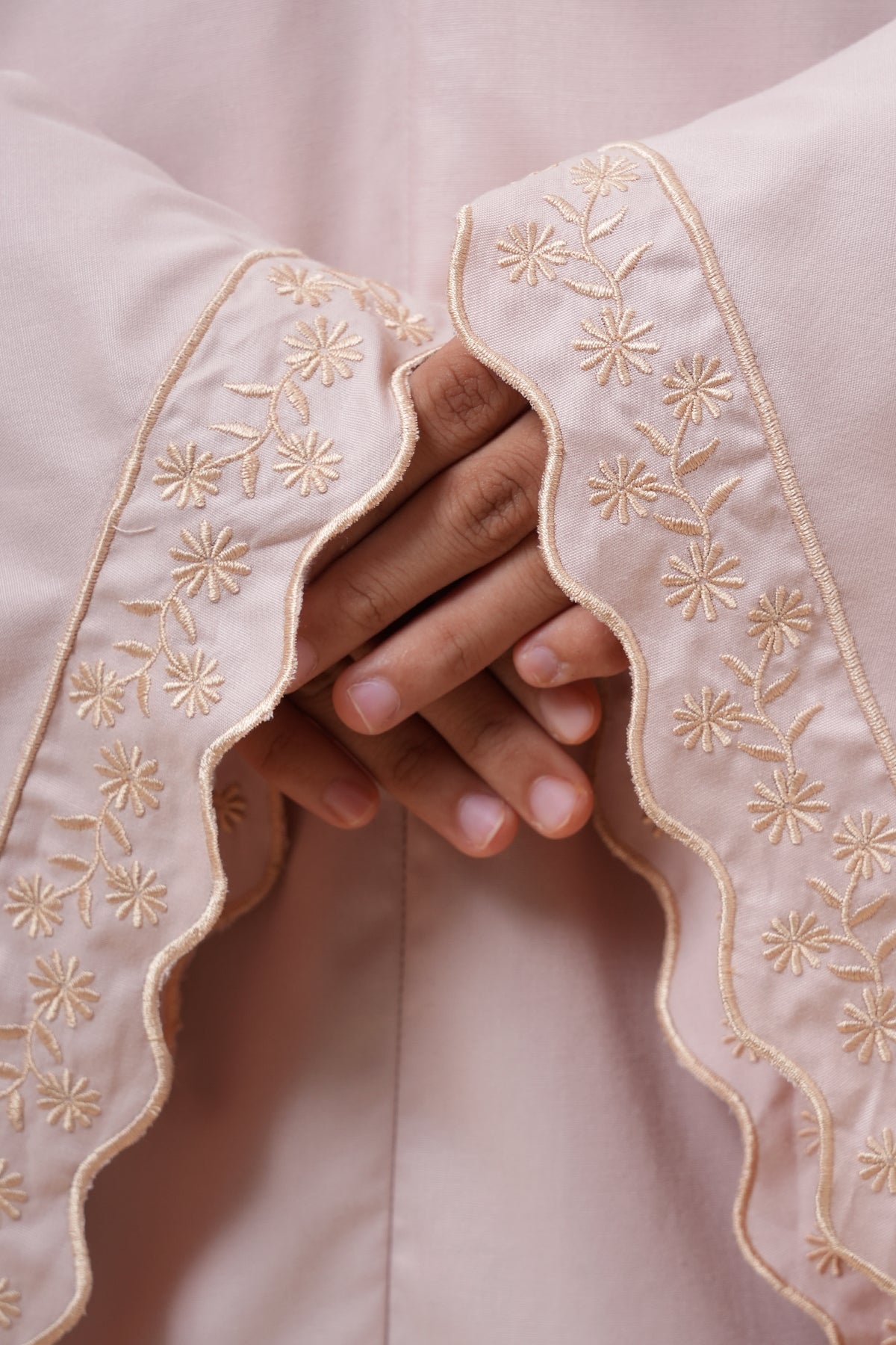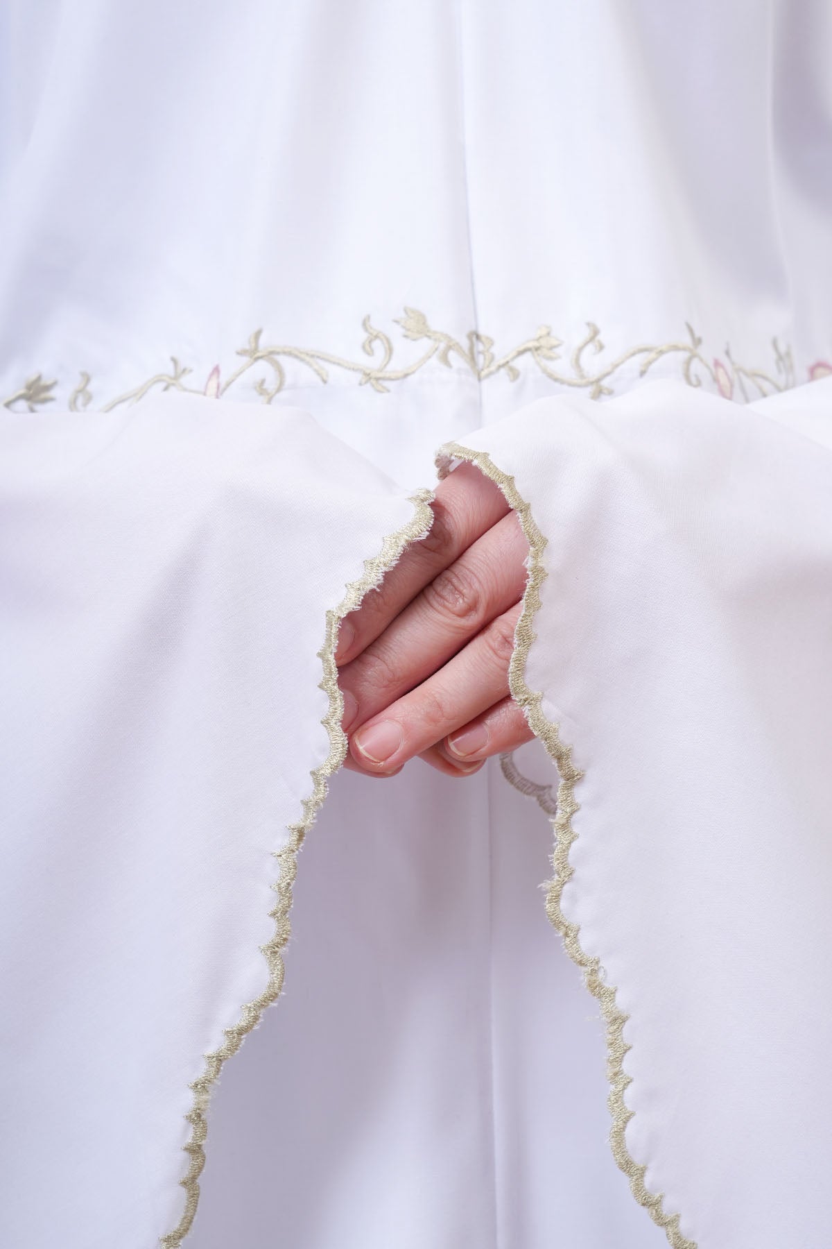 Broderie Anayaa is inspired by the delicate beauty of Cherry Blossom embroidery. Each bloom represents more than just decoration – the left side carries hope, while the right side embodies strength. More than a prayerwear, it is an art piece that speaks without words.