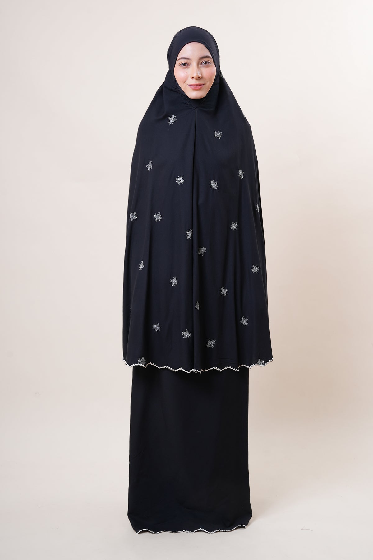 Anayaa is not just a telekung, it is modesty expressed in elegance. The intricate floral embroidery, accentuated with delicate crystals, makes it a prayerwear that radiates grace and femininity - timeless, modest, and beautifully meaningful.