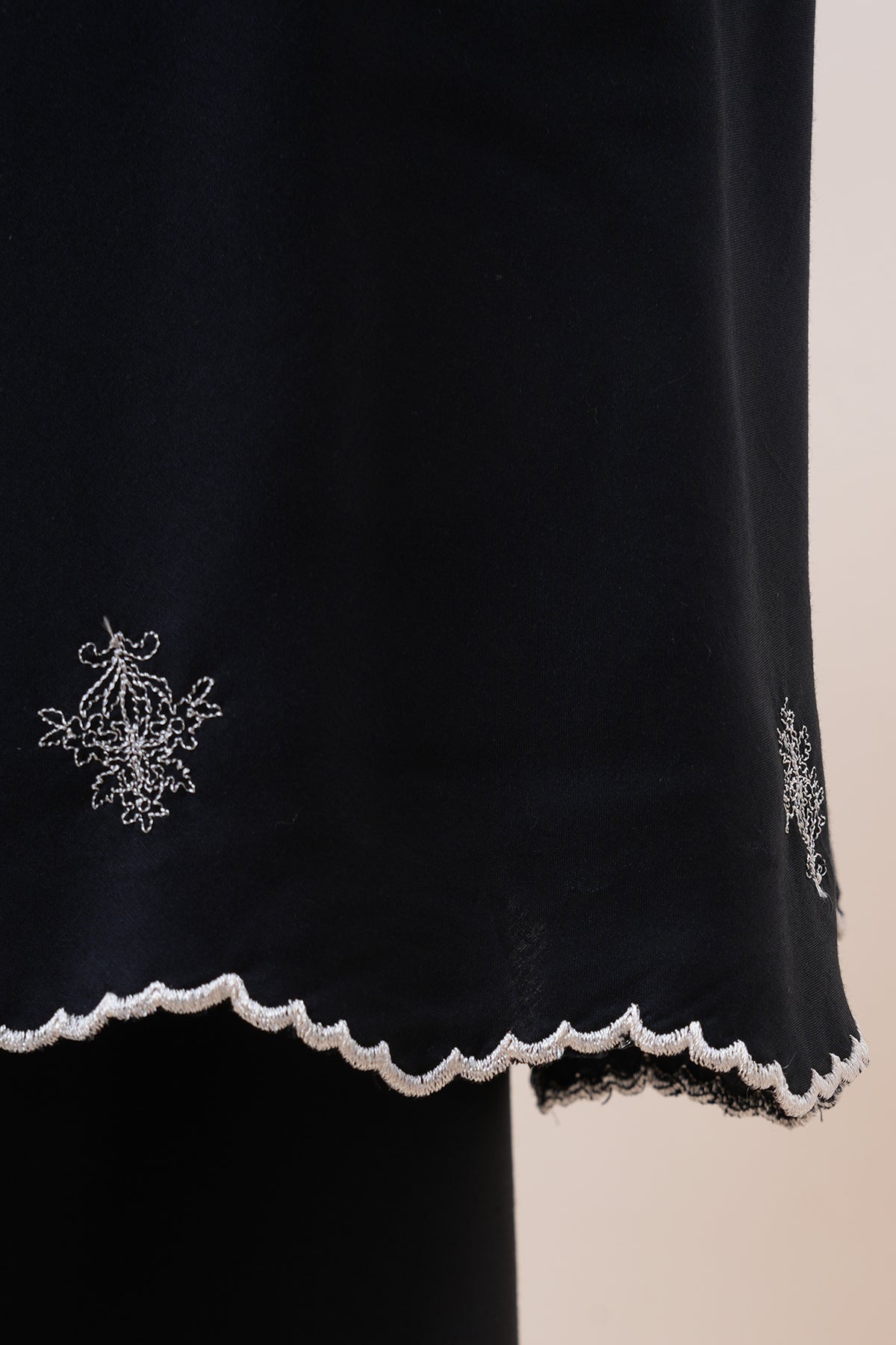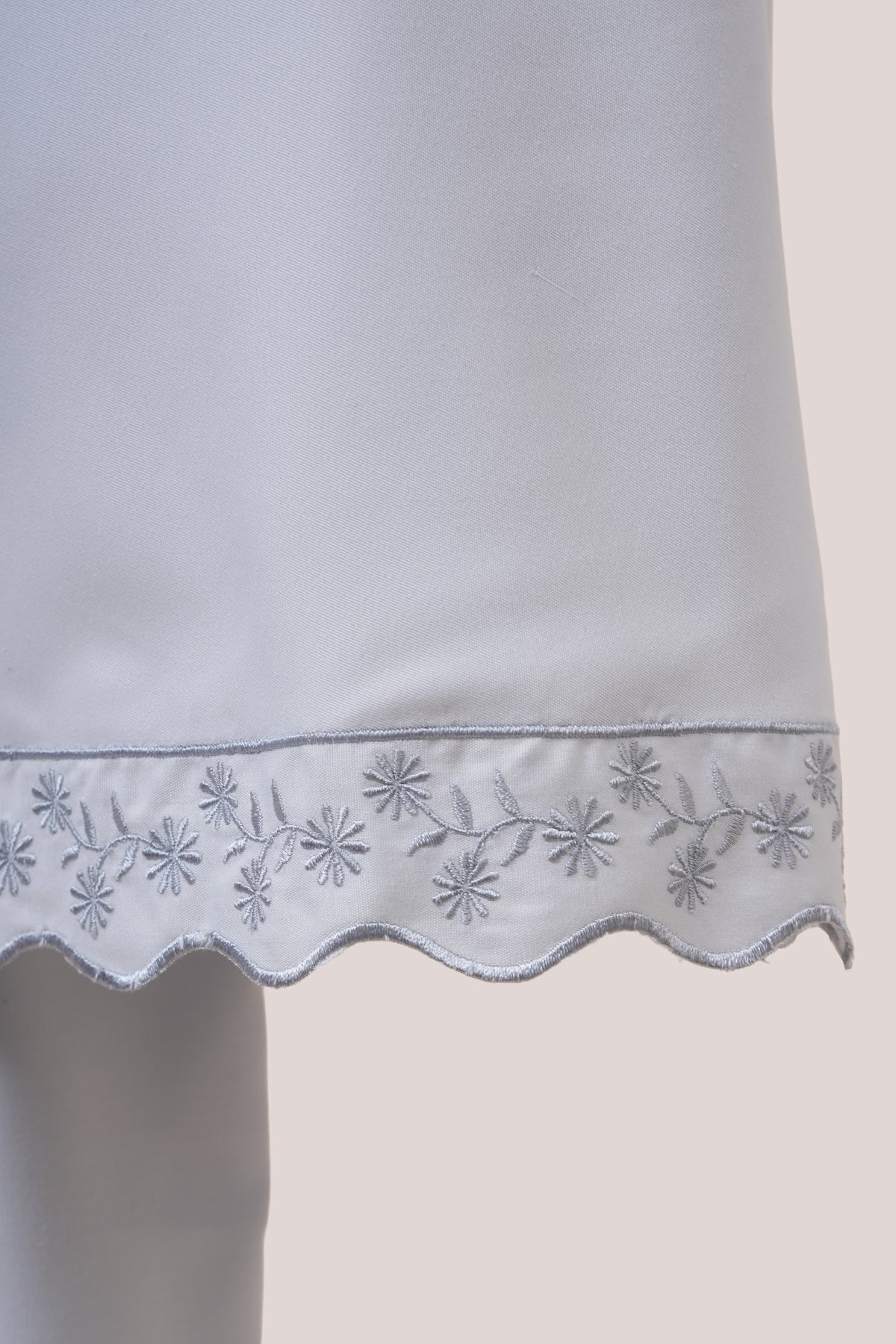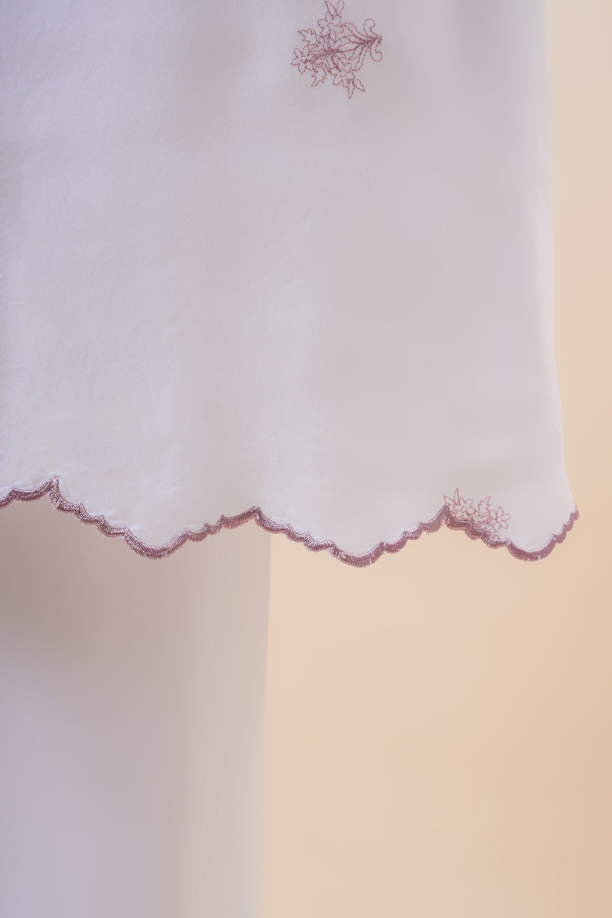 Delicate scalloped embroidery on the upper part adds a feminine, graceful edge to the timeless design.