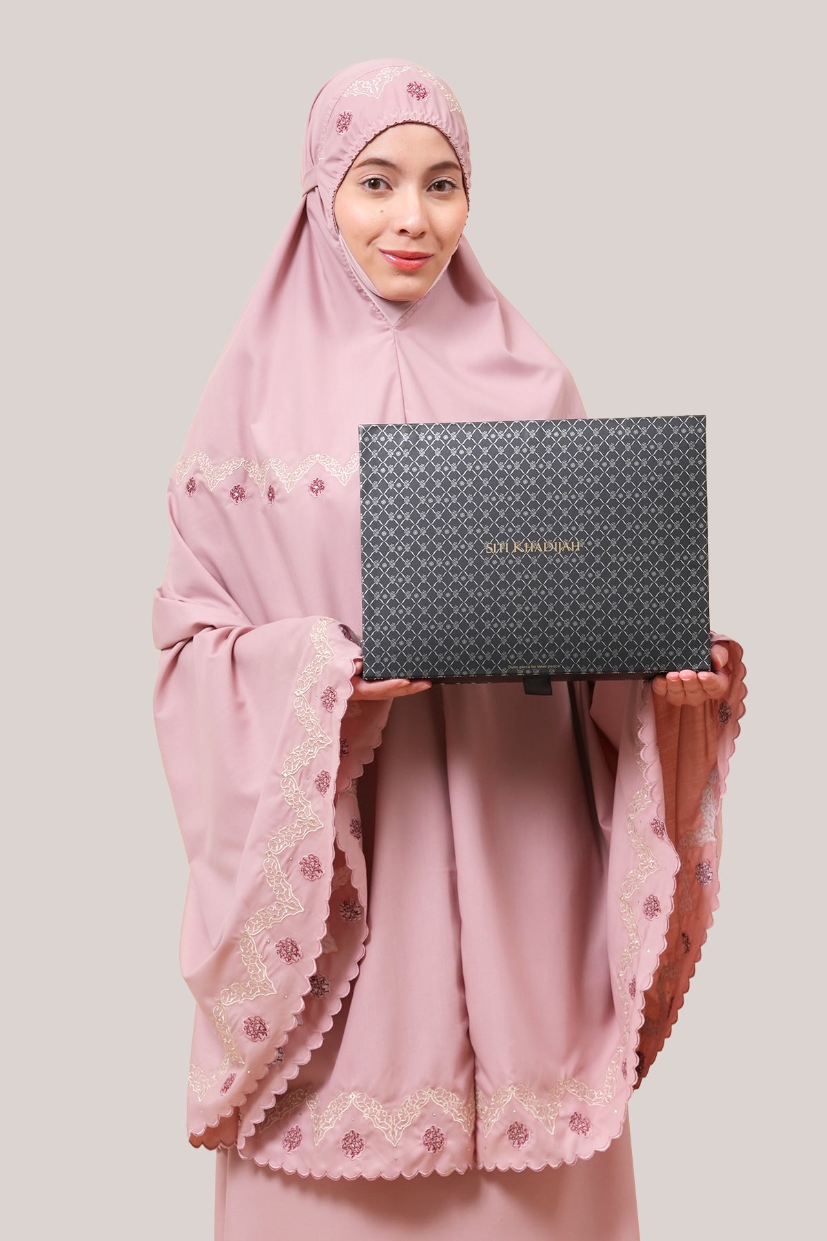 Designed to remain neat and elegant even with daily use, Broderie Rania includes a matching sejadah and easy-care fabrics, making it a practical yet luxurious choice for every Muslimah seeking comfort, style, and devotion.