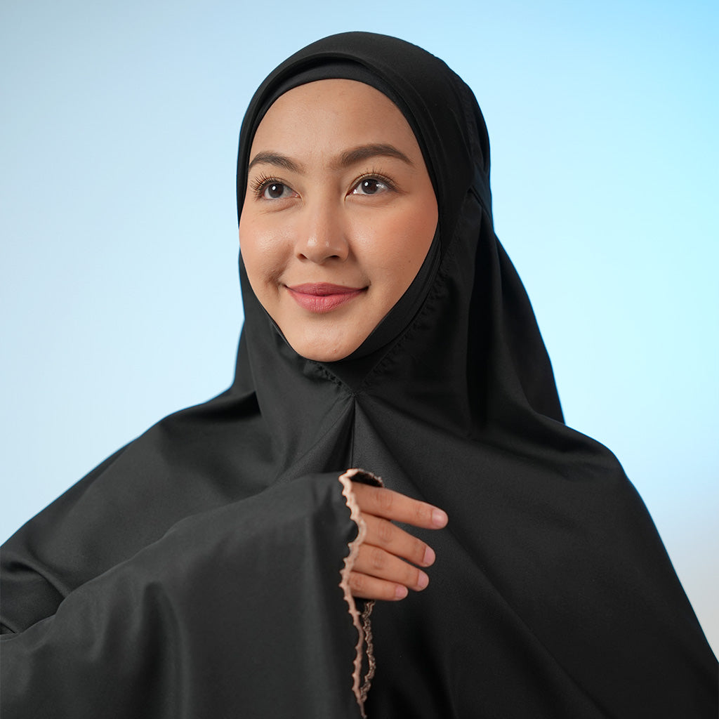Made to fit seamlessly into your daily worship, Broderie Anayaa stays neat and beautiful even with frequent wear. With wrinkle-resistant fabric and a complementary prayer mat, it is a practical choice for every Muslimah seeking both elegance and convenience.