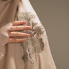 Broderie Rania is designed to bring serenity to your prayers, adorned with swirling Poppy floral embroidery and sparkling crystal accents, a harmonious blend of outer elegance and inner calm.