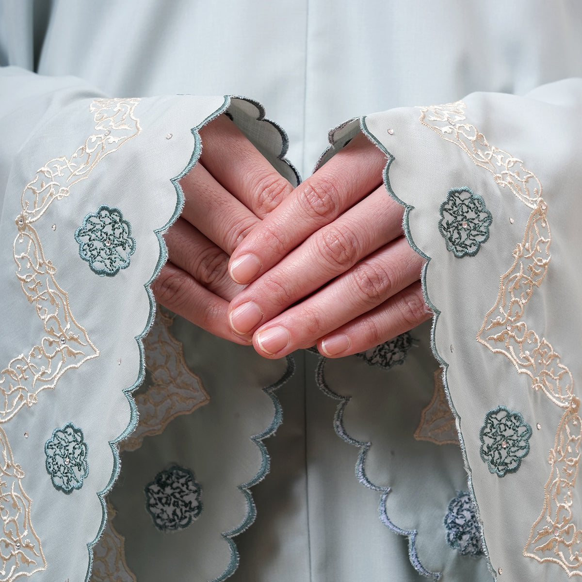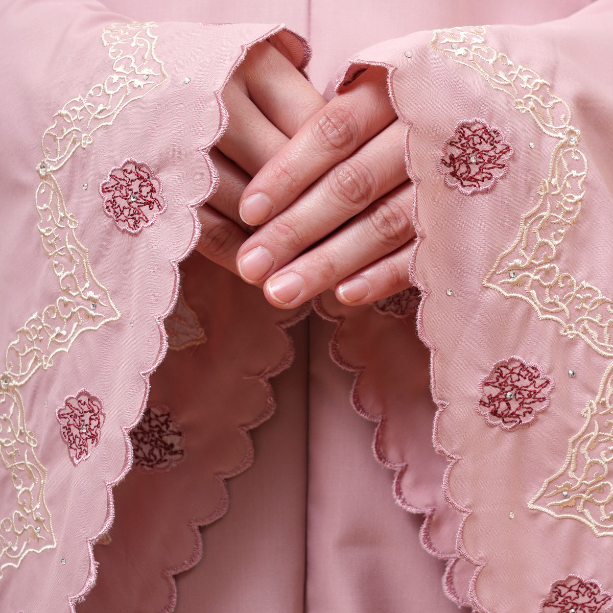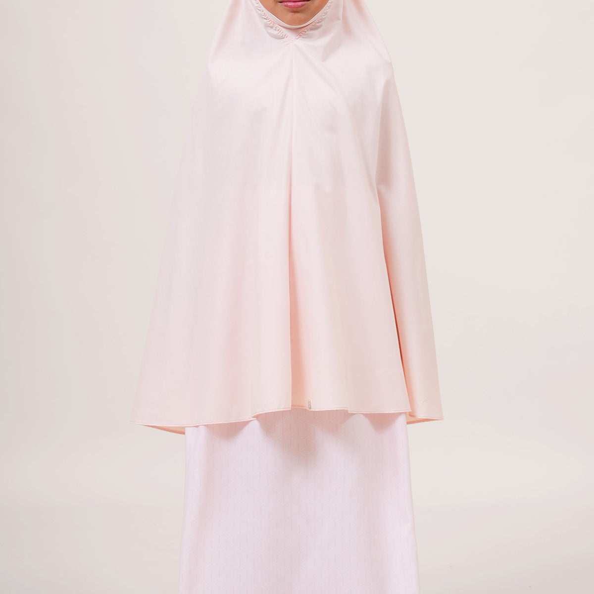 The fine baby seam technique locks the edges in place, enhancing strength and longevity — so your telekung stays beautiful and intact through every wash.