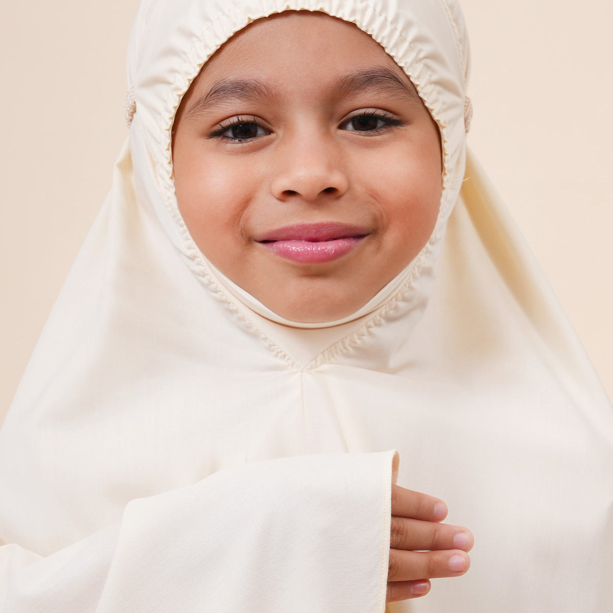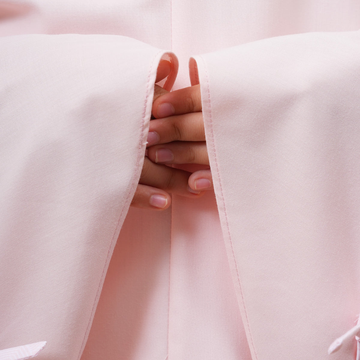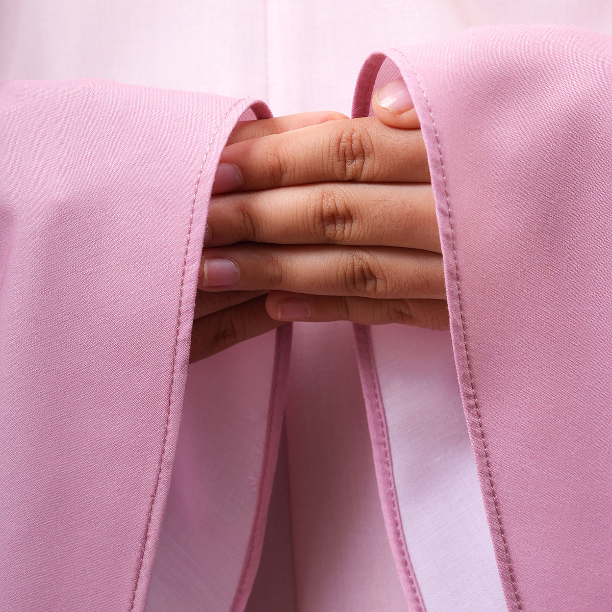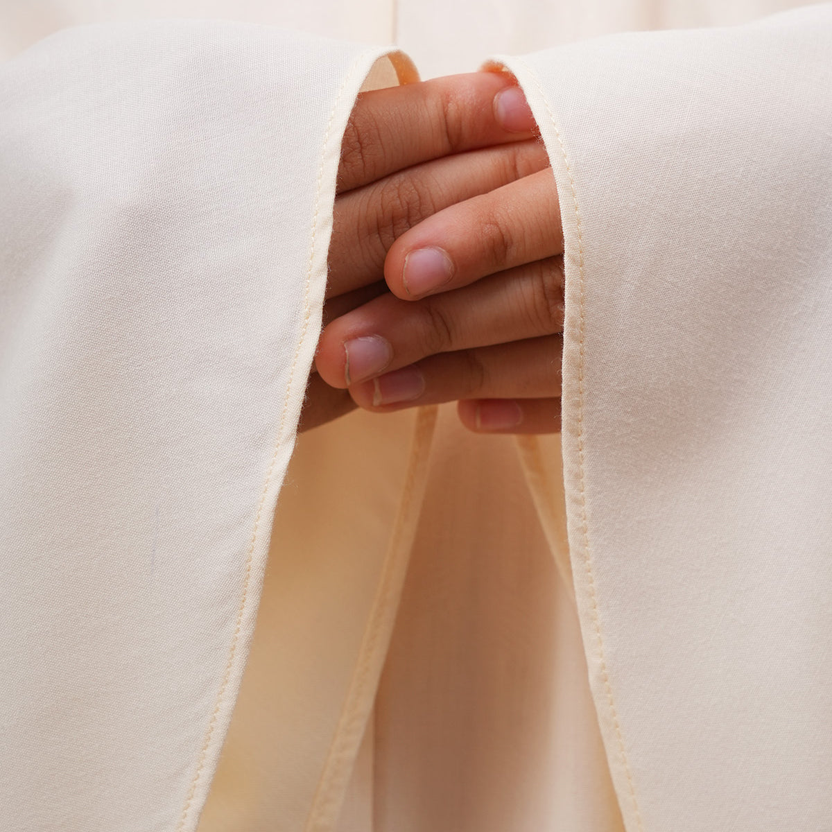 The fine baby seam technique locks the edges in place, enhancing strength and longevity — so your telekung stays beautiful and intact through every wash.