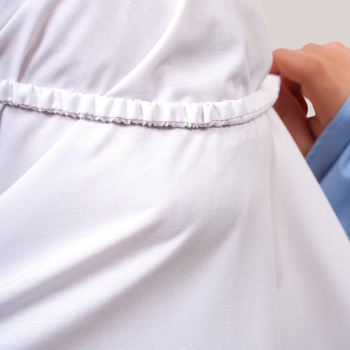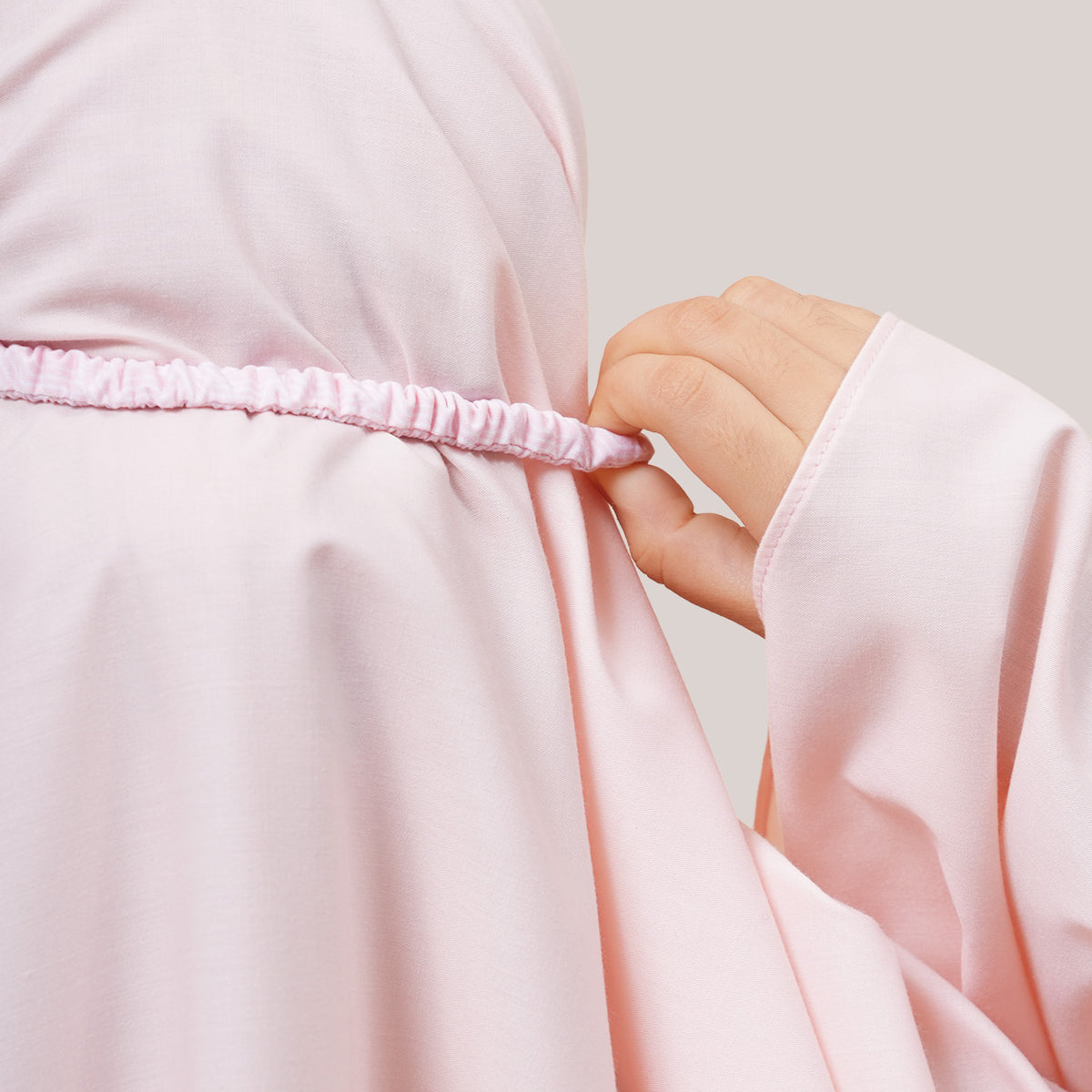 The wide tie strap keeps your telekung securely in place, while the tightly woven fabric ensures it’s not see-through — so you can focus on your prayers with full confidence.