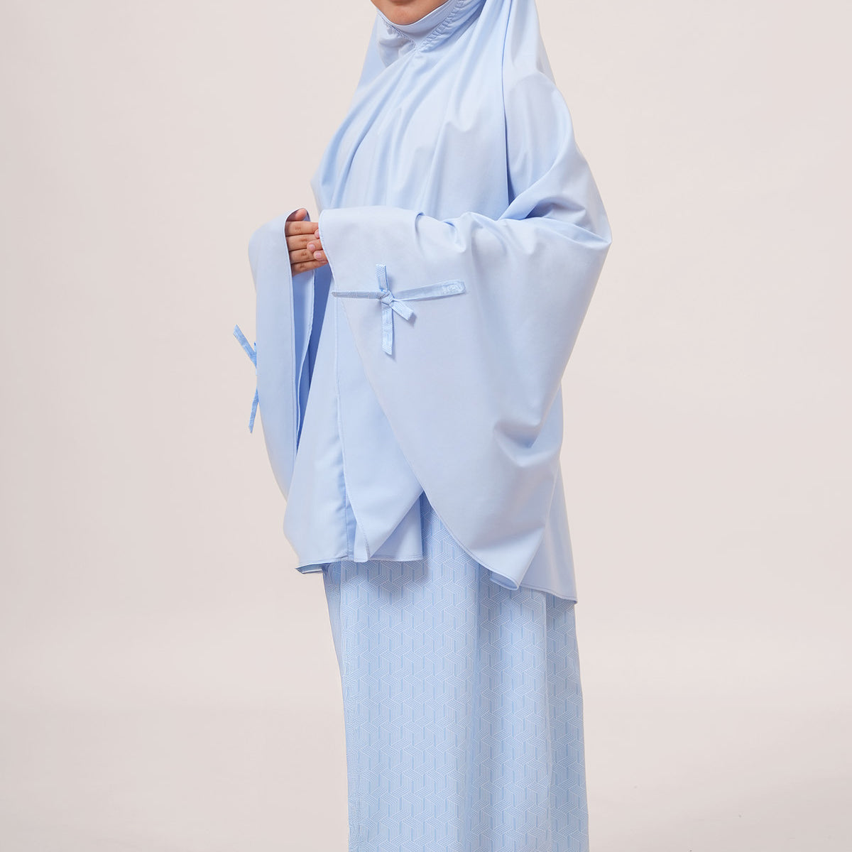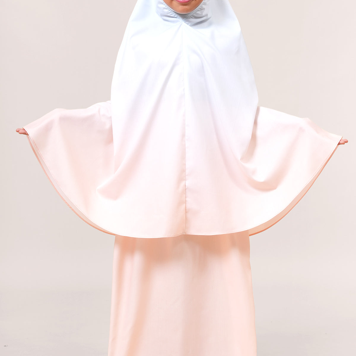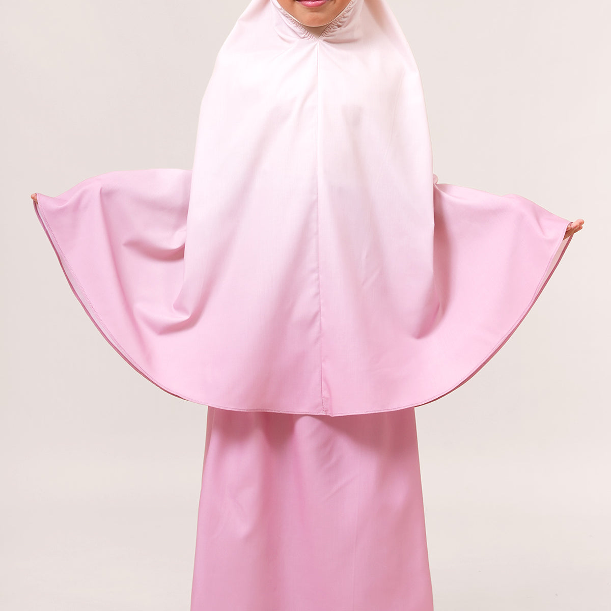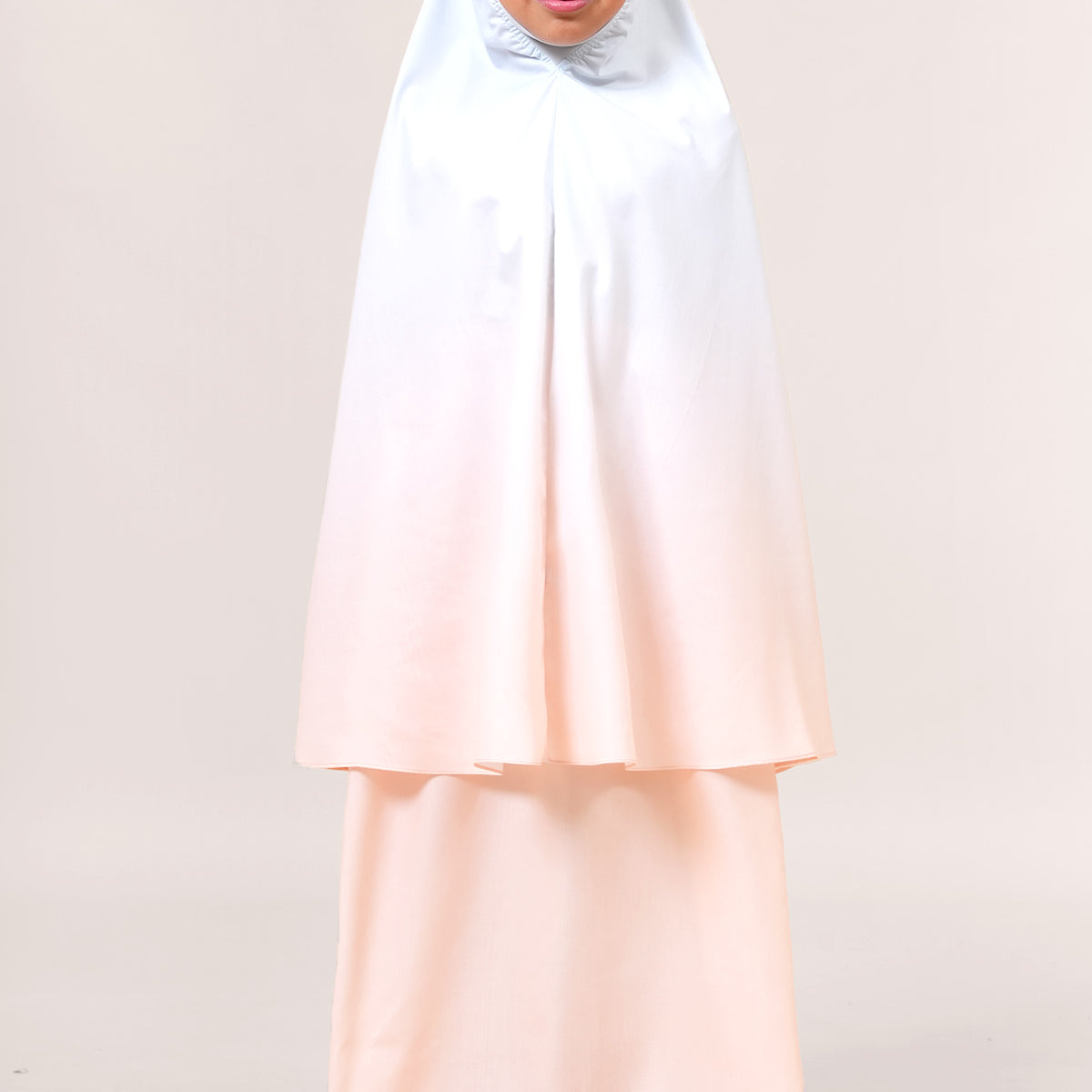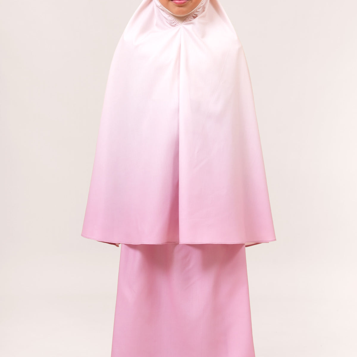 Designed to cherish special moments in prayer, the Ombre Telekung captures elegance through soft gradient hues. Each pair symbolizes harmony , the gentle connection between mother and daughter wrapped in beauty and faith.