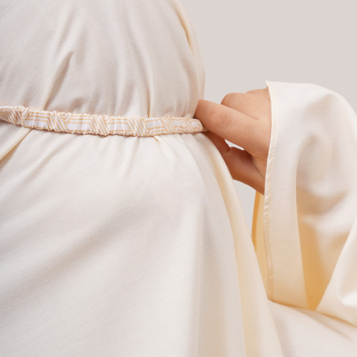 Crafted from Khadijah Textura, an exclusive blend of 64% cotton and 36% polyester in structured Dobby Jacquard—delivering a rich texture, enhanced breathability, and graceful durability.