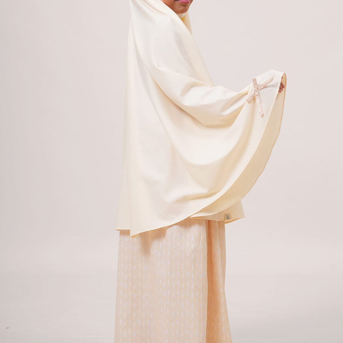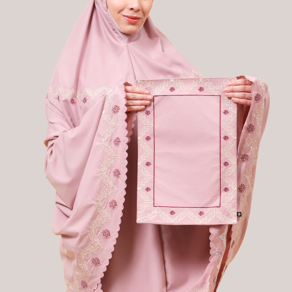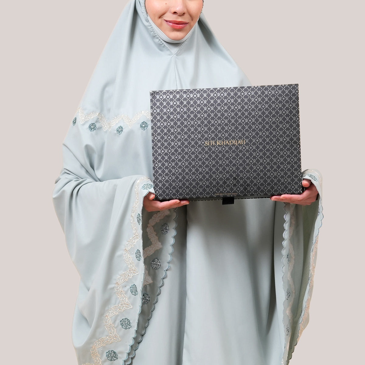 Inspired by the act of praise, Madiya meaning "one who praises" - embodies the essence of prayer as a graceful expression of devotion. Thoughtfully designed, its fabric features a unique textured weave that combines elegance with structure, delivering a luxurious touch that enhances every prayer moment. Comes in a matching set : Telekung, pouch, and mini prayer mat