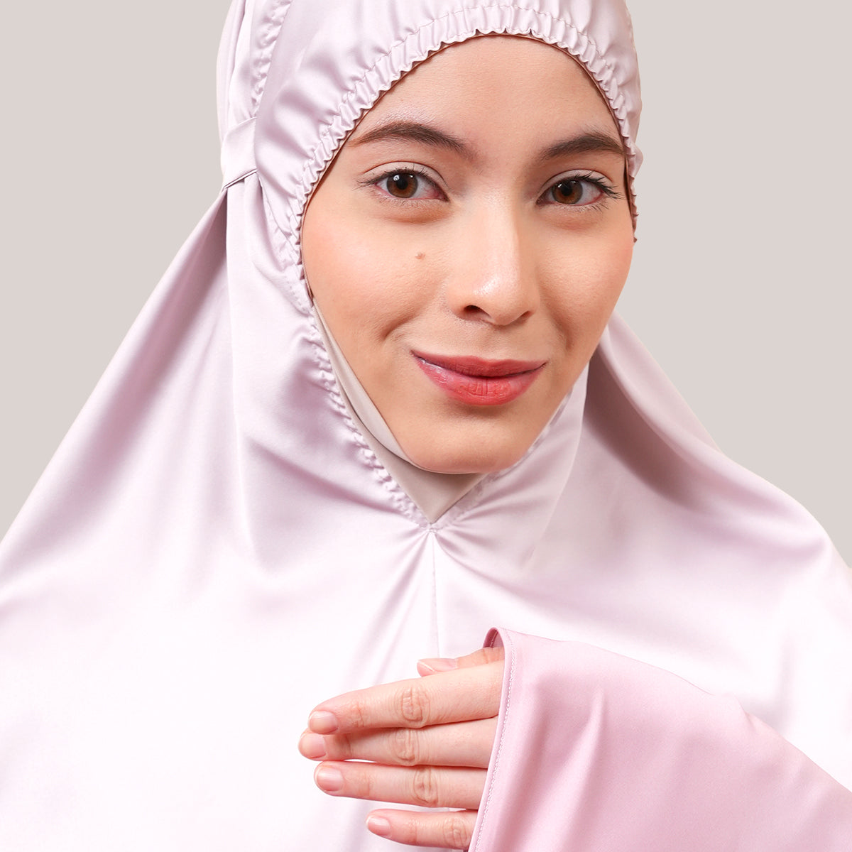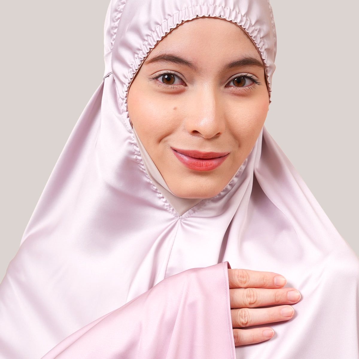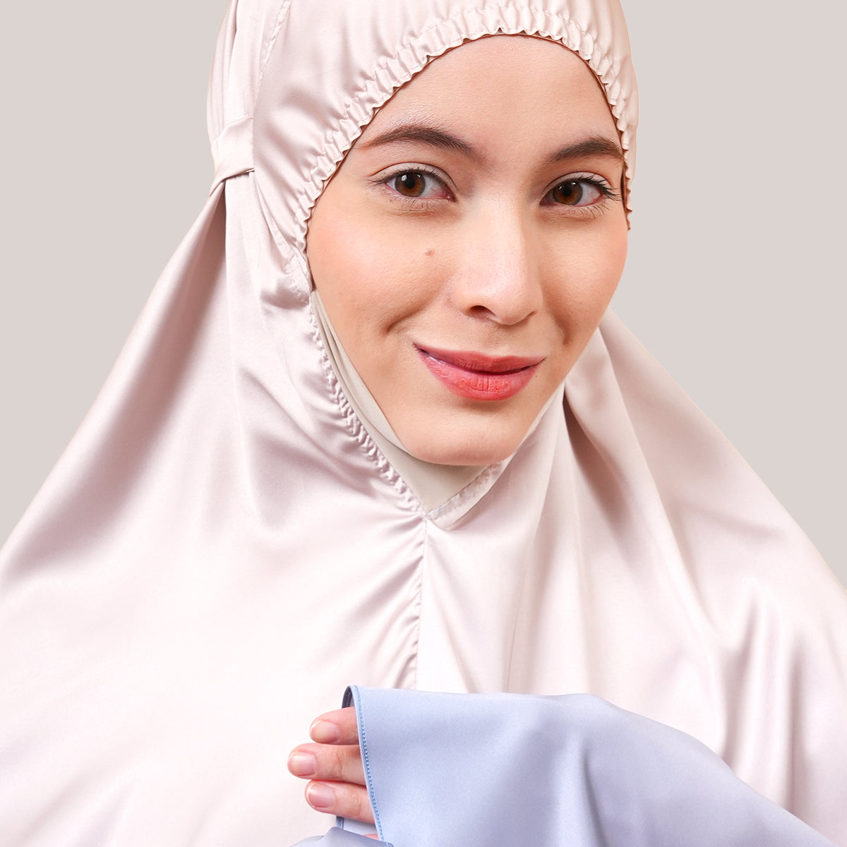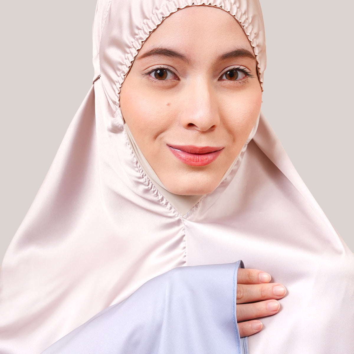 Tailored from cooling, breathable Satin Amarin that drapes effortlessly and feels whisper-soft against the skin. The exclusive Khadijah Comfy Flex (KCF) chin support offers unmatched comfort and shape retention — delicately contoured to stay in place, wear after wear. Finished with a padded elastic headband that ensures a seamless, pressure-free fit.