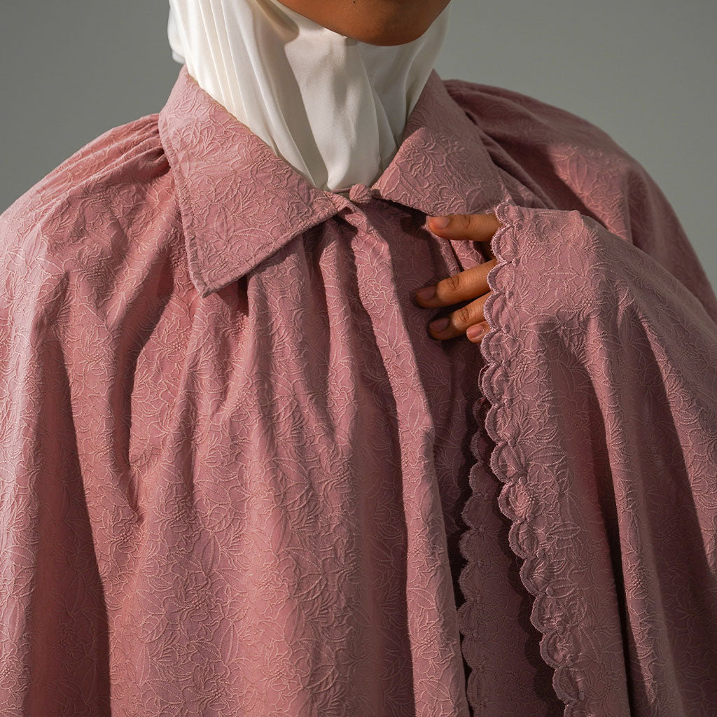 Flair Enda offers a practical and stylish solution for busy Muslim women. With its button-down collar and full embroidery, this headless midi telekung is designed to make your prayer routine easier while keeping you covered.