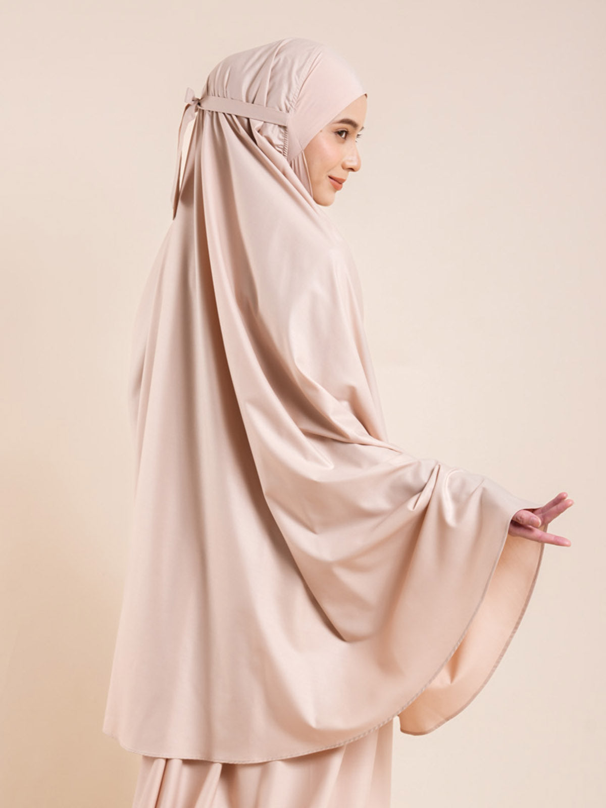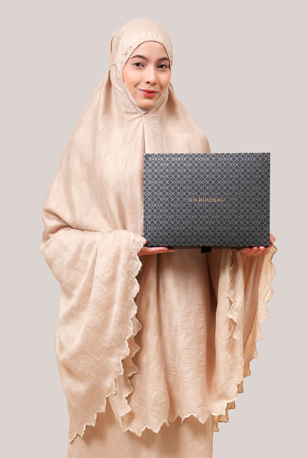 Flair Neola marks a new chapter in modern telekung design. With its unique shell stitch finish, this telekung resembles layers of delicate petals , a symbol of quiet strength and new beginnings. Crafted from Khadijah Basic Fine, it promises a cool, breathable, and ultra-soft feel against the skin. Neola is made for the woman who seeks calm, confidence, and beauty in every solah.