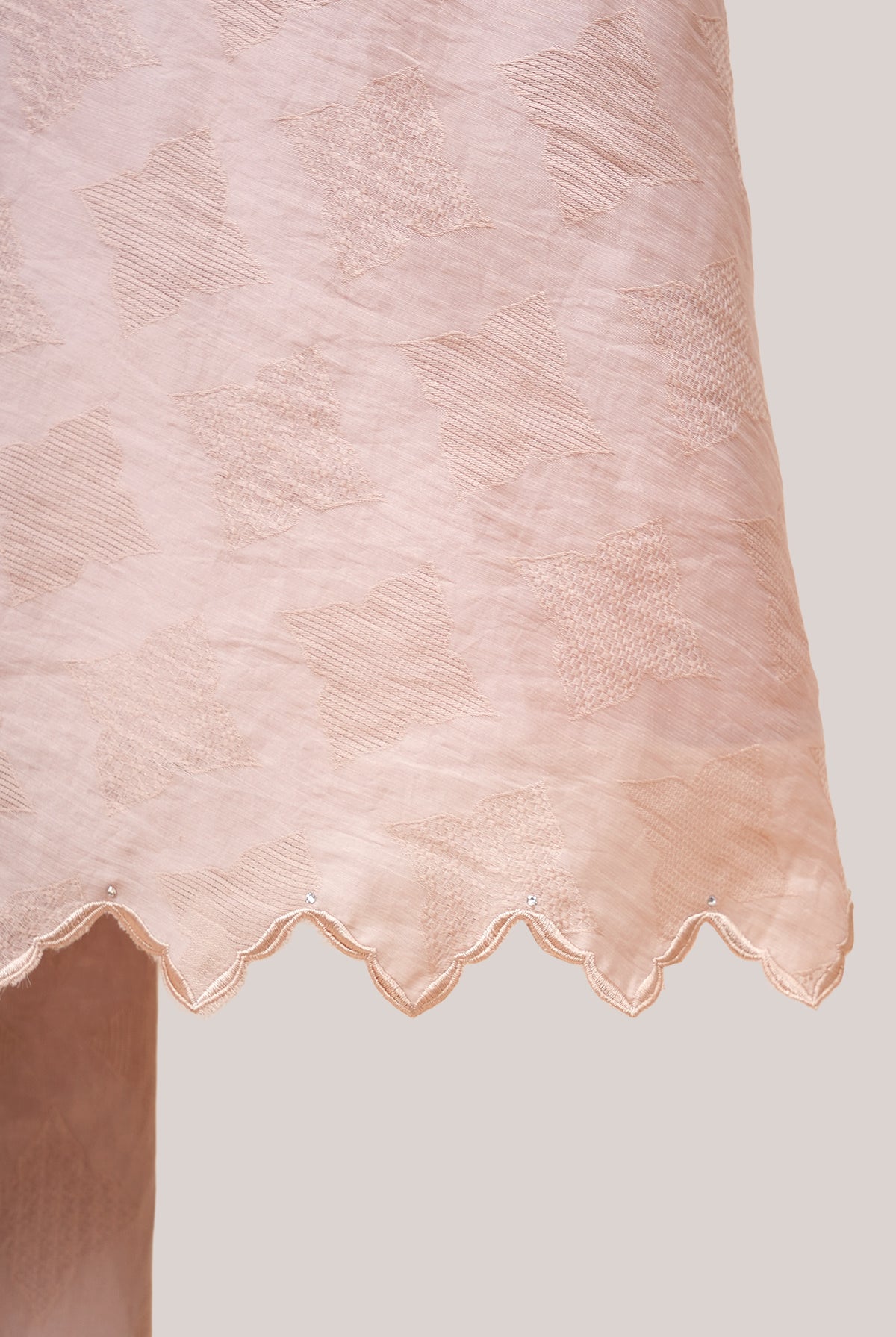 Fine embroidery graces both the top and bottom of the telekung, adding a gentle feminine touch that enhances its refined silhouette. Each stitch is a mark of thoughtful craftsmanship.