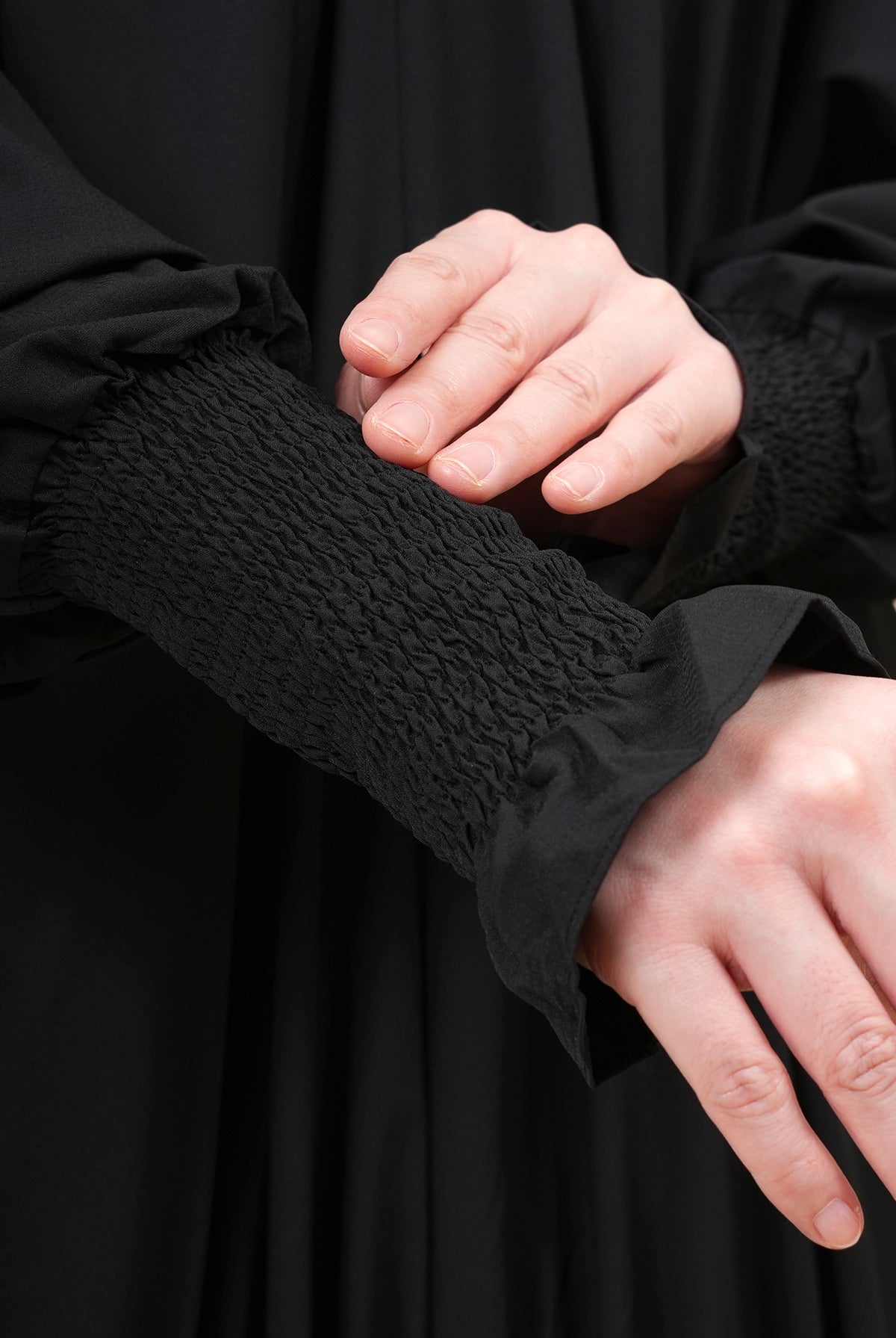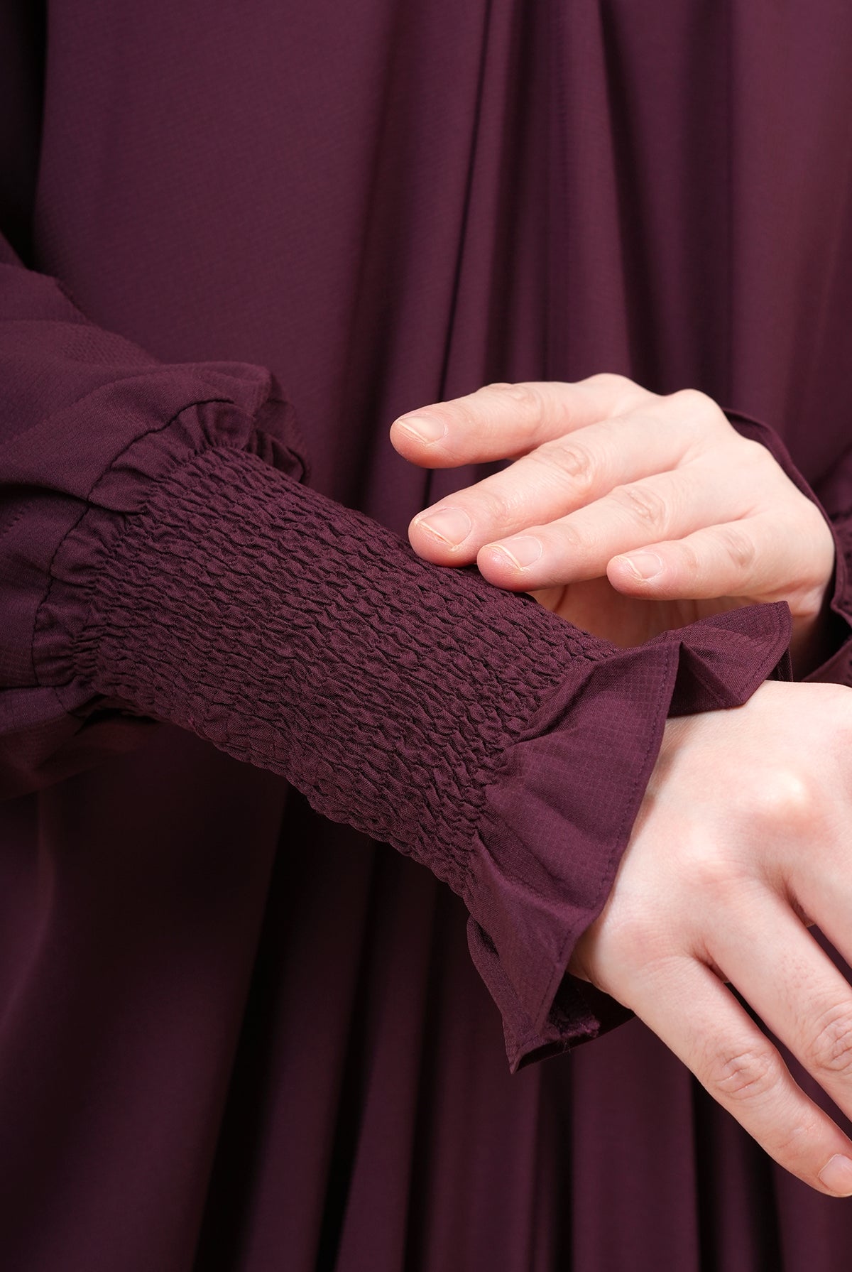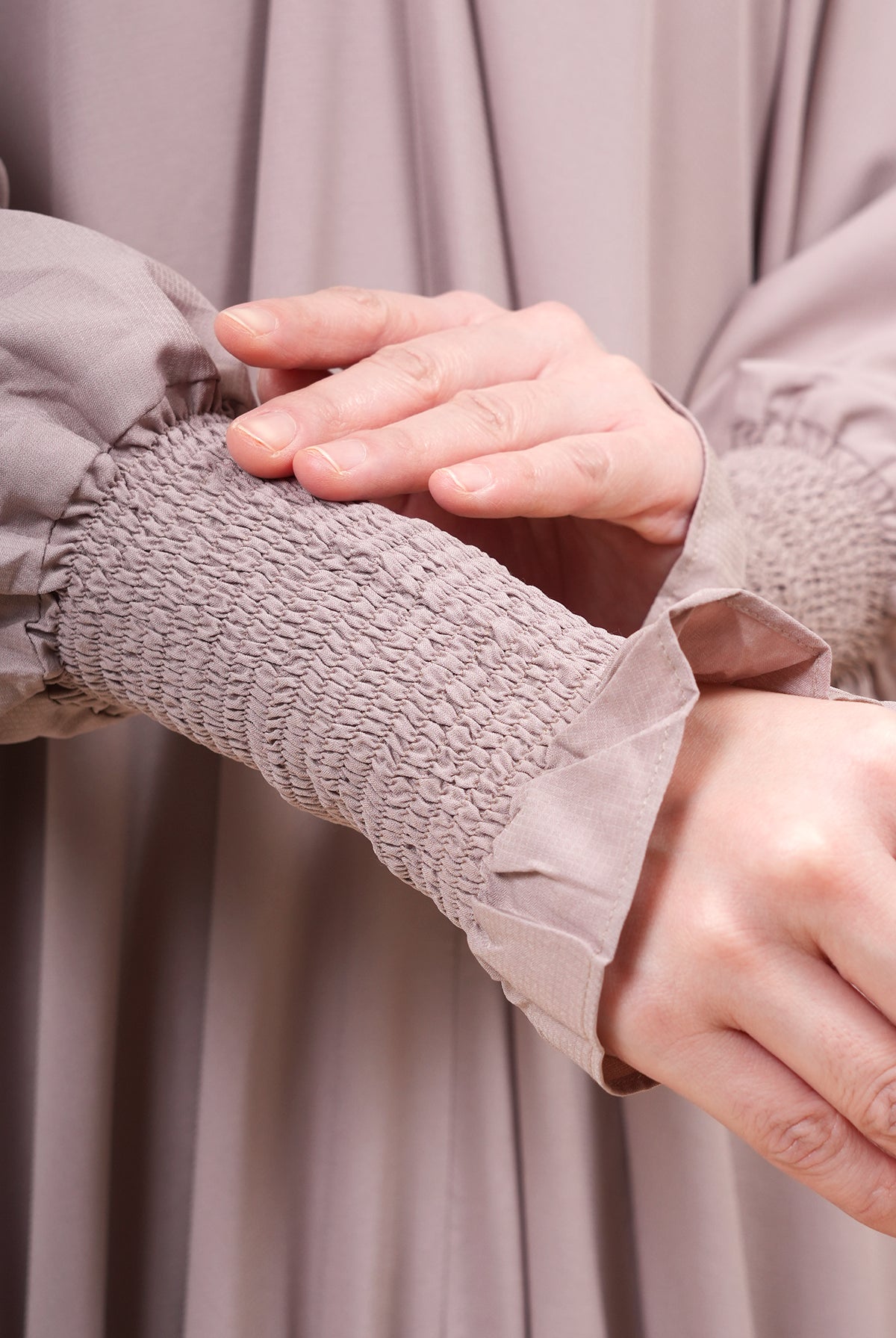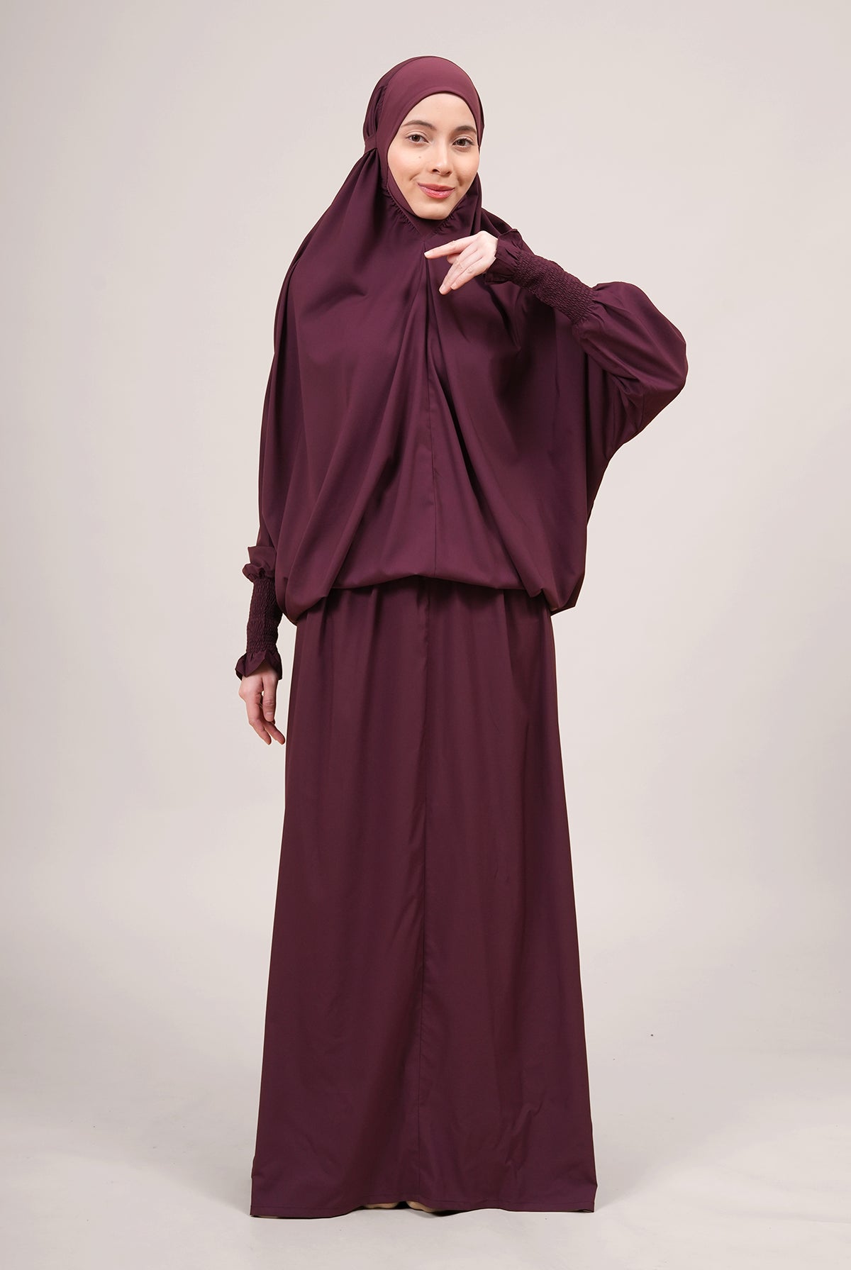 Flair Irha Midi features a midi-cut design with prayer-friendly smocking cuffs, offering practical comfort and modest coverage for every prayer, and comes with a minimal bag for easy carrying , perfect for everyday worship and travel.
