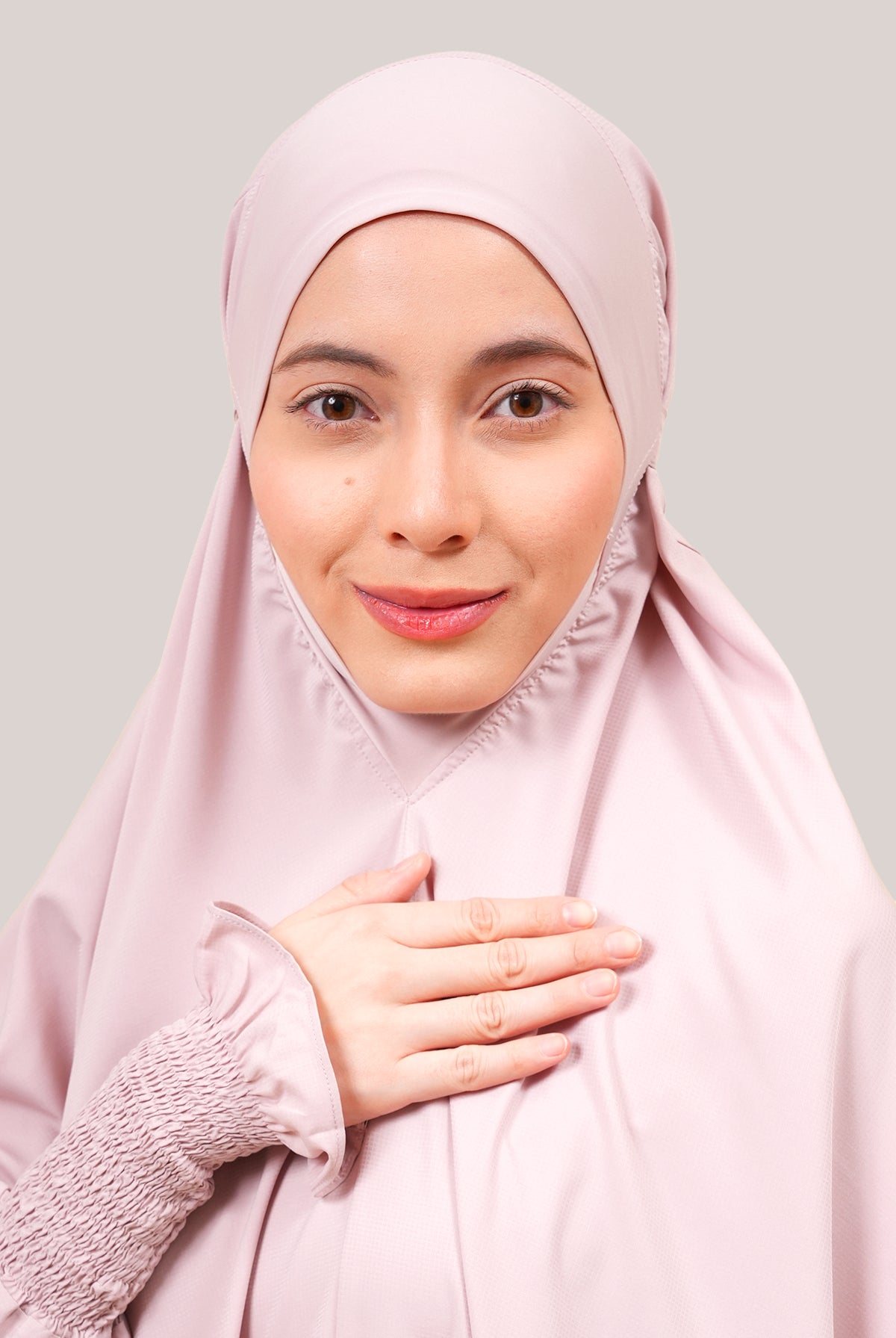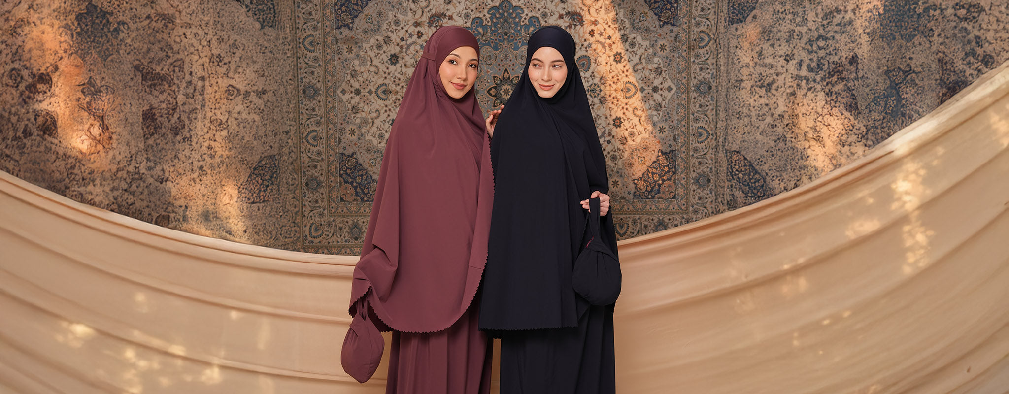 Flair Nora Midi is the first telekung made with Khadijah Pique, a soft yet structured knit fabric designed for comfort, modesty, and practicality. With minimalist finishes and a timeless design, it’s perfect for petite wearers, travel, or daily prayer.
