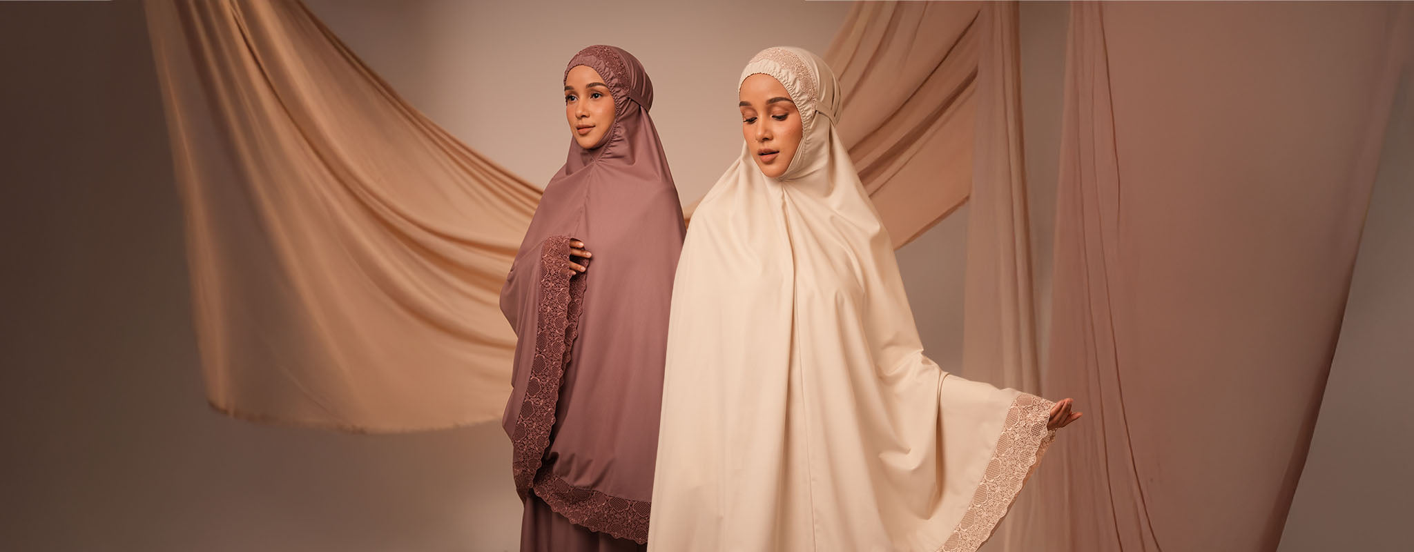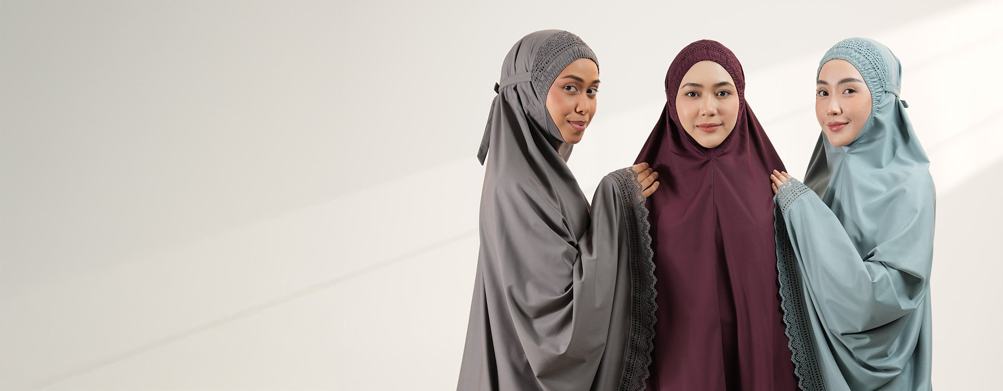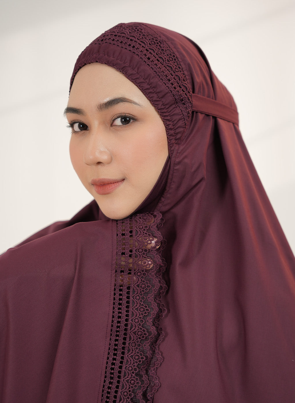 The Jalilah collection draws inspiration from the motif “Lines of Elegance.” Its lace is crafted with a minimal and seamless pattern, symbolizing purity and fluidity. This makes it not just prayerwear, but a piece of art that carries grace in every stitch.