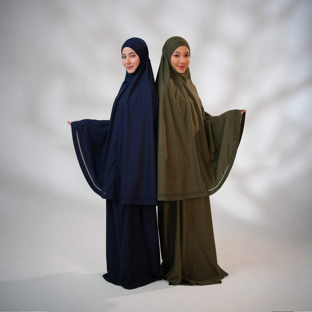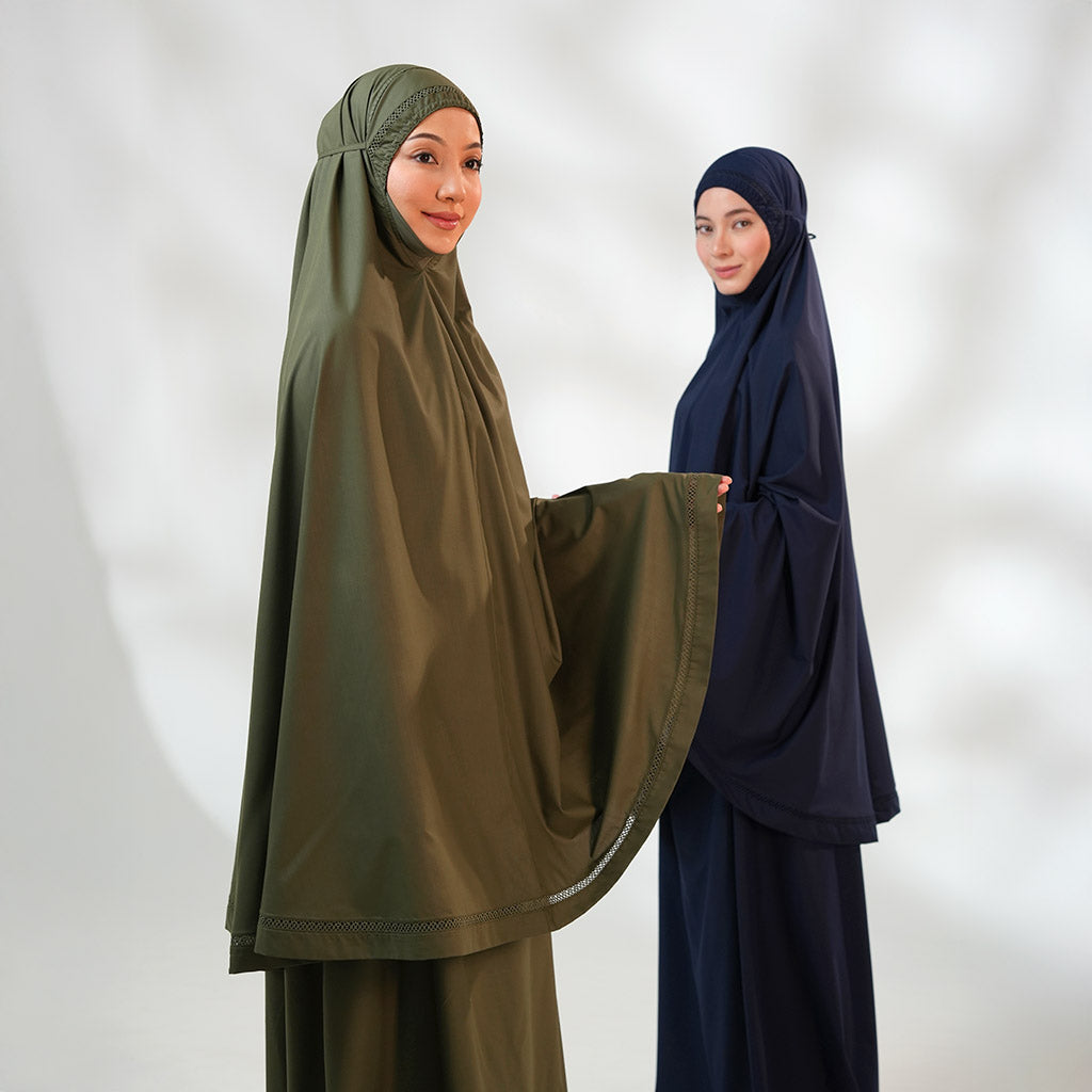 Jasira is crafted from resilient, stretchable fabric that resists tearing and retains its vibrant colour even after repeated washes. A prayerwear that combines beauty and practicality without compromise.